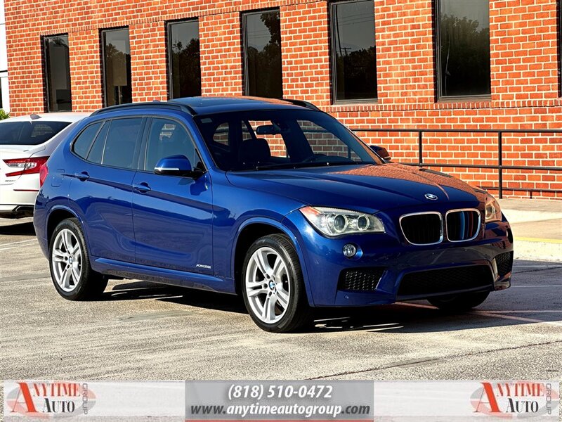 2014 Deep Sea Blue Metallic BMW X1 xDrive28i AWD 8-Speed Automatic Steptronic 2.0L 4-Cylinder DOHC 16V TwinPower Turbo 22/33 City/Highway MPG NON SMOKER, ACCIDENT-FREE CARFAX, FINANCING AVAILABLE, NAVIGATION, HEATED SEATS, BLUETOOTH, LEATHER, SUNROOF, MP3-USB, SATELLITE RADIO, BACKUP CAMERA, **All trades are welcome**, **We offer help with shipping of your next car**, **We offer great financing options. Please visit our site www.anytimeauto.com to get prequalified**, **We are a Capital one auto finance approved dealer**, Ambiance Lighting, Auto-Dimming Interior & Exterior Mirrors, Auto-Dimming Rear-View Mirror, Comfort Access Keyless Entry, Interior Mirror w/Compass, Lumbar Support, M Sport Package, Nevada Leather Upholstery, Panoramic Moonroof, Premium Package, Satellite Radio w/1 Year Subscription, Universal Garage-Door Opener. At Anytime Auto Group, we proudly serve Van Nuys and Sherman Oaks as a premier dealership for both good and bad credit car buyers. Our mission is simple: to help you purchase a vehicle, no matter your current financial or credit situation. We offer flexible financing solutions tailored to your needs, working with trusted lenders like Capital One, Ally Financial, and Westlake Financial, and other banks to ensure you get the best deal possible. Looking to sell your car? Visit us in the Sherman Oaks area, where our low overhead means we can offer you more money for your vehicle. At Anytime Auto Group, transparency is key. Thats why every vehicle we sell comes with a free Carfax report, and we encourage third-party inspections prior to purchase to give you complete confidence in your decision. Plus, for added peace of mind, we include a limited 30-day warranty with every vehicle purchase. Call us today or stop by our Pre-Owned Car Dealership! Were conveniently located just three blocks north of the 101 Freeway on the Van Nuys Auto Row. Let us make your car-buying experience smooth, enjoyable, and hassle-free. -- INSTALLED FEATURES: Air filtration: active charcoal, Front air conditioning: automatic climate control, Front air conditioning zones: dual, Rear vents: second row, Airbag deactivation: occupant sensing passenger, Front airbags: dual, Side airbags: front, Side curtain airbags: front / rear, Antenna type: diversity / mast, Auxiliary audio input: Bluetooth / USB / iPod/iPhone / jack, In-Dash CD: MP3 Playback / single disc, Radio: AM/FM / HD radio, Radio data system, Satellite radio: SiriusXM, Speed sensitive volume control, Total speakers: 8, Watts: 180, ABS: 4-wheel, Brake drying, Braking assist, Electronic brakeforce distribution, Emergency braking preparation, Front brake diameter: 12.3, Front brake type: ventilated disc, Power brakes, Rear brake diameter: 11.8, Rear brake type: ventilated disc, Regenerative braking system, Armrests: front center, Center console trim: simulated alloy, Dash trim: simulated alloy, Door trim: simulated alloy, Floor mat material: carpet, Floor material: carpet, Floor mats: front / rear, Interior accents: metallic-tone, Shift knob trim: alloy / leather, Steering wheel trim: leather, Cargo area light, Center console: front console with storage, Cruise control, Cupholders: front / rear, Multi-function remote: keyless entry / trunk release / vehicle and key memory, One-touch windows: 4, Power outlet(s): 12V cargo area / 12V front, Power steering: variable/speed-proportional, Power windows: lockout button, Push-button start, Reading lights: front / rear, Rearview mirror: manual day/night, Steering wheel: tilt and telescopic, Steering wheel mounted controls: audio / cruise control / phone, Storage: cargo tie-down anchors and hooks / door pockets / front seatback, Vanity mirrors: dual illuminating, 4WD type: full time, Axle ratio: 3.15, Alternator: 210 amps, Auto start/stop, Battery: maintenance-free, Door handle color: body-color, Exhaust: dual tip, Exhaust tip color: chrome, Front bumper color: body-color, Grille color: black, Mirror color: body-color, Rear bumper color: body-color, Rear spoiler: roofline, Rear spoiler color: body-color, Rear trunk/liftgate: liftgate, Window trim: black, Clock, Digital odometer, External temperature display, Fuel economy display: MPG, Gauge: tachometer, Multi-function display, Trip odometer, Warnings and reminders: coolant temperature warning / lamp failure / low fuel level / low oil pressure, Daytime running lights, Front fog lights, Headlights: auto delay off / auto on/off / halogen, Taillights: LED / adaptive, Side mirror adjustments: manual folding / power, Roof rails: black, Child safety door locks, Child seat anchors: LATCH system, Crumple zones: front, Impact sensor: alert system / battery disconnect / door unlock / fuel cut-off / post-collision safety system, Front seatbelts: 3-point, Rear seatbelts: 3-point, Seatbelt force limiters: front, Seatbelt pretensioners: front, Seatbelt warning sensor: front, Driver seat manual adjustments: height / 8, Front headrests: adjustable / 2, Front seat type: bucket, Passenger seat manual adjustments: height / 8, Rear headrests: adjustable / 3, Rear seat folding: split, Rear seat type: 40-20-40 split bench, Upholstery: leatherette, Power door locks: auto-locking, Off-road driving assist: hill descent, Stability control, Traction control, Front shock type: gas, Front spring type: coil, Front stabilizer bar, Front struts: MacPherson, Front suspension classification: independent, Front suspension type: double ball joint, Rear shock type: gas, Rear spring type: coil, Rear stabilizer bar, Rear suspension classification: independent, Rear suspension type: multi-link, Driver assistance app: roadside assistance, Hands-free phone call integration, Satellite communications: BMW Assist, Smart device app function: maintenance status, Wireless data link: Bluetooth, Run flat tires, Tire Pressure Monitoring System, Tire type: all season, Wheels: aluminum alloy, Front wipers: rain sensing / variable intermittent, Liftgate window: fixed, Power windows: safety reverse, Rear 