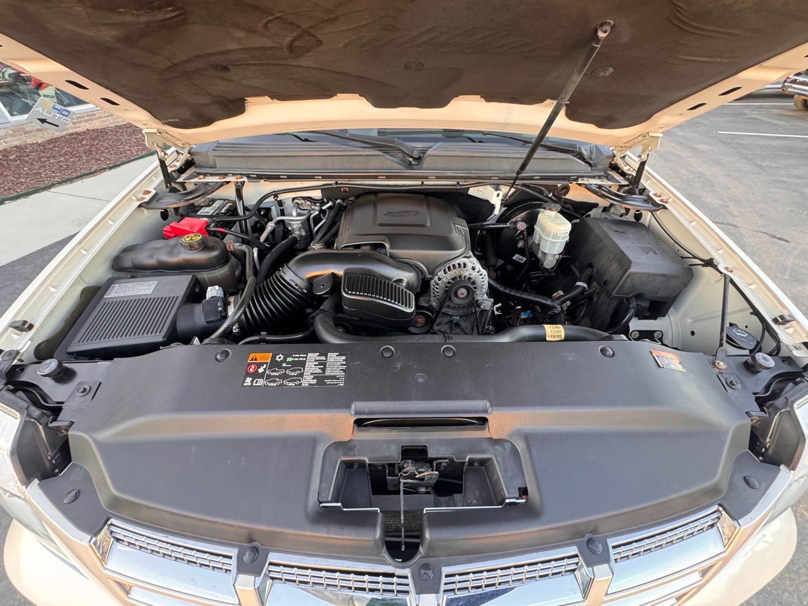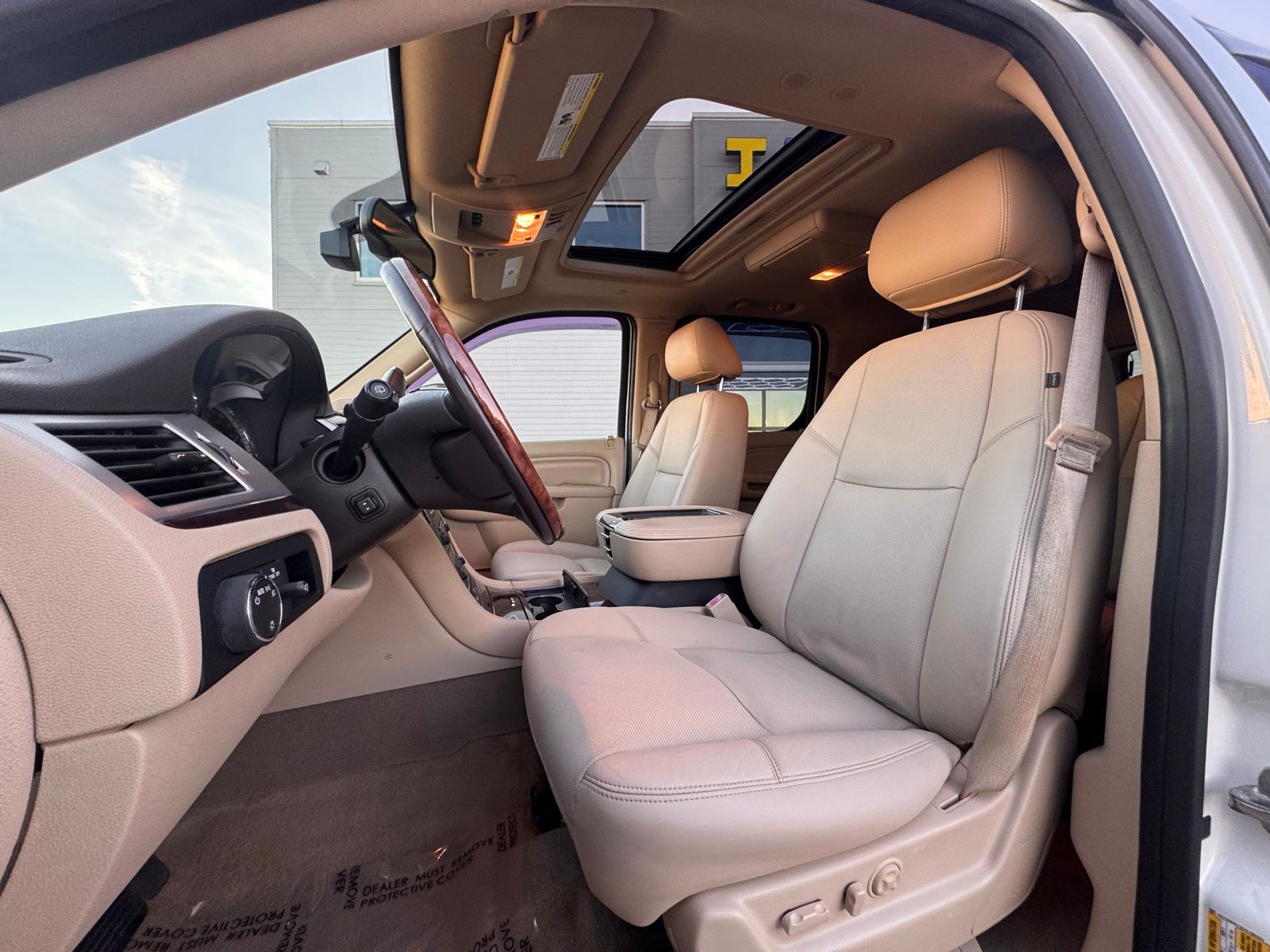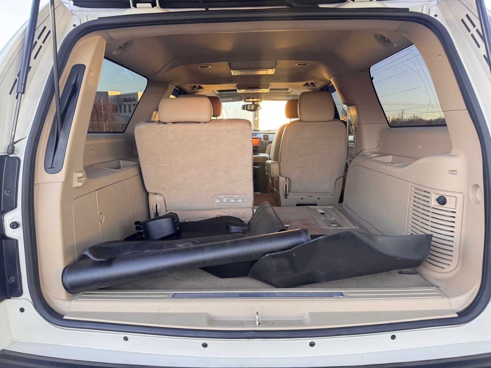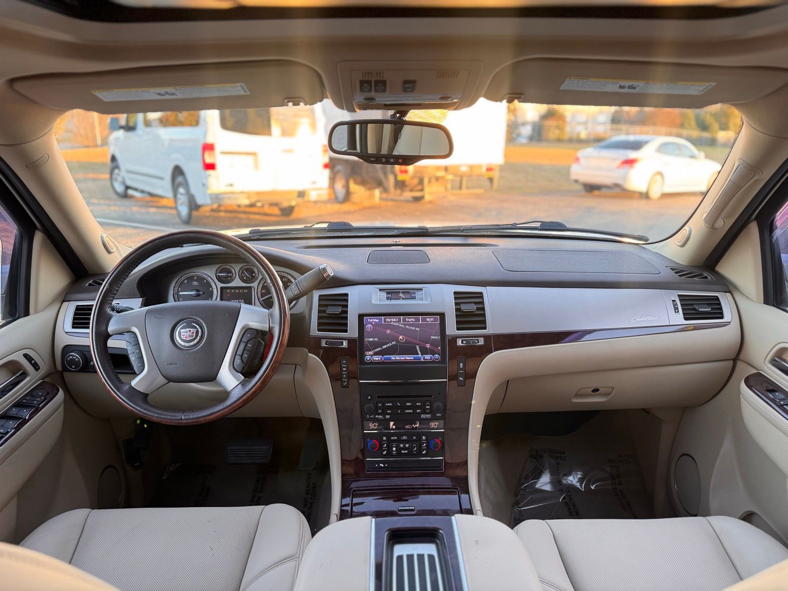 White Diamond Tricoat 2014 Cadillac Escalade ESV Luxury AWD 6-Speed Automatic HD Electronic with Overdrive Vortec 6.2L V8 SFI VVT AWD, 2nd Row Power Seat Release, Heated Steering Wheel, IntelliBeam Headlamps, Magnetic Ride Control Suspension Package, Navigation System, Power Tilt-Sliding Sunroof w/Express-Open/Close, Preferred Equipment Group 1SB, Side Blind Zone Alert.Magnetic Ride Control Suspension Package, Preferred Equipment Group 1SB (2nd Row Power Seat Release, Heated Steering Wheel, IntelliBeam Headlamps, Power Tilt-Sliding Sunroof w/Express-Open/Close, and Side Blind Zone Alert), AWD, Navigation System, 10 Speakers, 1st & 2nd Row All-Weather Floor Mats, 22 x 9 7-Spoke Chromed Aluminum Wheels, 3.42 Rear Axle Ratio, 3rd Row DVD Screen, 3rd row seats: split-bench, 4-Wheel Disc Brakes, ABS brakes, Adaptive suspension, Adjustable pedals, Air Conditioning, Alloy wheels, AM/FM radio: SiriusXM, AM/FM Stereo w/Navigation, Auto High-beam Headlights, Auto tilt-away steering wheel, Auto-dimming door mirrors, Auto-dimming Rear-View mirror, Auto-leveling suspension, Automatic temperature control, Bodyside moldings, Brake assist, Bumpers: body-color, CD player, Chrome Exhaust Tip, Chrome wheels, Compass, Delay-off headlights, Driver door bin, Driver vanity mirror, Dual front impact airbags, Dual front side impact airbags, DVD-Audio, Electronic Stability Control, Emergency communication system: OnStar Directions & Connections, Exterior Parking Camera Rear, Front anti-roll bar, Front Bucket Seats, Front Center Armrest w/Storage, Front dual zone A/C, Front fog lights, Front License Plate Bracket, Front reading lights, Front wheel independent suspension, Fully automatic headlights, Garage door transmitter, Heated & Cooled Front Bucket Seats, Heated door mirrors, Heated front seats, Heated rear seats, Heated steering wheel, High intensity discharge headlights: Xenon, Illuminated entry, Leather steering wheel, Low tire pressure warning, Memory seat, NavTraffic, Nuance Leather Seating Surfaces, Occupant sensing airbag, Outside temperature display, Overhead airbag, Overhead console, Panic alarm, Passenger door bin, Passenger vanity mirror, Pedal memory, Power door mirrors, Power driver seat, Power Liftgate, Power moonroof, Power passenger seat, Power steering, Power windows, Radio data system, Rear air conditioning, Rear anti-roll bar, Rear audio controls, Rear reading lights, Rear Seat Entertainment System, Rear window defroster, Rear window wiper, Remote keyless entry, Roof rack, Security system, SIRIUSXM Satellite Radio, Speed control, Split folding rear seat, Spoiler, Steering wheel memory, Steering wheel mounted audio controls, Tachometer, Tilt steering wheel, Traction control, Trip computer, Turn signal indicator mirrors, USB Port Audio System Feature, Variably intermittent wipers, and Ventilated front seats. Odometer is 29561 miles below market average!Reviews: * If you want to carry up to eight passengers and tow 8,300 pounds of toys with a boatload of style and amenities, the Escalade can do so with plenty of class. Source: KBB.com * Simultaneous cargo- and people-carrying ability; unique visual presence; long list of standard features; gutsy V8; composed ride. Source: Edmunds