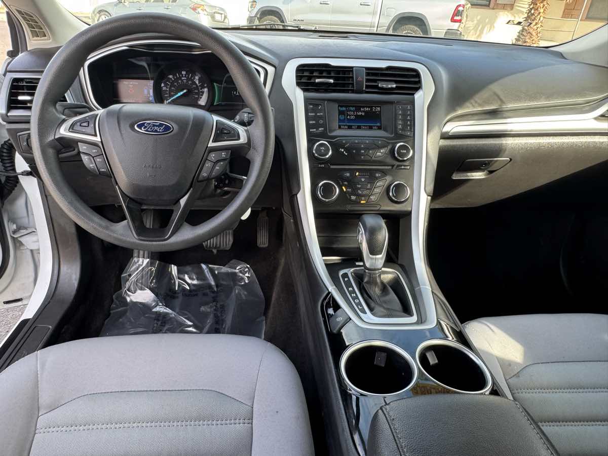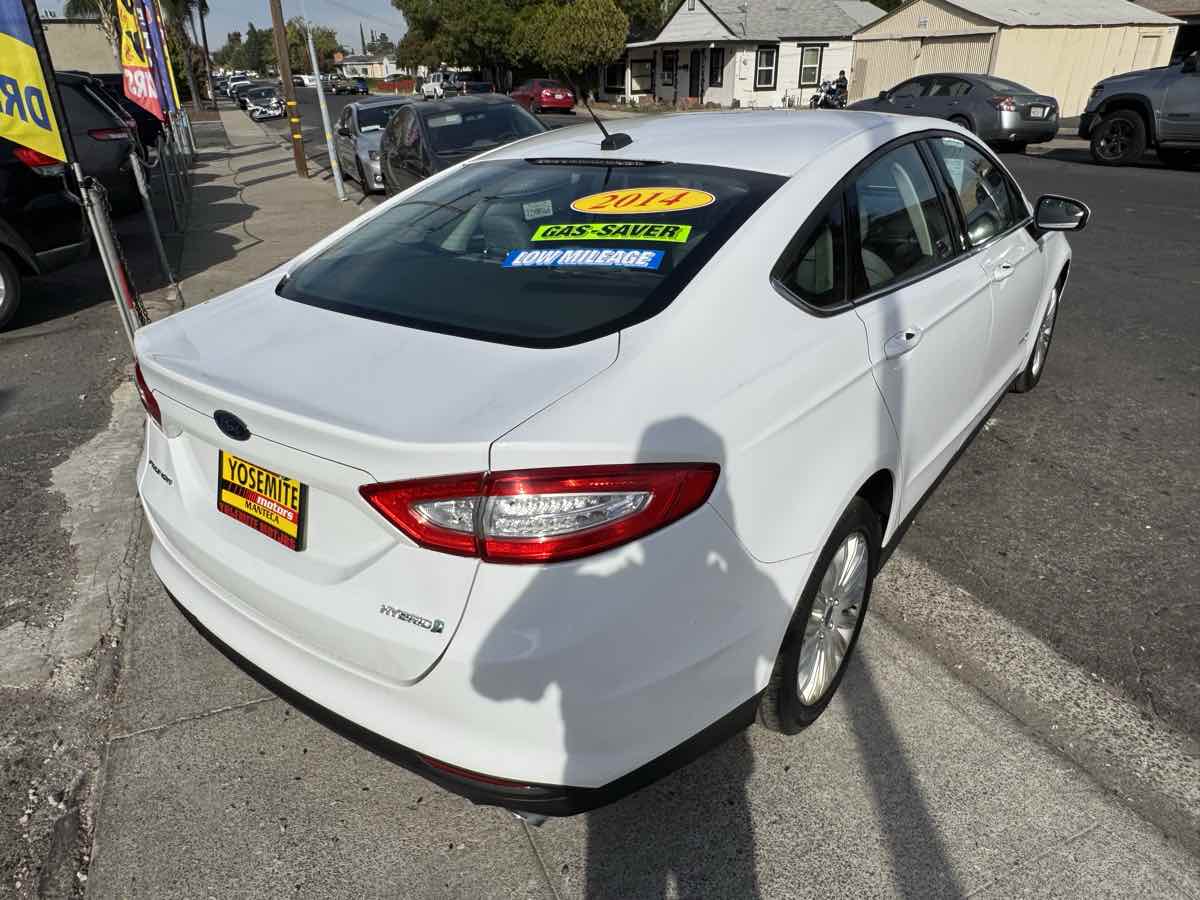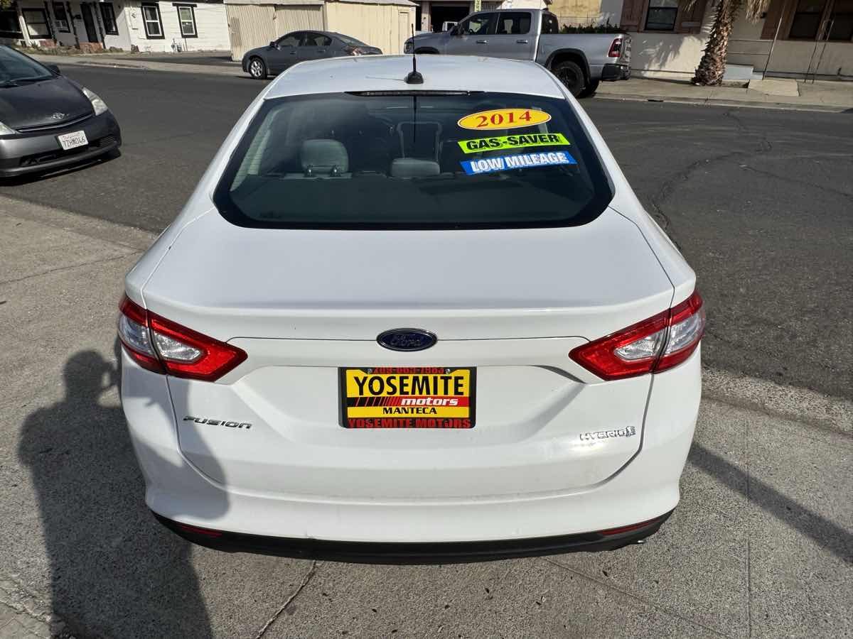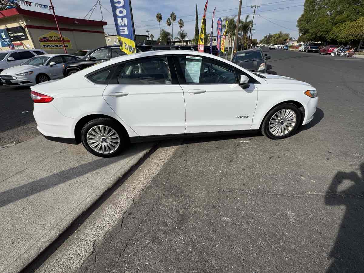Delivering unparalleled fuel economy and charming personality, our 2014 Ford Fusion Hybrid S Sedan is on display in dazzling Sterling Gray. Powered by a 2.0 Liter Atkinson 4 Cylinder combined with an Electric Motor offering 188hp paired with an innovative CVT that works in tandem with the whole car as the brakes regenerate a charge for the lithium batteries. This Front Wheel Drive sedan offers an incredibly economical alternative, showing off nearly 42mpg on the highway. Fusion's interior is streamlined and high-tech! Enjoy full power accessories, dual-zone automatic climate control, and creature comforts you have always dreamed about. With the voice-activated Sync audio/cell phone interface and a four-speaker sound system with a CD player, auxiliary audio jack, and USB port/iPod interface, you'll be connected and entertained as you happily glide down the road in this energetic car. Ford keeps the people you care about safe and secure with eight standard airbags, ABS with stability control, tire pressure monitoring, MyKey, and SOS post-crash Alert. Our confident and composed Fusion Hybrid S sedan offers a tranquil ride and great handling. Save this Page and Call for Availability. We Know You Will Enjoy Your Yosemite Motors Test Drive Towards Ownership!