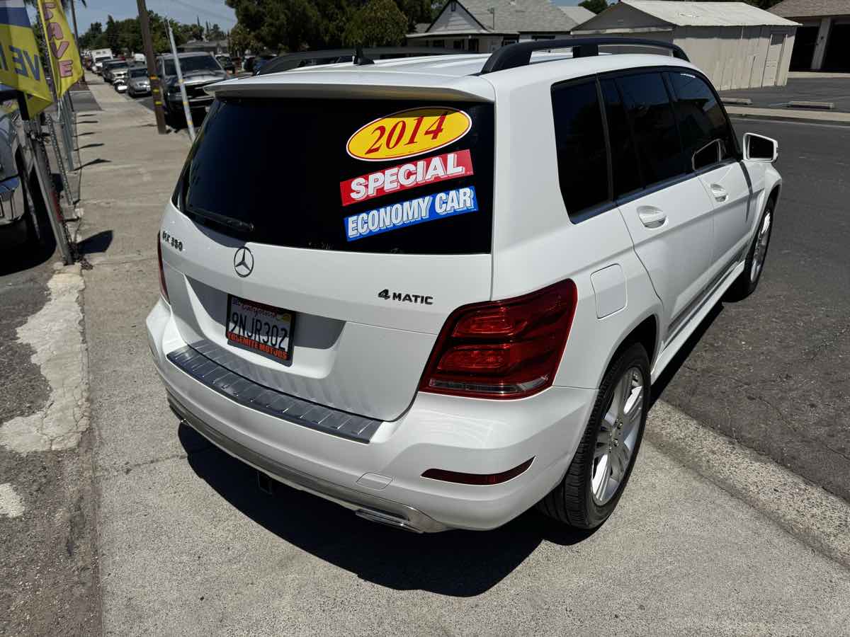 Our Low Mile 2014 Mercedes-Benz GLK 350 4MATIC is primed for driving satisfaction in Polar White! Powered by a 3.5 Liter V6 generating 302hp connected to a 7 Speed Automatic transmission. This All Wheel Drive SUV helps you look forward to every drive with up to 26mpg on the highway, a well-tuned suspension that offers both precise handling and a comfortable ride, and beautiful styling enhanced by LED daytime running lights, deep-tinted glass, and stunning alloy wheels. Our GLK 350's superbly crafted cabin puts driving enjoyment and innovative technology close at hand. Power front seats with driver-side memory, dual-zone automatic climate control, and the full-color COMAND infotainment system with Bluetooth are all on hand for your convenience. You will also be amazed by the fantastic cargo capacity that can be easily increased thanks to the split-folding rear seats. Our Mercedes-Benz provides peace of mind with exemplary safety scores thanks to attention assist, rain-sensing windshield wipers, tire-pressure monitoring, ABS, stability/traction control, and advanced airbags. Our GLK 350 4MATIC is an outstanding choice! Save this Page and Call for Availability. We Know You Will Enjoy Your Yosemite Motors Test Drive Towards Ownership!