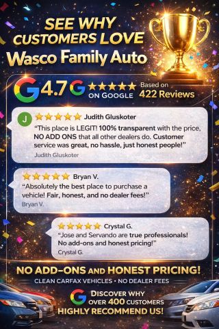Here at Wasco Family Auto we bring you the best used cars at the lowest prices and the best custom trucks in town. We are a Carfax Advantage Dealer making sure your buying process is easy and efficient. 1102 Highway 46, Wasco, CA - 661-758-8376.We also have a great first time buyer program that offers great low payments! Good Credit, Bad Credit or No Credit WE CAN HELP!