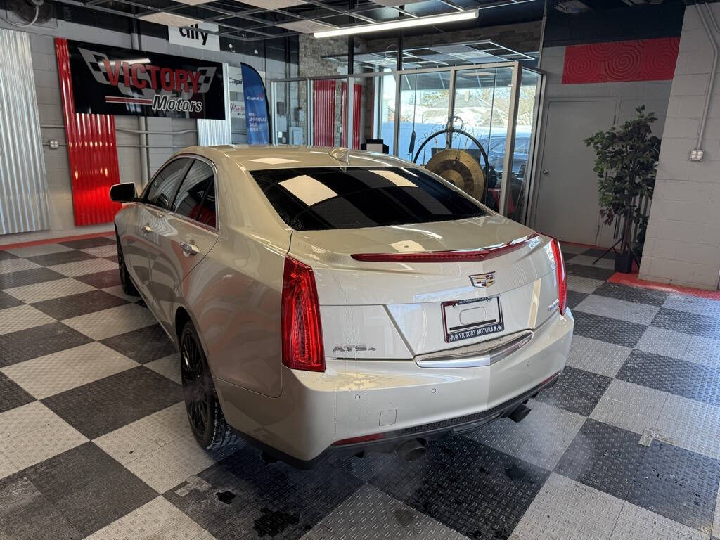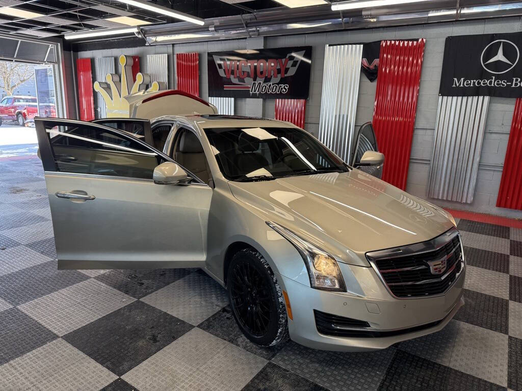 Victory Motors was founded on trust, integrity, and respect. We are proud to have these values in our sales and business practices so our customers keep coming back. Your satisfaction is our #1 priority!<br /><br />Clean Title Only! Every Vehicle Comes Fully Safety Inspected!<br /><br /><br />Silver Coast Metallic 2015 Cadillac ATS 2.0L Turbo Luxury AWD 6-Speed Automatic 2.0L Turbo I4 DI DOHC VVT<br /><br />110V Power Receptacle, 17'' x 8'' Polished Aluminum Wheels, 18'' x 8'' Forged Polished Aluminum Wheels, 3.27 Rear Axle Ratio, 4-Wheel Disc Antilock Brembo Fr Performance Brakes, 4-Wheel Disc Brakes, 7 Speakers, ABS brakes, Active Aero Grille, Air Conditioning, Alloy wheels, AM/FM radio: SiriusXM, Auto-dimming door mirrors, Auto-dimming Rear-View mirror, Automatic temperature control, Bluetooth For Phone/Audio, Bose Premium 7-Speaker Audio System Feature, Bose Premium Surround Sound 10-Speaker System, Brake assist, Bumpers: body-color, Cadillac CUE & Navigation, Cold Weather Package, Compass, Delay-off headlights, Driver & Front Passenger Dual-Stage Air Bags, Driver & Front Passenger Seat Adjusters, Driver door bin, Driver vanity mirror, Dual front impact airbags, Dual front side impact airbags, Electronic Stability Control, Emergency communication system: OnStar Directions & Connections, Exterior Parking Camera Rear, Forward Collision Alert, Four wheel independent suspension, Front anti-roll bar, Front Bucket Seats, Front Center Armrest, Front dual zone A/C, Front reading lights, Fully automatic headlights, Garage door transmitter, Heated door mirrors, Heated Driver & Front Passenger Seats, Heated Steering Wheel Rim, Illuminated entry, IntelliBeam Auto High Beam Control Headlamps, Knee airbag, Lane Departure Warning & Keep Assist, Leather Seating Surfaces, Leather Shift Knob, Low tire pressure warning, Luxury Equipment Group 1SF, Luxury Sport Package, Memory seat, Navigation System, Occupant sensing airbag, Outside temperature display, Overhead airbag, Overhead console, Panic alarm, Passenger door bin, Passenger vanity mirror, Power door mirrors, Power driver seat, Power passenger seat, Power steering, Power Sunroof, Power windows, Premium audio system: Cadillac CUE, Radio data system, Radio: Cadillac CUE Info & Media Control System, Radio: Cadillac CUE Info/Media Ctrl w/Embedded Nav, Rainsense Wipers, Rear anti-roll bar, Rear reading lights, Rear seat center armrest, Rear Spoiler, Rear window defroster, Remote keyless entry, SiriusXM & HD Audio System, Speed control, Speed-sensing steering, Split folding rear seat, Steering wheel mounted audio controls, Sun & Sound Package, Tachometer, Telescoping steering wheel, Tilt steering wheel, Traction control, Trip computer, Turn signal indicator mirrors, Variably intermittent wipers, Voltmeter, Wheels: 18'' x 8'' Forged Aluminum, Wireless Charging.<br /><br /><br />20/28 City/Highway MPG 20/28 City/Highway MPG