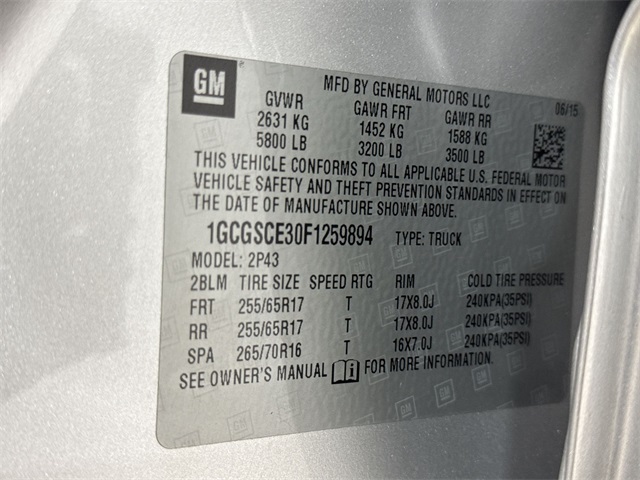 CARFAX One-Owner. Silver Ice Metallic 2015 Chevrolet Colorado Z71 3.6L V6 DGI DOHC VVT 6-Speed Automatic RWD 4-Way Power Front Passenger Seat Adjuster, Automatic temperature control, Black Spray-On Bed Liner, Bose Premium 7-Speaker Audio System Feature, Cloth/Leatherette Seat Trim, Emergency communication system: OnStar Directions & Connections, Exterior Parking Camera Rear, Fully automatic headlights, Heated Driver & Front Passenger Seats, Heated front seats, Heavy-Duty Trailering Package, Illuminated entry, Power driver seat, Preferred Equipment Group 2Z7, Radio: AM/FM/SiriusXM w/Chevrolet MyLink & Nav, Rear step bumper, Remote keyless entry, Speed control, Steering wheel mounted audio controls, Wheels: 17 x 8 Dark Argent Metallic Cast Alloy.18/26 City/Highway MPGAwards: * 2015 KBB.com Best Buy Awards Finalist * 2015 KBB.com Best Resale Value AwardsSpence Chevrolet GMC Cadillac is locally owned and customer friendly since 1954. We invite you to come by the dealership today and experience the Spence Difference. You will be welcomed into our family friendly environment where our goal is to provide you with the best car buying experience that you have ever had. After you buy your new Chevrolet, GMC, or Cadillac at Spence, you can trust our service department to resolve any issues that you may have in a professional and timely manner.