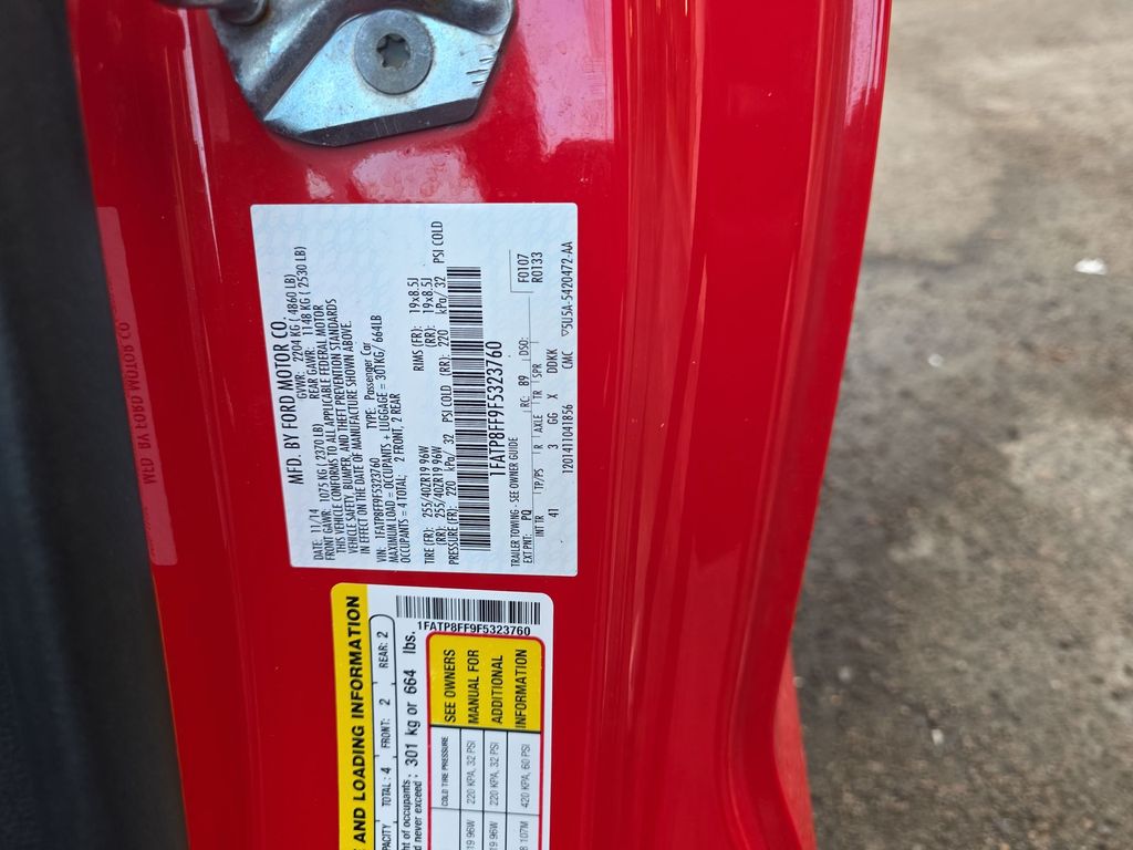 2015 Ford Mustang GT Premium Race Red RWD 6-Speed Manual4-Wheel Disc Brakes, 9 Speakers, ABS brakes, Adaptive Cruise Control w/Collision Mitigation, Air Conditioning, Alloy wheels, AM/FM radio: SiriusXM, Auto-dimming Rear-View mirror, Automatic temperature control, Blind Spot Info System w/Cross-Traffic Alert, Block heater, Brake assist, Bumpers: body-color, CD player, Compass, Convertible roof lining, Delay-off headlights, Driver door bin, Driver vanity mirror, Dual front impact airbags, Dual front side impact airbags, Electronic Stability Control, Equipment Group 401A, Exterior Parking Camera Rear, Four wheel independent suspension, Front anti-roll bar, Front Bucket Seats, Front Center Armrest, Front dual zone A/C, Front fog lights, Front reading lights, Fully automatic headlights, Garage door transmitter, Glass rear window, HD Radio, Heated door mirrors, Heated front seats, High-Intensity Discharge Headlights, Illuminated entry, Knee airbag, Leather Bucket Seats, Leather Shift Knob, Low tire pressure warning, Memory Driver Seat & Mirrors, Occupant sensing airbag, Outside temperature display, Panic alarm, Passenger door bin, Passenger vanity mirror, Power convertible roof, Power door mirrors, Power driver seat, Power passenger seat, Power steering, Power windows, Premium AM/FM Stereo w/Single CD Player, Radio data system, Rain-Sensing Wipers, Rear anti-roll bar, Rear window defroster, Remote keyless entry, Reverse Park Assist, Security system, Shaker Pro Audio System, SiriusXM Radio, Speed control, Speed-sensing steering, Speed-Sensitive Wipers, Spoiler, Steering wheel mounted audio controls, SYNC Communications & Entertainment System, Tachometer, Telescoping steering wheel, Tilt steering wheel, Traction control, Trip computer, Turn signal indicator mirrors, Variably intermittent wipers, Ventilated front seats, Voice Activated Navigation, Voltmeter, Wheels: 18 x 8 Magnetic Painted/Machined, Wheels: 19 x 8.5 Dark Stainless Premium Painted.*Price plus dealer installed accessories.**Please see dealer for details.Awards: * 2015 KBB.com Our 10 Favorite New-for-2015 Cars * 2015 KBB.com 10 Coolest New Cars Under $25,000 * 2015 KBB.com Best Buy Awards Finalist * 2015 KBB.com Brand Image Awards Reviews: * What do a Mustang coupe and an F-150 truck have in common? Theyre reinvented for 2015, and they each have their loyalists. Ford allegiances aside, the Mustang attracts with its newly refined ride and amenities, retro-modern looks and the sheer appeal of owning a performance-car icon with a sub-$25,000 starting price. Source: KBB.com * Wide range of engine options; new rear suspension provides better handling and ride dynamics; more refined interior. Source: Edmunds