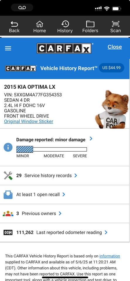 Get ready to hit the streets in style with this sleek white 2015 Kia Optima! With its powerful 2.4L DOHC I4 GDI engine and smooth 6-speed automatic transmission, you'll experience a fun and sporty ride every time you get behind the wheel. This front-wheel-drive beauty features a stylish exterior with chrome accents and fog lights to light the way. Inside, you'll find a comfortable cabin with room for five, including a spacious rear bench seat that easily folds down for extra cargo space. The cloth interior is accented with chrome details, creating a modern and sophisticated look. Stay connected with the infotainment system and enjoy your favorite tunes through the quality sound system.Safety is a top priority in this Kia Optima, with features like dual front and side impact airbags, rear child safety locks, and low tire pressure warning to help keep you and your passengers safe on the road. Plus, rest assured knowing that a Carfax report is available for this vehicle, giving you peace of mind as you drive off into the sunset in your new ride. Get ready to turn heads and enjoy the ride in this stylish and reliable Kia Optima! Visit Chicago Cars U.S. online at www.chicagocarsus.com to see more pictures of this vehicle or call us at 773-770-4777 today to schedule your test drive.All deposits are valid for 48 hours after the 48 hours all funds must be secured in full.Deposits are non refundable.