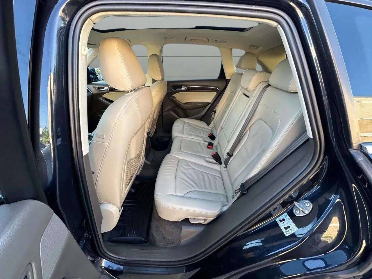 The 2016 Audi Q5 2.0T quattro Premium AWD 4dr SUV offered a range of features focusing on comfort, technology, and performance. Powertrain and Performance: 2.0L TFSI turbocharged four-cylinder engine Eight-speed Tiptronic automatic transmission quattro all-wheel drive system Audi drive select (adjusts steering, throttle, and transmission response) Exterior Features: Xenon plus headlights with LED daytime running lights LED taillights Power-adjustable, heated side mirrors Aluminum roof rails Power tailgate 18-inch 5-spoke V-design wheels Interior Features: Leather seating surfaces Eight-way power front seats with four-way power lumbar adjustment for the driver Three-zone automatic climate control Panoramic sunroof Split-folding rear seats Ambient LED interior lighting Tilt and telescopic steering column Technology and Infotainment: Audi MMI radio plus with a 6.5-inch color display Audi concert radio with ten speakers and a subwoofer SiriusXM Satellite Radio (subscription required) Bluetooth wireless technology for mobile phone preparation Audi music interface with iPod integration SD card slot Safety and Security: Anti-lock Brake System (ABS) Electronic Stability Control (ESC) Traction Control (ASR) Driver and front passenger advanced airbags Front thorax side airbags Sideguard head curtain airbags Tire pressure monitoring system Front and rear acoustic parking sensors Rearview camera LATCH child seat mounting system Discover a Wide Selection of Vehicles at Your Choice Autos! At Your Choice Autos, we pride ourselves on offering a diverse range of vehicles at truly affordable prices. Explore our latest inventory and schedule a test drive today! Looking to sell your car? Bring it to us and receive cash on the spot. Have Questions? We are here to assist! Connect with us via FaceTime or WhatsApp video for any vehicle-related inquiries. Contact us during business hours for prompt assistance. Joliet Vehicle Location: Your Choice Auto Sales (Joliet Lot) 1506 W Jefferson St. Joliet, IL 60435 Ph: 815-725-0850 Web: www.yourchoiceautos.com