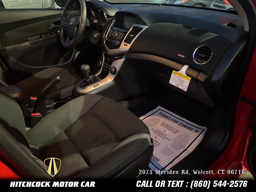 Red Hot 2016 Chevrolet Cruze Limited 1LT RS FWD 6-Speed Manual with Overdrive ECOTEC 1.4L I4 SMPI DOHC Turbocharged VVT VERY RARE CRUZE LT WITH THE RS PACKAGE AND A 6 SPEED MANUAL!, ALL POWER OPTIONS AND MORE!, CAR IS SUPER CLEAN AND LOW MILEAGE!, MUST SEE AND DRIVE!, Cruze Limited 1LT RS, 4D Sedan, ECOTEC 1.4L I4 SMPI DOHC Turbocharged VVT, 6-Speed Manual with Overdrive, FWD, Red Hot, Jet Black Cloth, 16 Painted Aluminum Wheels, 1LT Driver Convenience Package, 6 Speaker Audio System Feature, 6-Way Manual Driver Seat Adjuster, ABS brakes, Air Conditioning, Auto-Dimming Inside Rear-View Mirror, Brake assist, Chevrolet MyLink, Compound Crank Rear Suspension, Delay-off headlights, Driver 6-Way Power Seat Adjuster, Driver/Front Passenger Illuminated Vanity Mirrors, Dual front impact airbags, Electronic Stability Control, Front Bucket Seats, Front Center Armrest, Front Passenger 6-Way Manual Seat Adjuster, Front Projector Type Fog Lamps, Fully automatic headlights, Illuminated entry, Outside Heated Power-Adjustable Body-Color Mirrors, Outside temperature display, Pioneer Premium 9-Speaker System, Power Sliding Sunroof, Power windows, Preferred Equipment Group 1SC, Radio: Chevrolet MyLink AM/FM Stereo w/CD Player, Rear Spoiler, Rear Vision Camera, Remote keyless entry, Rocker Moldings, RS Package, Security system, SiriusXM Satellite Radio, Split folding rear seat, Steering wheel mounted audio controls, Sun & Sound Package, Tachometer, Technology Package, Telescoping steering wheel, Tilt steering wheel, USB Port Audio Interface Delete.<br><br>Welcome to Hitchcock Motor Car. We are a full service Connecticut used car dealer located in Wolcott serving the towns of New Haven County, Waterbury CT, Bristol CT, Plymouth CT, Prospect CT, Cheshire CT, Meriden CT, North Haven CT, Naugatuck CT, Hamden CT, Seymour CT, Woodbridge CT, Oxford CT, New Britain CT, Woodbury CT, Southbury CT, Litchfield CT, New Haven CT, Watertown CT, Middletown CT, Newington CT. We take pride in the quality used inventory that we carry that include Audi, BMW, Cadillac, Chevrolet, Chrysler, Dodge, Ford, GMC, Honda, HUMMER, Hyundai, Jeep, Lexus, Mazda, Mercedes-Benz, Mercury, MINI, Mitsubishi, Nissan, Pontiac, Ram, Saab, Saturn, Subaru, Toyota and Volkswagen. The cars, SUVs, minivans, trucks and pickups we carry are inspected and often may be eligible for the many extended service contracts & warranties we offer. Our finance department has relations with most banks and lending institutions in CT and will help you get a car loan at affordable payments. We provide sub-prime financing too and in most cases your credit history may not be a problem as you might think! At Hitchcock Motor Car, we believe you can get financed with good, bad or no credit history at all. Our used car service & auto repair facility located in Wolcott is equipped with the latest equipment to handle domestic and imported car servicing. We also offer state-of-the-art auto detailing services that will make any used car look brand new. Call (203) 879-7800 to get a quote from our auto detailing professionals and see your vehicle transformed with a sparkling new look.<br><br>Recent Arrival! Odometer is 6526 miles below market average! 26/38 City/Highway MPG<br><br><br>Reviews:<br> * Good fuel economy in most configurations; secure handling when driving around turns; has a big trunk for its class. Source: Edmunds.