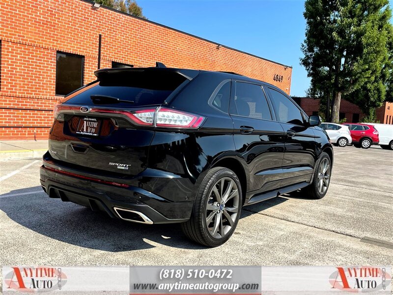 **2016 Ford Edge Sport A Blend of Power and Sophistication** Experience the perfect fusion of performance and luxury with the 2016 Ford Edge Sport, a midsize SUV that doesn't compromise on style or capability. This striking vehicle is powered by the robust EcoBoost 2.7L Turbo V6 engine, delivering an impressive 315 horsepower and 350 lb-ft of torque. Whether navigating city streets or cruising the highway, the Edge Sport offers a dynamic driving experience that is both exhilarating and efficient, achieving 17 MPG in the city and 24 MPG on the highway. **Exterior and Interior Design** Dressed in a sleek Shadow Black exterior, the Ford Edge Sport commands attention with its bold lines and athletic stance. The panoramic vista roof enhances the vehicles aesthetic appeal while providing an open and airy cabin ambiance. The interior is thoughtfully designed in a refined Ebony color scheme, featuring high-quality materials and finishes that elevate the overall experience. **Factory Default Features** The 2016 Ford Edge Sport comes equipped with an array of standard features designed for comfort, convenience, and safety. Key highlights include: - **All-Wheel Drive (AWD):** Enhanced traction and control in various driving conditions, ensuring confidence on the road. - **Sport-Tuned Suspension:** Provides a responsive and engaging driving experience. - **Leather-Trimmed Seating:** Offers a sophisticated touch while ensuring comfort during every journey. - **Dual-Zone Automatic Climate Control:** Allows both the driver and passengers to set their preferred temperature settings. - **Ford SYNC 3 Infotainment System:** A user-friendly interface featuring a touchscreen display, smartphone integration, and voice-activated navigation capabilities. - **Rearview Camera:** Enhances safety and convenience when reversing, providing a clear view of obstacles behind the vehicle. - **Blind Spot Information System (BLIS):** Alerts drivers to vehicles in their blind spots, promoting safer lane changes. **Packages and Optional Features** This particular Edge Sport is enhanced with the Equipment Group 401A and Technology Package, further enriching its offerings. The Equipment Group 401A includes amenities such as: - **20-Inch Premium Painted Aluminum Wheels:** A striking design that complements the vehicle's sporty aesthetics. - **Adaptive Cruise Control:** Adjusts speed based on traffic conditions to maintain a safe distance from the vehicle ahead. - **Forward Collision Warning with Brake Support:** Provides warnings and can apply brakes if necessary to help prevent collisions. Additionally, the optional **Remote Start System Anytime Auto Group 4904 Van Nuys Blvd. Sherman Oaks, CA 91403-1701 (818) 510-0472 -- INSTALLED FEATURES: Air filtration, Front air conditioning: automatic climate control, Front air conditioning zones: dual, Rear vents: second row, Airbag deactivation: occupant sensing passenger, Front airbags: dual, Knee airbags: dual front, Side airbags: front, Side curtain airbags: front / rear, Antenna type: diversity / mast, Auxiliary audio input: Bluetooth / iPod/iPhone / jack, In-Dash CD: MP3 Playback / single disc, Premium brand: Sony, Radio: AM/FM / HD radio / touch screen display / voice operated, Radio data system, Satellite radio: SiriusXM, Speed sensitive volume control, Subwoofer: 1, Total speakers: 11, Watts: 390, ABS: 4-wheel, Braking assist, Cornering brake control, Electronic brakeforce distribution, Front brake type: ventilated disc, Power brakes, Rear brake type: disc, Armrests: rear center with cupholders / rear folding, Dash trim: aluminum, Door sill trim: aluminum / illuminated scuff plate, Floor mat material: carpet, Floor material: carpet, Floor mats: front / rear, Foot pedal trim: aluminum, Shift knob trim: leather, Steering wheel trim: leather, Ambient lighting, Assist handle: front / rear, Capless fuel filler system, Cargo area light, Center console: front console with armrest and storage, Cruise control, Cupholders: 8 / front / rear, Keypad entry, Memorized settings: 3 driver / driver seat / liftgate / side mirrors / steering wheel, Multi-function remote: proximity entry system / trunk release, One-touch windows: 2, Overhead console: front, Power outlet(s): 12V front / 12V rear, Power steering: variable/speed-proportional, Power windows: lockout button, Push-button start, Reading lights: front / rear, Rearview mirror: auto-dimming, Steering wheel: power tilt and telescopic, Steering wheel mounted controls: audio / cruise control / multi-function / paddle shifter / phone / voice control, Storage: accessory hook / cargo net / cargo tie-down anchors and hooks / door pockets / front seatback / organizer / sunglasses holder, Universal remote transmitter: garage door opener, Vanity mirrors: dual illuminating, Active grille shutters, Door handle color: body-color, Exhaust: dual tip / integrated, Exhaust tip color: chrome, Front bumper color: body-color, Grille color: black, Mirror color: body-color, Rear bumper color: body-color, Rear spoiler: roofline, Rear spoiler color: body-color, Rear trunk/liftgate: liftgate / power operated / sensor-activated, Window trim: black, Connected in-car apps: app marketplace integration, Infotainment: SYNC, Infotainment screen size: 8 in., Clock, Compass, Digital odometer, External temperature display, Fuel economy display: MPG / range, Gauge: tachometer, Instrument cluster screen size: 4.2 in. (dual), Multi-function display, Trip odometer, Warnings and reminders: low fuel level / low oil level / maintenance due, Daytime running lights: LED, Exterior entry lights: approach lamps, Headlights: auto delay off / auto on/off / halogen / wiper activated, Taillights: LED, Side mirror adjustments: manual folding / power, Side mirrors: heated / integrated turn signals, 4WD type: on demand, Battery: maintenance-free, Battery saver, Camera system: rearview, Child safety door locks, Child seat anchors: LATCH system, Impact sensor: door unlock / post-collision safety 