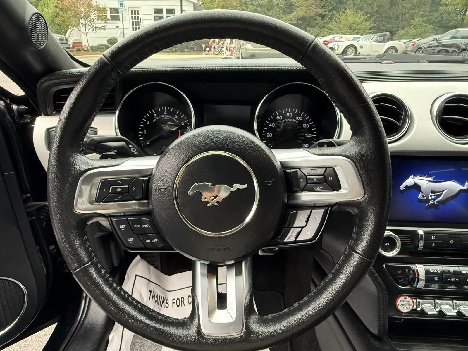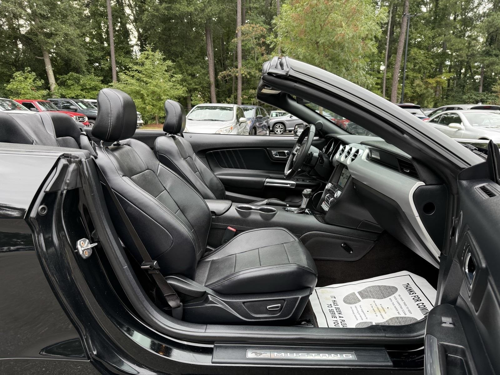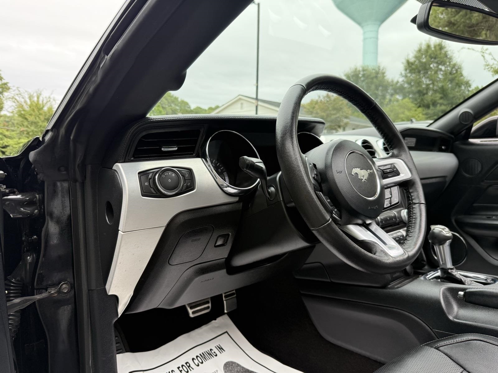 Shadow Black 2016 Ford Mustang GT Premium RWD 5.0L V8 Ti-VCT 6-Speed Automatic with Select-Shift4-Wheel Disc Brakes, 9 Speakers, ABS brakes, Air Conditioning, Alloy wheels, AM/FM radio: SiriusXM, AM/FM Stereo w/Single CD Player, Auto-dimming Rear-View mirror, Automatic temperature control, Block heater, Brake assist, Bumpers: body-color, CD player, Climate Controlled Heated/Cooled Front Seats, Compass, Convertible roof lining, Delay-off headlights, Driver door bin, Driver vanity mirror, Dual front impact airbags, Dual front side impact airbags, Electronic Stability Control, Emergency communication system: 911 Assist, Exterior Parking Camera Rear, Four wheel independent suspension, Front anti-roll bar, Front Bucket Seats, Front Center Armrest, Front dual zone A/C, Front fog lights, Front reading lights, Fully automatic headlights, Garage door transmitter, Glass rear window, Heated door mirrors, Heated front seats, High-Intensity Discharge Headlights, Illuminated entry, Knee airbag, Leather Bucket Seats, Leather Shift Knob, Low tire pressure warning, Occupant sensing airbag, Outside temperature display, Overhead console, Panic alarm, Passenger door bin, Passenger vanity mirror, Power convertible roof, Power door mirrors, Power driver seat, Power passenger seat, Power steering, Power windows, Radio data system, Rear anti-roll bar, Rear window defroster, Remote keyless entry, Security system, SiriusXM Radio, Speed control, Speed-sensing steering, Speed-Sensitive Wipers, Spoiler, Steering wheel mounted audio controls, SYNC 3 Communications & Entertainment System, Tachometer, Telescoping steering wheel, Tilt steering wheel, Traction control, Trip computer, Turn signal indicator mirrors, Variably intermittent wipers, Ventilated front seats, Voltmeter, Wheels: 18 x 8 Magnetic Painted/Machined.Awards: * 2016 KBB.com 10 Coolest New Cars Under $25,000 * 2016 KBB.com Brand Image AwardsSince YOU, the customer, are our greatest priority, all of our vehicles have been inspected, cleaned to perfection, and ready for you to come and pick up!