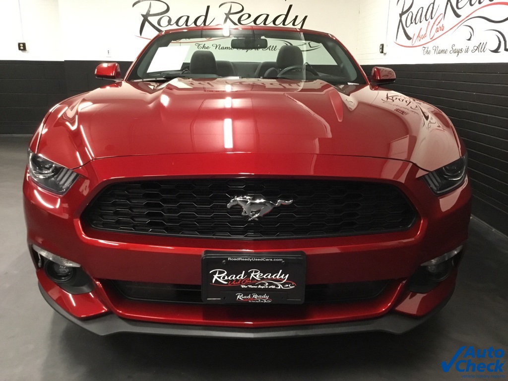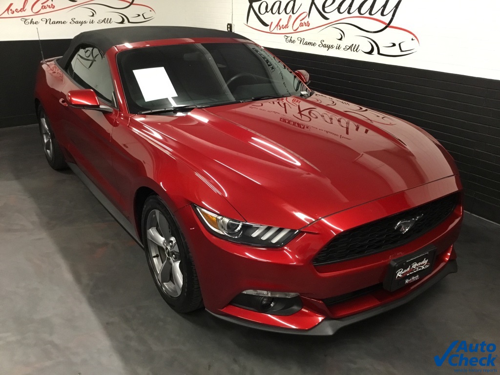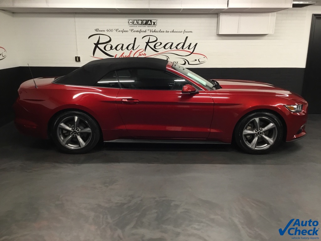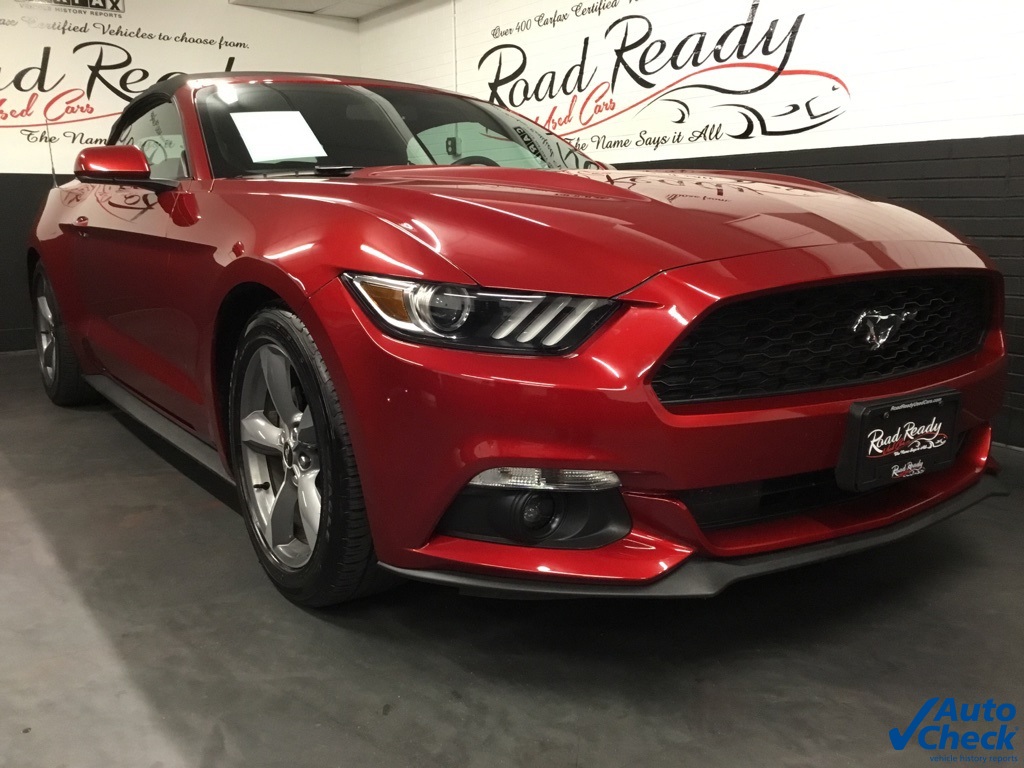 * ONE OF A KIND - DROP THE TOP AND HAVE SOME FUN - WE DELIVER TO ALL 50 STATES *, * 150 POINT SAFETY & MAINTENANCE INSPECTION *, * ONE OWNER * CLEAN AUTOCHECK *, * NO ACCIDENTS REPORTED TO AUTOCHECK *, * A PERFECT AUTOCHECK HISTORY REPORT *, * WELL MAINTAINED *, * NEW CAR DEALER FRESH TRADE *, * ABSOLUTELY PRISTINE CONDITION THROUGHOUT *, * SAVE ON GAS, AND LOOK GOOD DOING IT! *, * MUST SEE *, * HOT COLOR COMBO *, * BEST PRICE IN THE STATE *, 3.55 Limited Slip Rear Axle, 6 Speakers, 6-Way Power Driver Seat w/Power Lumbar, Air Conditioning, AM/FM Stereo w/Single CD Player, Auto-dimming Rear-View mirror, Blade Decklid Body-Colored Spoiler, Convertible roof lining, Electronic Stability Control, Equipment Group 051A, Exterior Parking Camera Rear, Front Bucket Seats, Glass rear window, High-Intensity Discharge Headlights, LED Fog Lamps, Power convertible roof, Power windows, Remote keyless entry, Security system, Speed control, Steering wheel mounted audio controls, SYNC Communications & Entertainment System, Tachometer, Telescoping steering wheel, Tilt steering wheel, Wheels: 18 x 8 Foundry Black-Painted Aluminum.Awards: * 2016 KBB.com 10 Coolest New Cars Under $25,000 * 2016 KBB.com Brand Image AwardsRuby Red Metallic 2016 Ford Mustang V6 2D Convertible RWD 6-Speed Automatic with Select-Shift 3.7L V6 Ti-VCT 24V 19/28 City/Highway MPGALL SERVICED, AUTOCHECKED AND CERTIFIED! ! ! Road Ready Used Cars is family owned and operated for the last 36 years! We would like to thank you for considering Road Ready Used Cars for the purchase of your pre-owned vehicle. Come visit us at our all new state of the art facility situated on over four acres. Our service facility and reconditioning center is amongst the best in the state. We have over 500 AutoCheck certified, hand picked vehicles to choose from! Go to www.roadreadyusedcars.com/reviews for the link to BBB, Cargurus.com Dealerrater.com, Facebook, and Google to check out our stellar review rating of 4.8 out of 5 stars. Call or text one of our product specialists at (203) 371-6957 with any questions, or to schedule a test drive today!