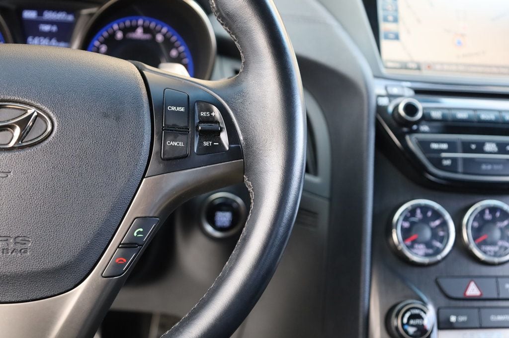 This 2016 Hyundai Genesis Coupe 2dr 2dr 3.8L Automatic Ultimate with Black Seats features a 3.8L V6 CYLINDER 6cyl Gasoline engine. It is equipped with a Automatic transmission. The vehicle is Ibiza Blue Pearl with a Black interior. It is offered As-Is, extended warranty is available. - 3.8L V6 ENGINE, 8-SPEED AUTOMATIC TRANSMISSION WITH PADDLE SHIFTERS, REAR-WHEEL DRIVE (RWD), ULTIMATE PACKAGE TRIM, BLACK LEATHER-APPOINTED SEATS, HEATED FRONT SEATS, POWER-ADJUSTABLE DRIVER AND PASSENGER SEATS, DRIVER SEAT MEMORY SETTINGS, LEATHER-WRAPPED STEERING WHEEL AND SHIFT KNOB, DUAL-ZONE AUTOMATIC CLIMATE CONTROL, NAVIGATION SYSTEM WITH 7-INCH TOUCHSCREEN, INFINITI PREMIUM AUDIO SYSTEM WITH 10 SPEAKERS, BLUETOOTH HANDS-FREE PHONE AND AUDIO STREAMING, USB AND AUXILIARY INPUT JACKS, KEYLESS ENTRY WITH PUSH-BUTTON START, POWER TILT-AND-SLIDE SUNROOF, HID XENON HEADLIGHTS, LED DAYTIME RUNNING LIGHTS, FOG LIGHTS, PROXIMITY KEY, REARVIEW CAMERA, PARKING SENSORS, BREMBO PERFORMANCE BRAKES (FRONT AND REAR), SPORT-TUNED SUSPENSION, 19-INCH ALLOY WHEELS, TIRE PRESSURE MONITORING SYSTEM (TPMS), ELECTRONIC STABILITY CONTROL (ESC), TRACTION CONTROL SYSTEM (TCS)AND MUCH MORE, CALL 770-800-1100 FOR MORE INFORMATION! - Climate Control, Cruise Control, Power Steering, Power Windows, Power Mirrors, Leather Steering Wheel, Clock, Tachometer, Homelink System, Telescoping Steering Wheel, Steering Wheel Radio Controls, Driver Airbag, Passenger Airbag, Side Airbags, Security System, Rear Defogger, Fog Lights, Intermittent Wipers, AM/FM, CD Player, Carpeted Floor Mats, Center Arm Rest, Cup Holders, Daytime Running Lights, Heated Mirrors, Overhead Console, Remote Fuel Door, Remote Trunk Lid, Roll Stability Control, Side Curtain Airbags, Tire Pressure Monitor, Vanity Mirrors - Contact Bill Dangra at 770-800-1100 or magnetismmotors@gmail.com for more information. -