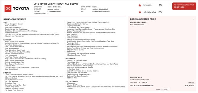 Wireless Phone Connectivity, Window Grid Antenna, Wheels: 7.0J x 17 Alloy -inc: super chrome finish, Variable Intermittent Wipers, Valet Function, Trunk Rear Cargo Access, Trip Computer, Transmission: 6-Speed Automatic, Transmission w/Sequential Shift Control, Tires: P215/55R17 AS. This Toyota Camry has a powerful Regular Unleaded I-4 2.5 L/152 engine powering this Automatic transmission.*This Toyota Camry XLE Has Everything You Want *Tire Specific Low Tire Pressure Warning, Strut Rear Suspension w/Coil Springs, Strut Front Suspension w/Coil Springs, Steel Spare Wheel, Smart Device Integration, Sliding Front Center Armrest and Rear Center Armrest, Single Stainless Steel Exhaust w/Chrome Tailpipe Finisher, Side Impact Beams, Selective Service Internet Access, Seats w/Leatherette Back Material, Remote Releases -Inc: Mechanical Cargo Access and Mechanical Fuel, Remote Keyless Entry w/Integrated Key Transmitter, 2 Door Curb/Courtesy, Illuminated Entry, Illuminated Ignition Switch and Panic Button, Rear Cupholder, Rear Child Safety Locks, Real-Time Traffic Display, Radio: Entune (subscription required) Audio Plus -inc: Entune (subscription required) multimedia bundle, 7 high resolution touch-screen display, AM/FM CD player, MP3/WMA playback capability, 6 speakers, auxiliary audio jack, USB 2.0 port w/iPod connectivity and control, advanced voice recognition, hands-free phone capability, phone book access and music streaming via Bluetooth wireless technology, Connected Navigation Scout GPS link App, Siri Eyes Free, SiriusXM all access radio (subscription required), HD Radio, HD traffic and weather in major metro areas, Radio w/Seek-Scan, Clock, Speed Compensated Volume Control and Steering Wheel Controls, Power Rear Windows, Power Door Locks w/Autolock Feature, Power 1st Row Windows w/Driver And Passenger 1-Touch Up/Down.* Critics Agree*IIHS Top Safety Pick+, KBB.com 10 Best Sedans Under $25,000, KBB.com 10 Best UberX Candidates, KBB.com 5-Year Cost to Own Awards, KBB.com Best Buy Awards Finalist, KBB.com 10 Most Awarded Cars, KBB.com 10 Most Comfortable Cars Under $30,000, KBB.com 10 Best Used Cars Under $15,000.* Stop By Today *Stop by Auto Boutique - FL located at 9012 Beach Blvd, Jacksonville, FL 32216 for a quick visit and a great vehicle!* Seller Notes and Disclaimer: We honor all advertised prices. If you saw this vehicle listed on a third-party site (e.g., CarGurus, AutoTrader, Cars.com), please mention it so we can verify and match that price. *Although every reasonable effort has been made to ensure the accuracy of the information contained on this site, absolute accuracy cannot be guaranteed. Dealer is not responsible for errors and omissions. All vehicles are subject to prior sale. Price does not include applicable state sales tax, title, license plate, dealer documentation fee of $1298.00 (This charge represents costs and profit to the dealer for items such as inspecting, cleaning, and adjusting vehicles, and preparing documents related to the sale), electronic filing fee of $897.37 (This charge represents costs and profit to the dealer for items such as inspecting, cleaning, and adjusting vehicles, and preparing documents related to the sale).For additional information and a complete breakdown of fees, add-ons, taxes, and payments, visit our website at: http://autoboutiqueflorida.com.