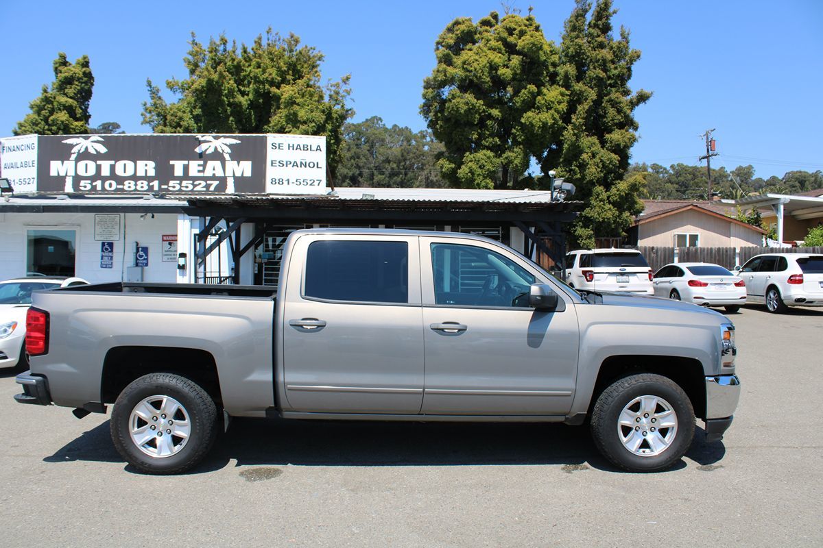 Introducing the Carfax 1-Owner 2017 Chevrolet Silverado 1500 4WD Crew Cab 143.5 LT w/1LTa bold statement in Pepperdust Metallic designed to turn heads. With its robust 5.3L V8 engine, this powerhouse offers impressive performance, seamlessly balancing strength and efficiency. The Four Wheel Drive system ensures you'll conquer any terrain with confidence, making this truck a reliable partner for both work and play. Step inside the spacious cabin adorned in Jet Black, where comfort meets rugged utility. The high desert package enhances versatility, offering premium features for those who need a truck ready for adventure. Whether you're driving on city streets or exploring off-road trails, the elevated interior experience keeps everyone comfortable and entertained. Stylish exteriors meet functionality with the LPO black pack, adding a sleek touch with its dynamic look. Choose from an array of wheels, including the LPO 22 5-spoke high gloss black wheels with machined accents, perfect for making a bold statement. Alternatively, the LPO 22 6-spoke black wheels or the split chrome options offer a unique flair, customized to your taste. This Silverado isn't just a mode of transportationit's a declaration of style, power, and reliability. Welcome to Motor Team, your trusted destination for quality used vehicles! We offer a diverse selection of used cars, SUVs, trucks, vans, and pickups, including popular makes like Honda, Toyota, Chevy, BMW, Mercedes, Audi, Jaguar, Porsche, and Ford. Whether you're searching for a reliable sedan like the Toyota Camry, an adventurous SUV, or a rugged pickup similar to the Ford F-150, we've got you covered. At Motor Team, you can find carros, camionetas, y trocas usadas a la venta at competitive prices. Our inventory features options for every budget and preference, including dually and 4x4 models. Stop by our dealership today or call at 510-881-5527 to schedule a test drive and experience the perfect vehicle for your needs! Don't forget to mention your OfferUp listed price