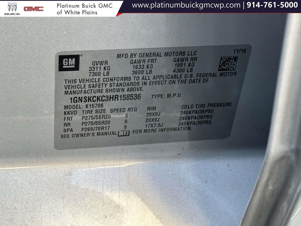 Silver Ice Metallic 2017 Chevrolet Tahoe Premier 4WD 6-Speed Automatic Electronic with Overdrive EcoTec3 5.3L V8 4WD, Jet Black w/Leather-Appointed Seat Trim, 10 Speakers, 1st & 2nd Row Color-Keyed Carpeted Floor Mats, 3rd Row 60/40 Power Fold Split-Bench, 4-Wheel Antilock Disc Brakes w/Brake Assist, 4-Wheel Disc Brakes, 5 12-Volt Auxiliary Power Outlets, 6-Way Power Front Passenger Seat Adjuster, ABS brakes, Adaptive suspension, Air Conditioning, All-Weather Floor Mats, All-Weather Rear Cargo Mat (LPO), Alloy wheels, AM/FM radio: SiriusXM, Apple CarPlay/Android Auto, Auto High-beam Headlights, Auto-Dimming Inside Rear-View Mirror, Automatic temperature control, Black Assist Steps w/Chrome Accent Strip, Bose Centerpoint Premium 10-Speaker Surround Sound, Brake assist, CD player, Color-Keyed Carpeting Floor Covering, Delay-off headlights, Driver Inboard & Front Passenger Airbags, Dual front impact airbags, Dual front side impact airbags, Electronic Cruise Control w/Set & Resume Speed, Electronic Stability Control, Emergency communication system: OnStar Guidance.The listed price reflects the vehicle's finance amount after a twenty-five hundred down payment. The price does not include sales tax, title, registration, tags, government fees, $995 dealer processing fee, optional protection products, or additional aftermarket items, such as a theft-recovery system. All vehicles are sold cosmetically as-is. We are proud to support our community by offering special discounts to active and retired military personnel, law enforcement officers, teachers, medical professionals, and municipal employees. Eligibility, documentation, and discount amounts vary by program and vehicle. Please contact us for full program details and verification requirements. We work with multiple banks and credit unions to offer flexible financing options, subject to credit approval and credit tier. Customers of all credit backgrounds are welcome, including those with past bankruptcies, repossessions, limited credit, or no credit. Same-day delivery may be available, please contact us for eligibility and terms. Although every reasonable effort has been made to ensure the accuracy of the information on this site, Platinum GMC Buick cannot guarantee absolute accuracy. Vehicle availability, pricing, and specifications may change without notice. Vehicles shown online may have been sold, removed, or may differ slightly from the displayed description due to posting delays. Each vehicle is unique and offered in limited quantity based on its specific features, options, colors, and mileage. By submitting a lead form you are consenting to be contacted by phone, email and/or text. Opt out of text anytime by responding stop.