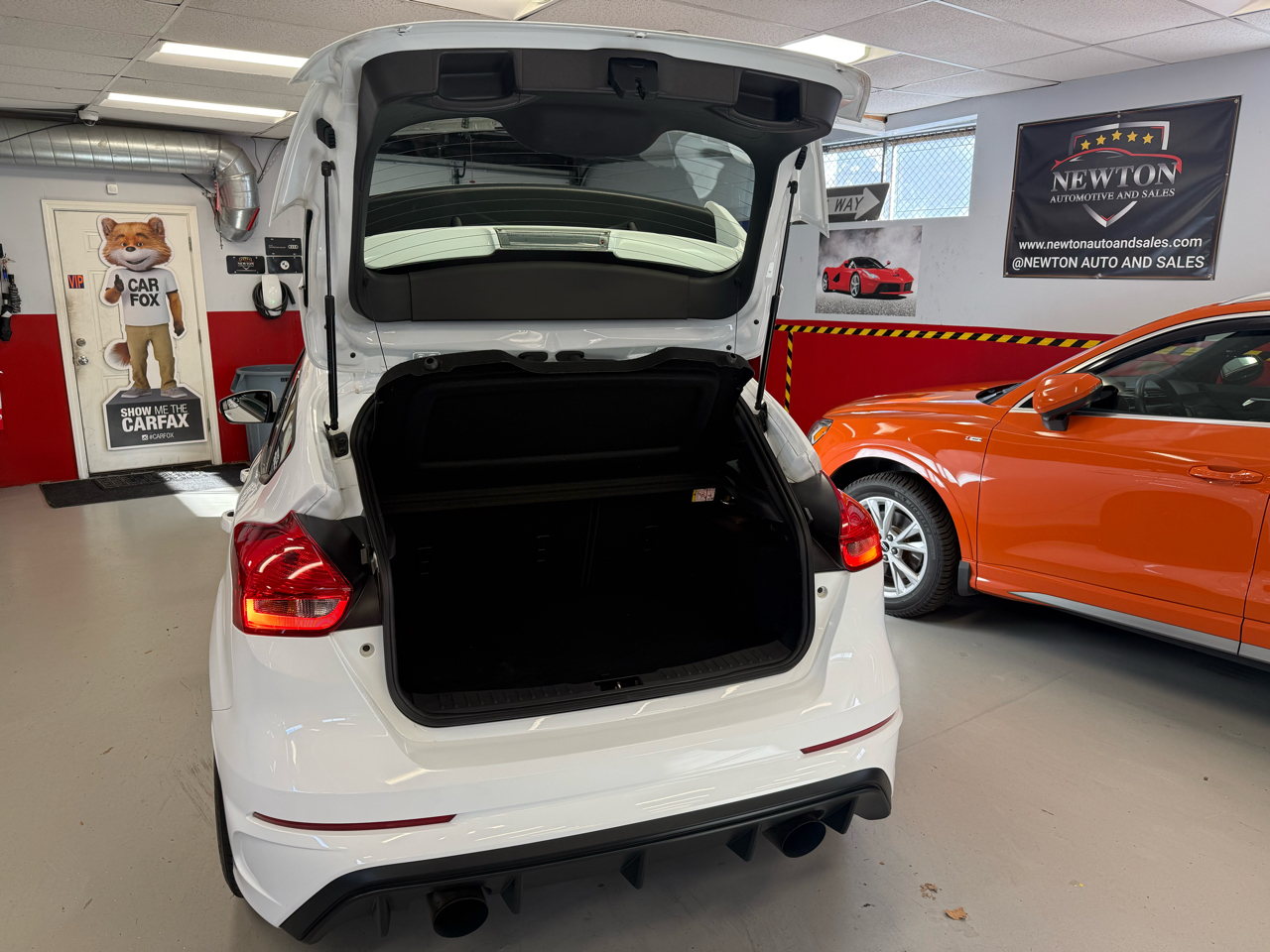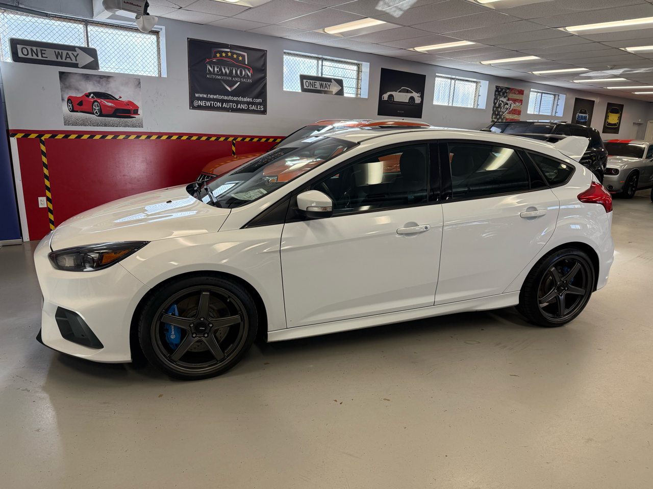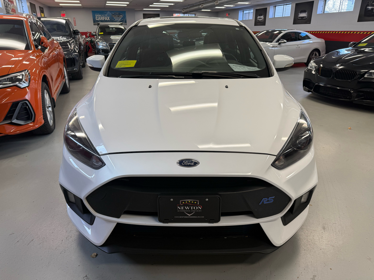 The 2017 Ford Focus RS is a high-performance hot hatch that combines everyday practicality with track-ready capability. Its powered by a 2.3-liter turbocharged EcoBoost inline-four engine producing 350 horsepower and 350 lb-ft of torque, paired exclusively with a six-speed manual transmission and an advanced all-wheel-drive system featuring torque vectoring for exceptional grip and handling.With a 060 mph time around 4.7 seconds and a top speed of about 165 mph, the Focus RS delivers thrilling acceleration and sharp, confident cornering. It features multiple drive modes including Normal, Sport, Track, and Drift Mode allowing drivers to tailor the cars dynamics to their environment.The exterior stands out with aggressive styling, a large rear spoiler, bold front fascia, and sporty 19-inch wheels. Inside, the cabin is performance-focused yet functional, offering Recaro sport seats, a flat-bottom steering wheel, RS badging, and SYNC 3 infotainment with an 8-inch touchscreen.Overall, the 2017 Focus RS is a drivers car a compact performance machine that blends raw power, precision handling, and hatchback versatility into one exhilarating package. Visit Newton Automotive and Sales online at newtonautoandsales.com to see more pictures of this vehicle or call us at 617-964-6136 today to schedule your test drive.