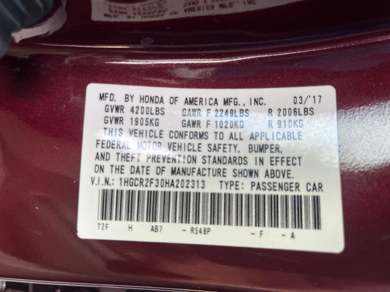 1HGCR2F30HA202313