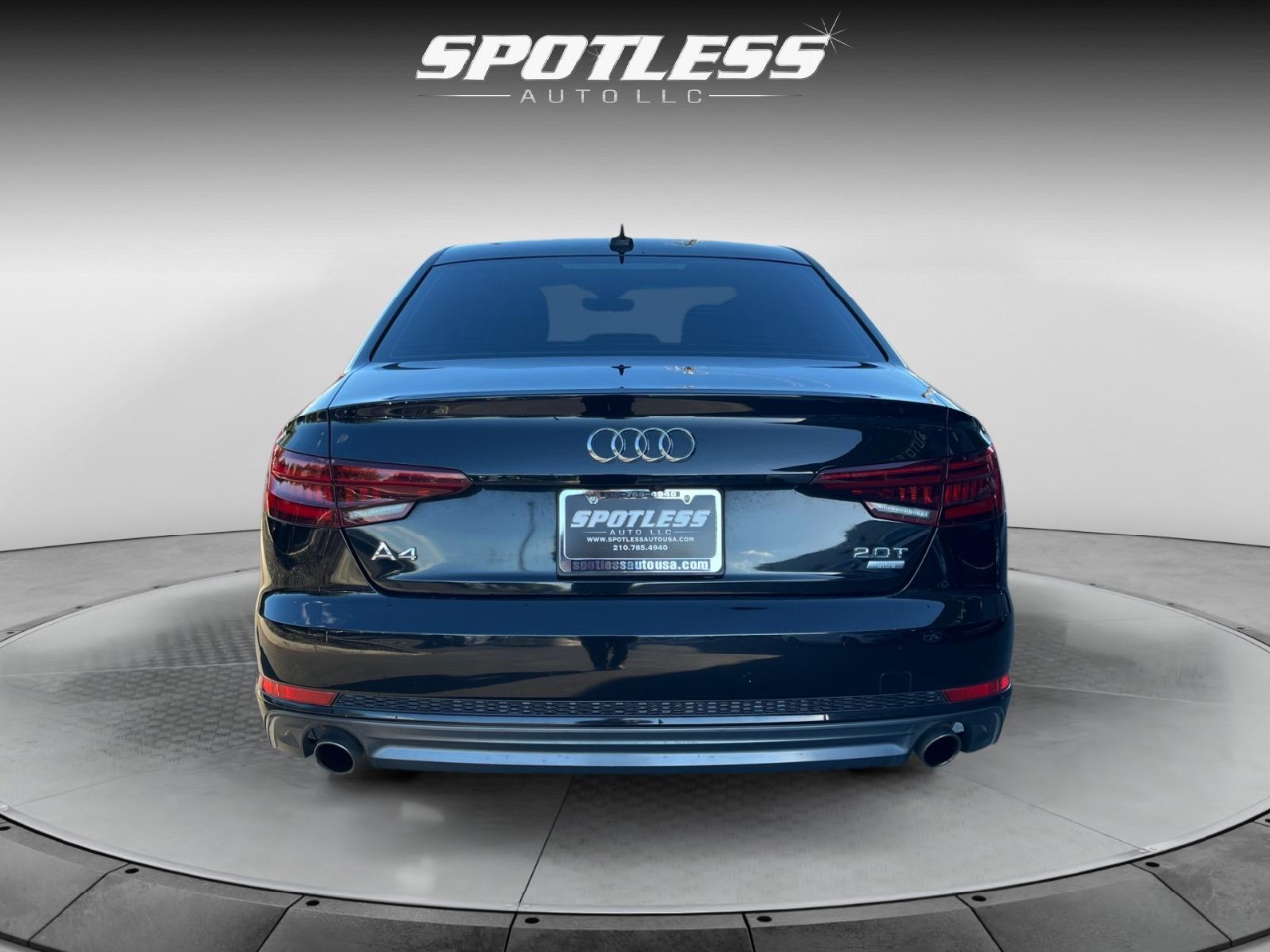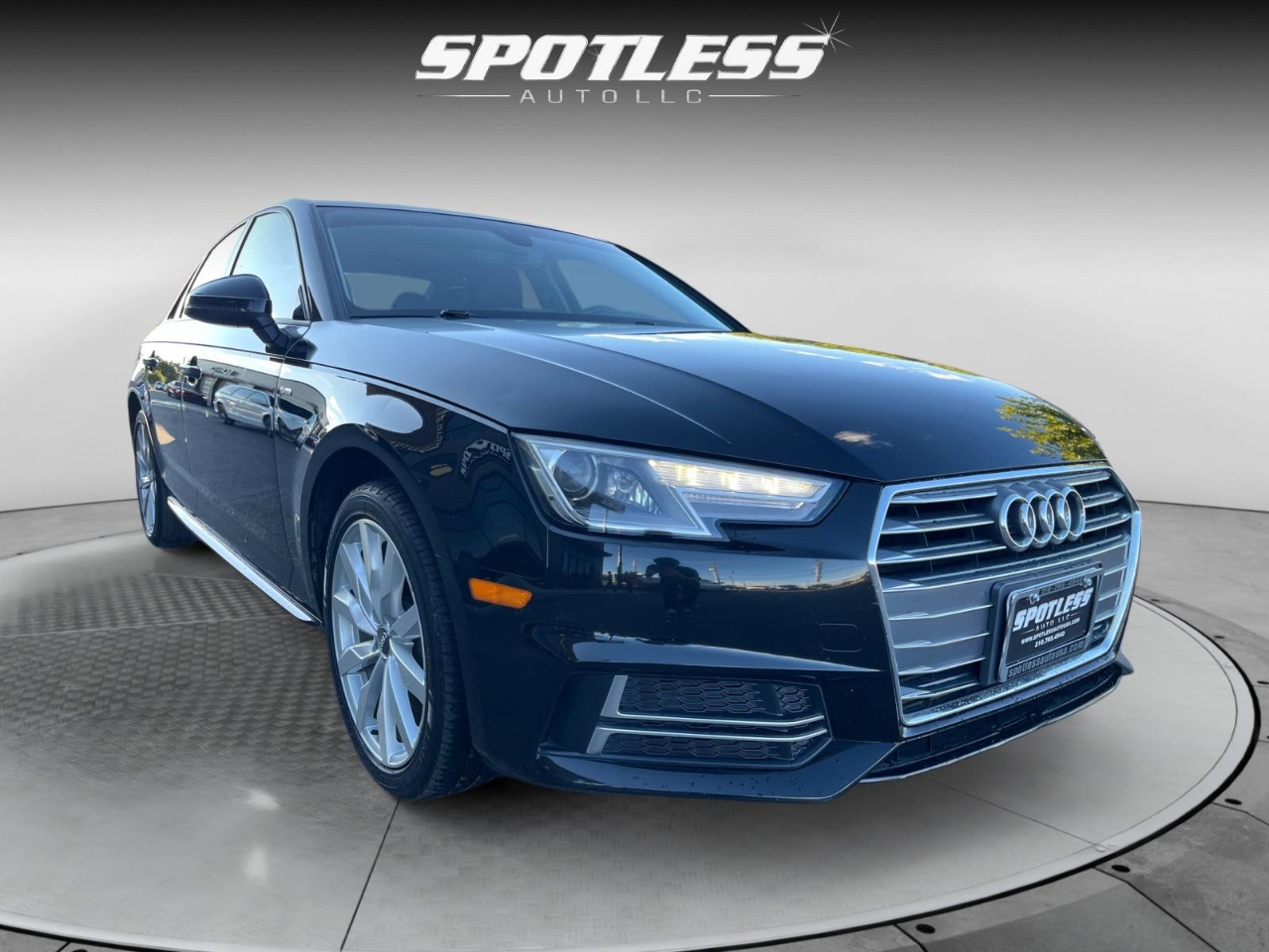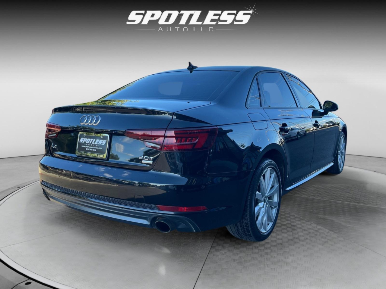 27/37 City/Highway MPG Black Metallic 2018 Audi A4 2.0T ultra Premium FrontTrak 7-Speed Automatic S tronic 2.0L I4 TFSI DOHC 7-Speed Automatic S tronic, Black Leather. Awards: * 2018 KBB.com 10 Most Awarded Brands 18 Wheel Package (Wheels: 8 x 18 10-Spoke-Star Design), Convenience Package (Anti-Theft Alarm System w/Immobilizer, Audi Advanced Key, Color Driver Information System w/Trip Computer, Driver Memory, Heated Auto-Dimming Power Ext Mirrors w/Memory, and SiriusXM Satellite Radio), 7-Speed Automatic S tronic, Black Leather, 10 Speakers, 4-Wheel Disc Brakes, ABS brakes, Air Conditioning, Alloy wheels, AM/FM radio, Anti-whiplash front head restraints, Audi Beam-Rings, Audi Guard All-Weather Floor Mats, Audi smartphone interface (Apple CarPlay/Android Auto), Auto-dimming Rear-View mirror, Automatic temperature control, Brake assist, Bumpers: body-color, Compass, Delay-off headlights, Driver door bin, Driver vanity mirror, Dual front impact airbags, Dual front side impact airbags, Electronic Stability Control, Exterior Parking Camera Rear, Four wheel independent suspension, Front anti-roll bar, Front Bucket Seats, Front Center Armrest, Front dual zone A/C, Front fog lights, Front reading lights, Garage door transmitter: HomeLink, Heated 3-Step Front Bucket Seats, Heated door mirrors, Heated front seats, High intensity discharge headlights: Xenon plus, Illuminated entry, Knee airbag, Leather Seating Surfaces, Leather Shift Knob, Leather steering wheel, Low tire pressure warning, Natural Gray Oak Inlays, Occupant sensing airbag, Outside temperature display, Overhead airbag, Overhead console, Panic alarm, Passenger door bin, Passenger vanity mirror, Power door mirrors, Power driver seat, Power moonroof, Power passenger seat, Power steering, Power windows, Radio data system, Radio: Audi MMI Navigation Plus w/MMI Touch, Radio: Audi Sound System, Rain sensing wipers, Rear air conditioning, Rear anti-roll bar, Rear fog lights, Rear reading lights, Rear seat center armrest, Rear window defroster, Remote CD player, Remote keyless entry, Speed control, Speed-sensing steering, Speed-Sensitive Wipers, Split folding rear seat, Steering wheel mounted audio controls, Tachometer, Telescoping steering wheel, Tilt steering wheel, Traction control, Trip computer, Turn signal indicator mirrors, USB Cables (DISC), Variably intermittent wipers, and Wheels: 7.5 x 17 5-Spoke-Y Design. Visit Spotless Auto LLC (Loop 1604) to shop our great deals. You can call 210-785-4940 to schedule your test drive today.