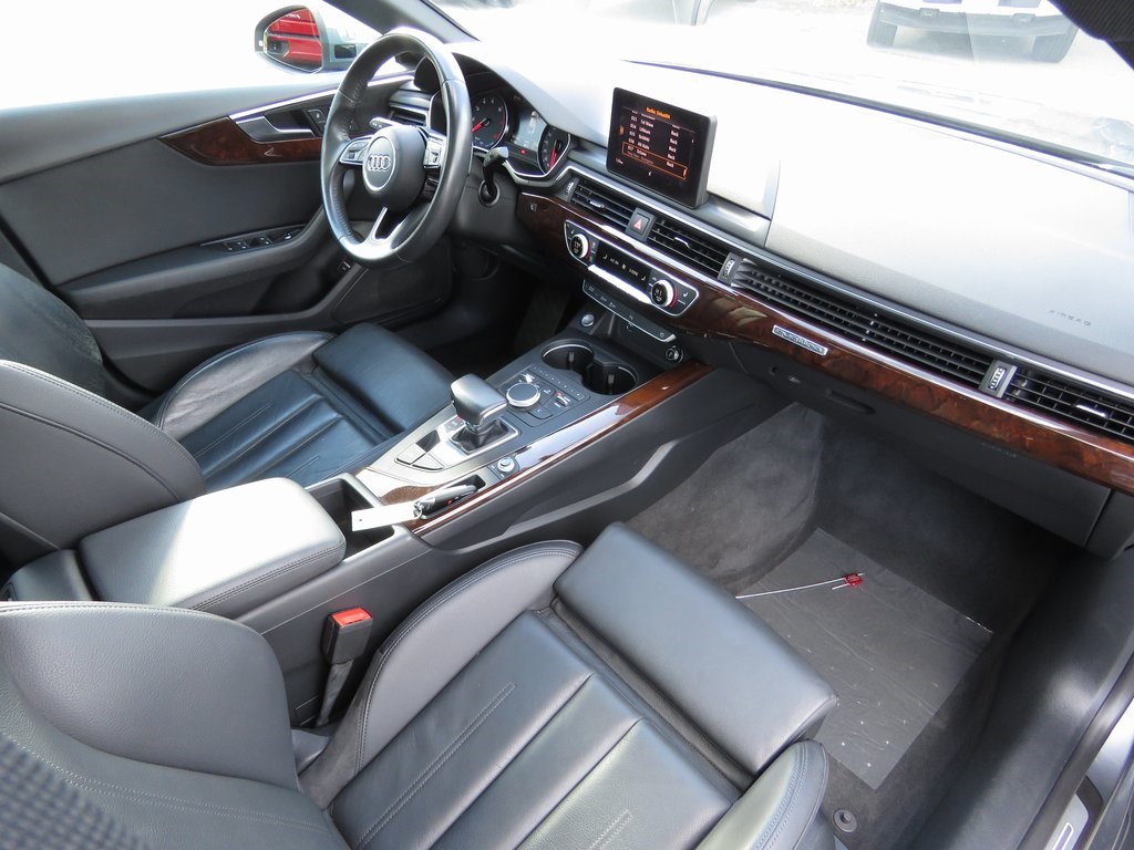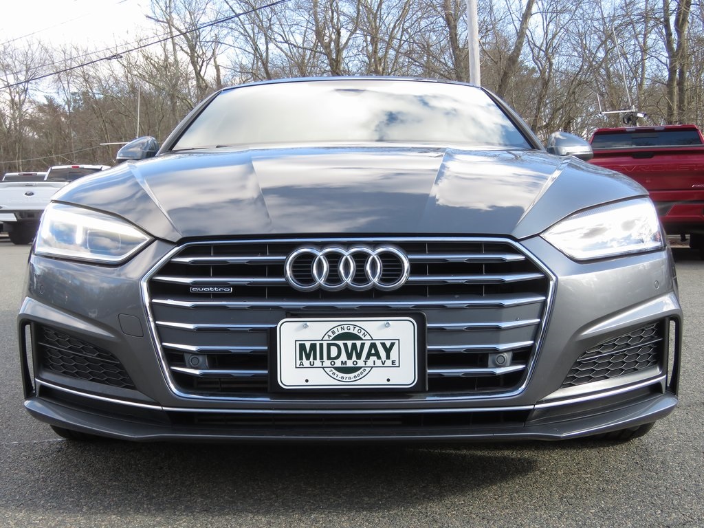 ACCIDENT FREE HISTORY REPORT, EXTENDED WARRANTY AVAILABLE, FINANCING AVAILABLE, 10 Speakers, 12.3 LCD Display Audi Virtual Cockpit, 4-Wheel Disc Brakes, ABS brakes, Air Conditioning, Alarm System w/Motion Sensors, Alloy wheels, AM/FM radio, Anti-whiplash front head restraints, Audi Advanced Key, Audi Guard All-Weather Floor Mats, Audi MMI Navigation Plus w/MMI Touch, Audi Side Assist, Audi smartphone interface (Apple CarPlay/Android Auto), Auto-dimming Rear-View mirror, Automatic temperature control, Brake assist, Bumpers: body-color, Compass, Convenience Package, Dark Brown Walnut Wood High Gloss Inlays, Delay-off headlights, Driver door bin, Driver Seat Memory, Driver vanity mirror, Dual front impact airbags, Dual front side impact airbags, Electronic Stability Control, Exterior Parking Camera Rear, Four wheel independent suspension, Front anti-roll bar, Front Bucket Seats, Front Center Armrest, Front dual zone A/C, Front fog lights, Front reading lights, Front Sport Seats, Full LED Headlights, Garage door transmitter: HomeLink, Heated Auto-Dimming Power Ext Mirrors w/Memory, Heated Auto-Dimming Power/Memory Exterior Mirrors, Heated door mirrors, Heated Front Seats, High intensity discharge headlights: Bi-xenon, Illuminated entry, Knee airbag, Leather Seating Surfaces, Leather Shift Knob, Leather steering wheel, Navigation Package, Occupant sensing airbag, Outside temperature display, Overhead airbag, Overhead console, Panic alarm, Parking System Plus (Front/Rear Acoustic Sensors), Passenger door bin, Passenger vanity mirror, Power adjustable front head restraints, Power door mirrors, Power driver seat, Power Liftgate, Power moonroof, Power passenger seat, Power steering, Power windows, Premium Plus, Radio data system, Radio: Audi Sound System, Rain sensing wipers, Rear air conditioning, Rear anti-roll bar, Rear Audi Pre Sense, Rear reading lights, Rear seat center armrest, Rear window defroster, Remote keyless entry, S Line Bumpers, S Line Fender Badges, S line Side Sill Blades, S line Sport Package, SiriusXM All Access Service, Speed control, Speed-sensing steering, Speed-Sensitive Wipers, Split folding rear seat, Sport Suspension, Steering wheel mounted audio controls, Tachometer, Telescoping steering wheel, Tilt steering wheel, Traction control, Trip computer, Turn signal indicator mirrors, Variably intermittent wipers, Wheels: 18 x 8.5 10-Spoke-Dynamic-Design, Wheels: 18 x 8.5 5-Arm-Star Design.Clean CARFAX. Priced below KBB Fair Purchase Price!Awards: * 2018 KBB.com 10 Most Awarded Brands.......SEVERAL FINANCE OPTIONS AVAILABLE....Call to schedule a test drive today!! YOU can buy a vehicle at MIDWAY AUTOMOTIVE in Abington, MA with CONFIDENCE and PEACE OF MIND. All vehicles include ONE key. *** Go to www.midwayautomotive.com for our full inventory with free CARFAX REPORT on every car we have in stock. ..OUR PRICES ARE COMPETITIVE and WE WOULD LOVE TO TAKE YOUR TRADE...***....(navigation data discs and cards may not be included) All vehicles are sold with one key. Prices do not include $585.00 documentation fee, taxes, or title/registry fees. THANK YOU!!!2018 Audi A5 2.0T Premium Plus quattro