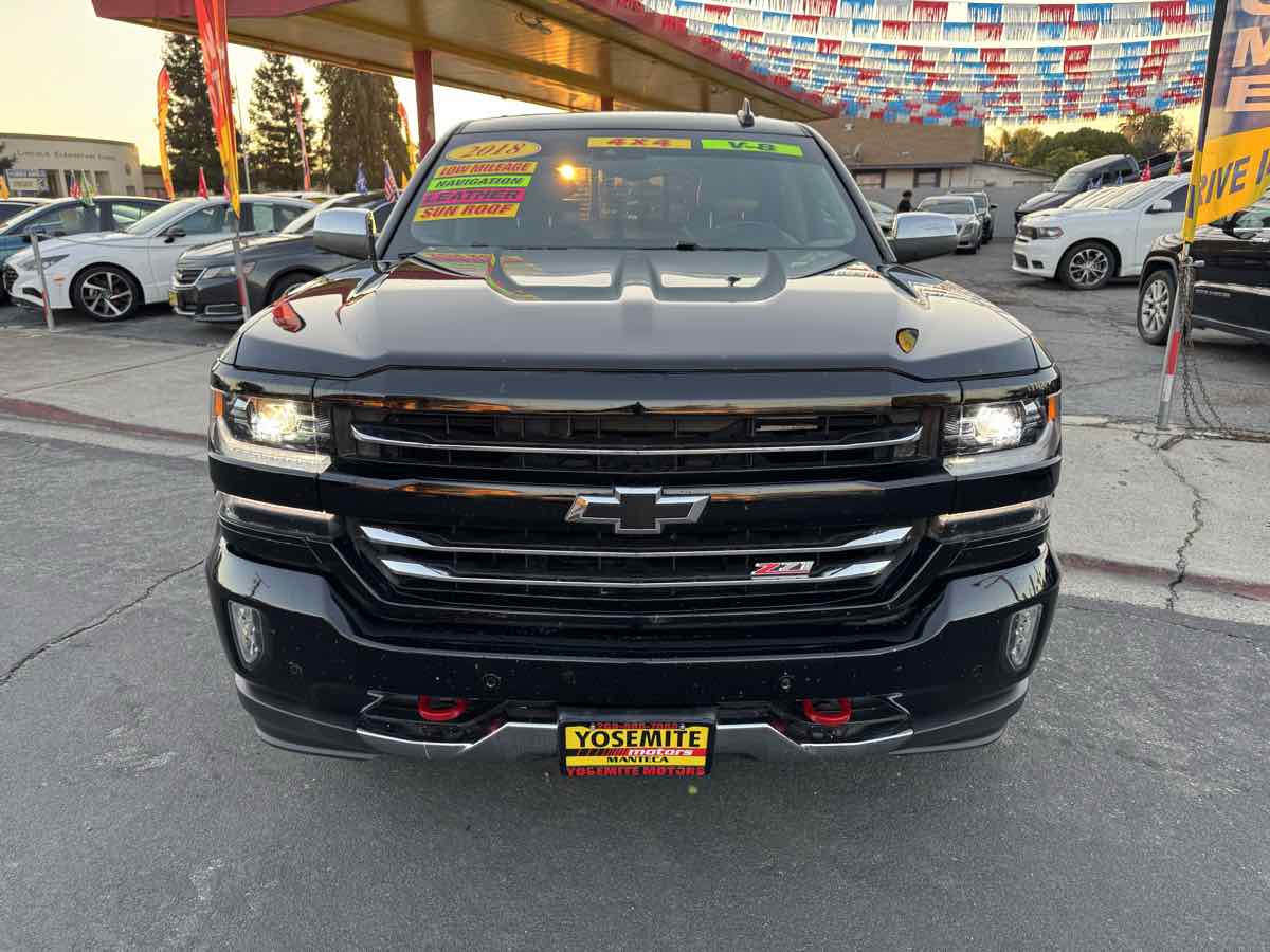 Engineered to be smart and strong, our 2018 Chevrolet Silverado 1500 LTZ Z71 Crew Cab 4X4 in Black delivers all the capability you require for work or play with the LTZ Plus Pack! Powered by a 6.2 Liter EcoTec3 V8 generating 420hp paired with an 8 Speed Automatic transmission with tow/haul mode. This Four Wheel Drive truck executes flawlessly to provide up to 21mpg on the highway and plenty of muscle to get your job done easily! The striking appearance of our LTZ is top-notch, boasting a chiseled physique, bold grille, body-color accents, prominent black wheels, step bars, spray-on bedliner, sunroof, hitch receiver, and a high-strength steel bed. Bask in the luxury and comfort of the well-designed LTZ cabin that greets you with a universal home remote, remote vehicle start, a rearview camera, heated/cooled leather seats, a heated steering wheel, power accessories, and a driver information center. It's easy to stay in touch thanks to the Chevrolet MyLink radio with voice activation, an 8-inch color touchscreen, Bluetooth, available satellite radio, Android Auto/Apple CarPlay capability, and OnStar with available WiFi. Our Chevrolet is built strong with the trailering package and has received top safety scores thanks to its high-strength steel, Stabilitrak, ABS, daytime running lamps, and numerous airbags. You deserve this Silverado LTZ that can keep up with you, whether conquering your work day or playing hard on the weekend. Reward yourself! Save this Page and Call for Availability. We Know You Will Enjoy Your Test Drive Toward Ownership!