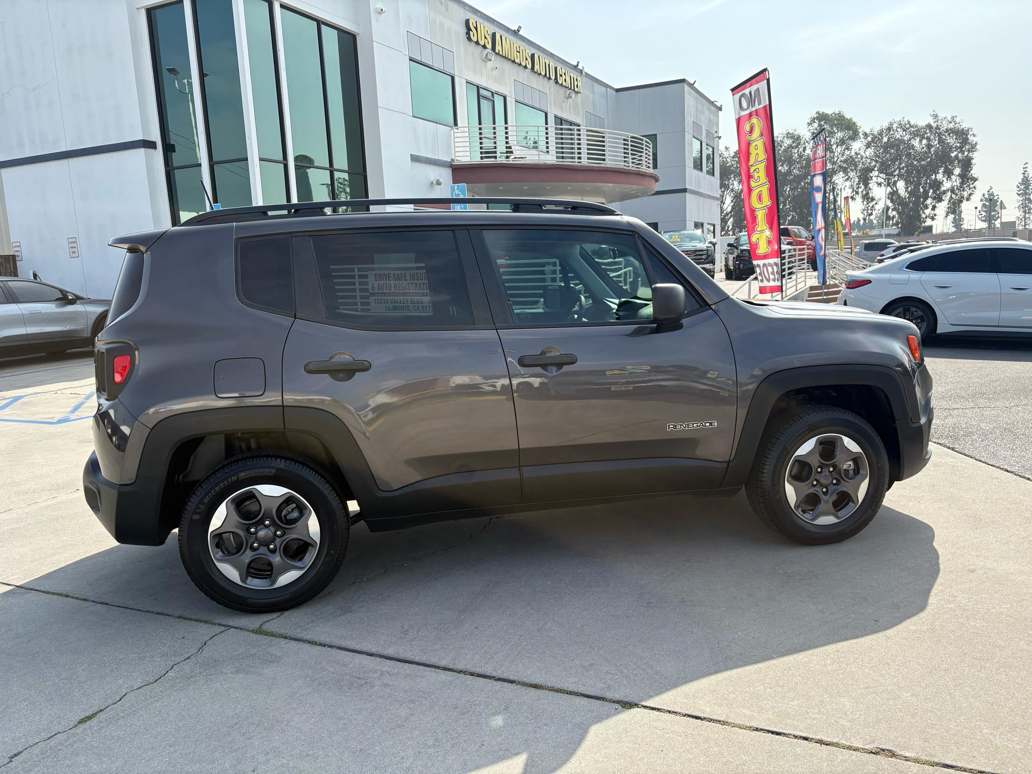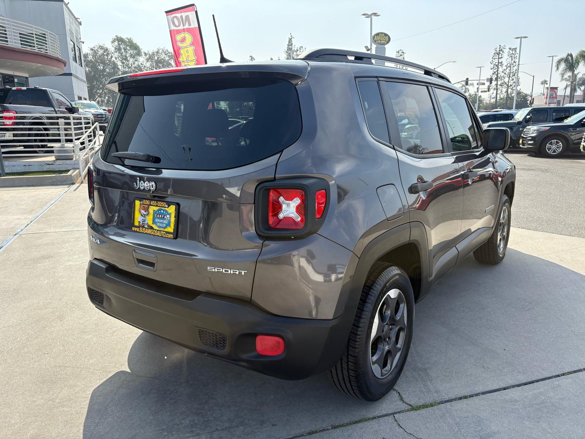 Get ready to hit the road in style with this adventure-ready 2018 Jeep Renegade! This Brown beauty is packed with features to make every drive a joy, from its Automatic Full-Time Four-Wheel Drive to its Gas-Pressurized Shock Absorbers for a smooth ride. Whether you're cruising down the highway or taking on rough terrain, this Renegade is up for the challenge with its 4.438 Final Drive Ratio and Electronic Transfer Case.Equipped with a reliable 500CCA Maintenance-Free Battery and 150 Amp Alternator, you'll never have to worry about being stranded on your journey. Plus, with Towing Equipment included, you can easily bring along all your gear for the ultimate adventure.Step inside the spacious cabin and you'll find comfort and convenience at every turn. The 6-way driver seat ensures a perfect fit, while the 60-40 folding rear seat provides ample cargo space for all your belongings. Stay connected with the integrated roof antenna and enjoy your favorite tunes with the 6 speakers throughout the vehicle.Safety is always a top priority with features like Side Impact Beams and a ParkView Back-Up Camera, giving you peace of mind on every drive. And with a Carfax report available, you can buy with confidence, knowing this Jeep Renegade has been well-maintained and is ready for all your upcoming adventures. SUS AMIGOS AUTO CENTERREASONSFOR OUR SUCCESSIt all starts with buying the right car that is just as true for us automotive dealers as it is for our customers. We are fortunate to have some of the very best & most experienced vehicle buyers in all Los Angeles County. They take the necessary time to personally select each and every one of the vehicles in our inventory. We don't buy a vehicle unless we know our customers will love it. Our vehicles go through an extensive safety inspection prior to being professionally detailed with the upmost care by our professional detailing team. We are certain before listing our vehicles for sale that you will love your new vehicle and we back up every vehicle sold with our 30 day limited warranty. Furthermore we offer a wide range of extended warranty options to match the needs of every customers.