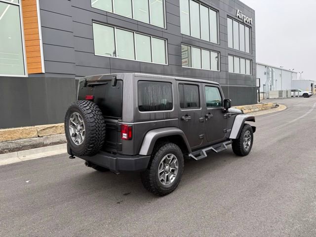 New Price! CARFAX One-Owner. Clean CARFAX. Odometer is 29066 miles below market average! 2018 Granite Crystal Metallic Clearcoat Jeep Wrangler JK Unlimited Rubicon 4WD 5-Speed Automatic 3.6L V6 24V VVT Body Color 3-Piece Hard Top, Body Color Fender Flares, Class II Receiver Hitch, Cold Weather Group, Connectivity Group, Delete Sunrider Soft Top, Engine Block Heater, Freedom Panel Storage Bag, Heated Front Seats, Max Tow Package, MOPAR Slush Mats, Quick Order Package 24R, Rear Window Defroster, Rear Window Wiper/Washer, Tire Pressure Monitoring Display, Trailer Tow w/4-Pin Connector Wiring, Uconnect Voice Command w/Bluetooth, Vehicle Information Center.<br><br>Contact us online or give us a call at (816) 219-2000 to have your questions answered and to schedule a test drive today! Airport Chrysler Dodge Jeep Ram is located in Platte City, MO, just 2 miles from KCI at the corner of I-29 & I-435. Look for the Huge American Flag!<br><br><br>Awards:<br> * 2018 KBB.com 10 Most Awarded Brands