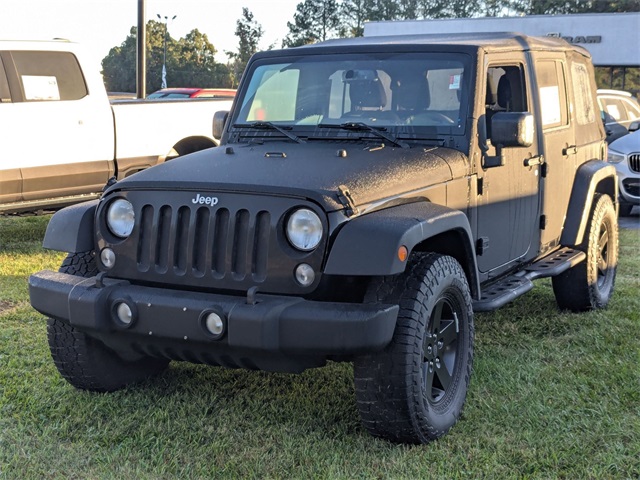 CLEAN CARFAX, LOCAL TRADE, LIFETIME ENGINE GUARANTEE, 4WD, FAST AND EASY FINANCING, THE NEW PRICE OUTLET, 17 x 7.5 Aluminum Wheels, Auto-Dimming Mirror w/Reading Lamp, Chrome/Leather Wrapped Shift Knob, Connectivity Group, Deep Tint Sunscreen Windows, Front 1-Touch Down Power Windows, Leather Wrapped Steering Wheel, Power Convenience Group, Power Heated Mirrors, Power Locks, Quick Order Package 24S Sport S, Remote Keyless Entry, Security Alarm, Tire Pressure Monitoring Display, Uconnect Voice Command w/Bluetooth, Vehicle Information Center, 16 x 7.0 Luxury Styled Steel Wheels, 3.21 Rear Axle Ratio, 4-Wheel Disc Brakes, 8 Speakers, ABS brakes, Air Conditioning, AM/FM radio, Audio Jack Input for Mobile Devices, Brake assist, CD player, Cloth Seats w/Adjustable Head Restraints, Compass, Driver door bin, Driver Height Adjuster Seat, Driver vanity mirror, Dual front impact airbags, Electronic Stability Control, Front anti-roll bar, Front Bucket Seats, Front Center Armrest w/Storage, Front fog lights, Integrated roll-over protection, Low tire pressure warning, MOPAR Slush Mats, Normal Duty Suspension, Occupant sensing airbag, Outside temperature display, Passenger door bin, Passenger vanity mirror, Power steering, Premium Black Sunrider Soft Top, R1234YF A/C Refrigerant, Radio: 130, Rear anti-roll bar, Speed control, Split folding rear seat, Steering wheel mounted audio controls, Sunrider Soft Top, Tachometer, Tilt steering wheel, Traction control, Trip computer, Variably intermittent wipers, 17 x 7.5 Aluminum Wheels, Auto-Dimming Mirror w/Reading Lamp, Chrome/Leather Wrapped Shift Knob, Connectivity Group, Deep Tint Sunscreen Windows, Front 1-Touch Down Power Windows, Leather Wrapped Steering Wheel, Power Convenience Group, Power Heated Mirrors, Power Locks, Quick Order Package 24S Sport S, Remote Keyless Entry, Security Alarm, Tire Pressure Monitoring Display, Uconnect Voice Command w/Bluetooth, Vehicle Information Center. Black Clearcoat 2018 Jeep Wrangler JK Unlimited Sport 4WD 5-Speed Automatic 3.6L V6 24V VVT 16/20 City/Highway MPG Odometer is 12266 miles below market average!****Thank you for choosing John Hiester CDJR of Sanford. Proudly serving Sanford, Pinehurst, Southern Pines, Mamers, Broadway, Pittsboro, Lillington, Angier, Dunn, Erwin, Benson Cary, Apex, Fuquay Varina, Holly Springs, Fayetteville, Raleigh, Durham, and surrounding areas. The team is excited and dedicated to making sure every customer has an unparalleled buying experience. Elevate your driving experience today! Ask us about our pre-owned vehicles that come with our Dealership for Life benefits. With over 1000 exceptional vehicles to choose from and the ability to acquire every used make and model, we are confident you, your family and friends will be 100% satisfied with the service, selection, and deals. Many of our customers love the off-site test drives we offer and at home deliveries. ****Please call us at 919-897-7572**** and experience world class customer service. Get off your Kiester and come to Hiester!Awards: * 2018 KBB.com 10 Most Awarded Brands