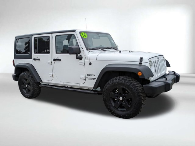 Certified. Bright White Clearcoat 2018 Jeep Wrangler JK Unlimited Sport 3.6L V6 24V VVT 5-Speed Automatic 4WDCertification Program Details: *3 Month/3,000 Mile Maximum Care Coverage Whichever Comes First, Measured From Certified Pre-Owned Purchase Date. Thorough Reconditioning Process Using Authentic Mopar Parts. Car Rental Allowance, 3-Month Trial Subscription for SiriusXM GuardianTM and Satellite Radio * Vehicles Up to 120,000 Miles and 5 Model Years Between 75,001 and 120,000 Miles. * Vehicle History * Roadside Assistance * Warranty Deductible $100Vehicle pricing includes all offers and incentives. Sales tax, registration fees, dealer installed options, reconditioning costs, and $1,299 dealer fee not included in all vehicle prices shown and must be paid by the purchaser.