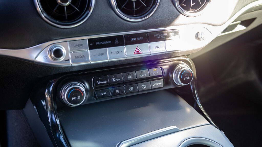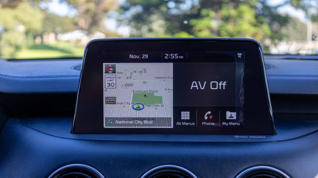 2018 Kia Stinger GT2 High-Performance Luxury Sport Sedan in Aurora Black<br /><br />Turn every drive into an experience with this 2018 Kia Stinger GT2, finished in sleek Aurora Black with a bold Red interior. As a 4D Sedan with all-wheel drive, the Stinger GT2 blends thrilling performance, refined luxury, and everyday practicality in a head-turning package.<br /><br />Power comes from a potent 3.3L twin-turbocharged V6 engine, paired with a smooth and responsive 8-speed automatic transmission and AWD for confident traction in all conditions. This performance-focused setup delivers exhilarating acceleration while still offering respectable efficiency, with an EPA-estimated 17 MPG city / 25 MPG highway.<br /><br />Inside, the GT2 trim offers a premium, driver-focused cabin featuring leather-appointed sport seating, heated and ventilated front seats, heated rear seats, a head-up display, smart key with push-button start, and a large touchscreen infotainment system with Apple CarPlay, Android Auto, Bluetooth connectivity, and premium audio. The aggressive styling is matched by comfort and advanced technology throughout the interior.<br /><br />Safety and driver-assist features include a Surround View Monitor, Blind-Spot Collision Warning, Rear Cross-Traffic Alert, Lane Keeping Assist, Forward Collision-Avoidance Assist, Adaptive Cruise Control, Electronic Stability Control, and a comprehensive airbag system for added peace of mind.<br /><br />At National City Auto Center, we are proud to be San Diegos #1 Independent Dealership and a CARFAX Certified Dealer, offering quality vehicles with verified history. With over 350 units available, finding your next performance sedan has never been easier.<br /><br />Come experience the power, luxury, and style of this 2018 Kia Stinger GT2 today and see why its one of the most exciting sport sedans on the road.<br /><br />Located at 1800 National City Blvd., National City, CA<br />Se Habla Espanol<br /><br />#NationalCityAutoCenter #KiaStinger #StingerGT2 #CARFAXCertified #SanDiegoCars