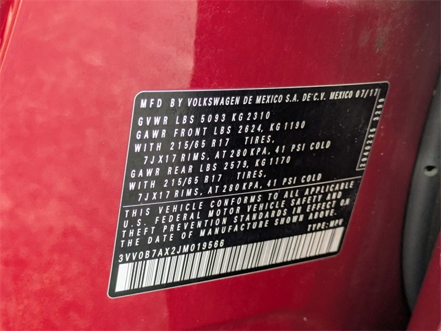 2018 Volkswagen Tiguan 2.0T S 4Motion Cardinal Red MetallicPriced below KBB Fair Purchase Price! 21/27 City/Highway MPGWHY BUY FROM CARite of COCOA:-No haggle Pricing-Easy Finance Options-100% Customer Satisfaction Guarantee-High Quality Vehicles-FREE Full Vehicle History Report-NON COMMISSION SALES STAFF (Fixed commissions put their best interests in line with yours, so they can focus on helping YOU find the car that best fits YOUR needs.)Equipped with 2-Row Rubber Mats Kit, 3.33 Axle Ratio, 4-Wheel Disc Brakes, 6 Speakers, ABS brakes, Air Conditioning, Alloy wheels, AM/FM radio, Brake assist, Bumpers: body-color, Cloth Seating Surfaces, Compass, Delay-off headlights, Driver door bin, Driver vanity mirror, Dual front impact airbags, Dual front side impact airbags, Electronic Stability Control, Exterior Parking Camera Rear, Four wheel independent suspension, Front anti-roll bar, Front Bucket Seats, Front Center Armrest, Front reading lights, Fully automatic headlights, Heated door mirrors, Illuminated entry, Leather Shift Knob, Low tire pressure warning, Occupant sensing airbag, Outside temperature display, Overhead airbag, Overhead console, Panic alarm, Passenger door bin, Passenger vanity mirror, Power door mirrors, Power steering, Power windows, Radio data system, Radio: AM/FM w/USB Ports, Rear anti-roll bar, Rear seat center armrest, Rear window defroster, Rear window wiper, Remote keyless entry, Roadside Assistance Kit, Roof rack: rails only, Speed control, Speed-sensing steering, Split folding rear seat, Spoiler, Steering wheel mounted audio controls, Tachometer, Telescoping steering wheel, Tilt steering wheel, Traction control, Trip computer, Turn signal indicator mirrors, Variably intermittent wipers, and Wheels: 17 Montana Visit Us at www.CARite.com then CARite of Cocoa to view more pictures. Call Us Today At 321-877-1000 To Schedule Your V.I.P Appointment!.Awards: * 2018 KBB.com 10 Best SUVs Under $25,000