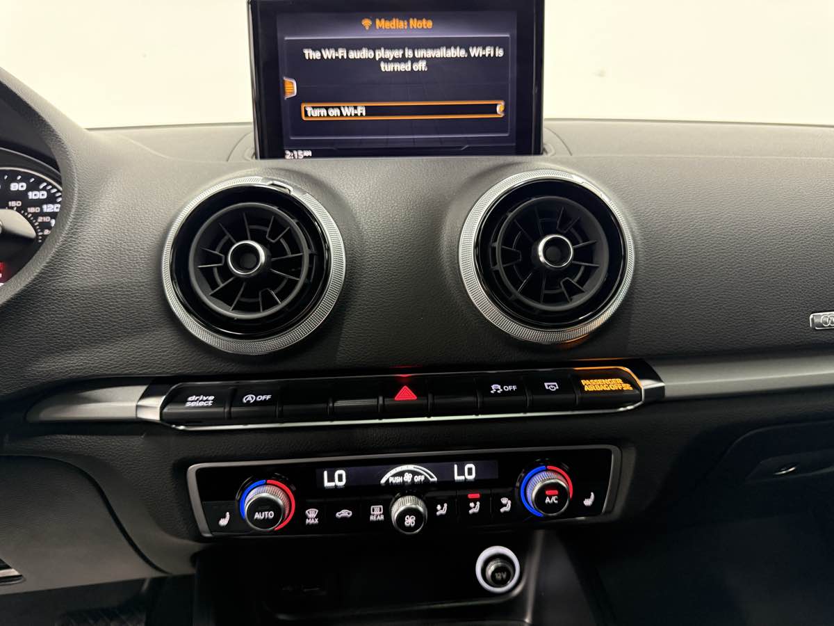 The 2019 Audi A3 Sedan Premium 40 TFSI stands as a testament to refined luxury and modern engineering, showcasing a sleek exterior in the elegant hue of Glacier White Metallic. This striking color accentuates the vehicles streamlined design and underscores Audi's commitment to sophistication and style.Under the hood, the A3 is powered by a robust 2.0L 4-cylinder engine, delivering a blend of efficiency and performance that makes every drive memorable. Enhancing its dynamic capabilities, the sport suspension ensures a smooth yet exhilarating ride, providing precise handling and a connection to the road that driving enthusiasts will appreciate.Inside, the car boasts a contrasting Black interior that envelops passengers in comfort and understated elegance. The convenience package further elevates the driving experience with features that simplify and enhance everyday journeys, making this Audi A3 not just a car, but a companion in life's adventures.