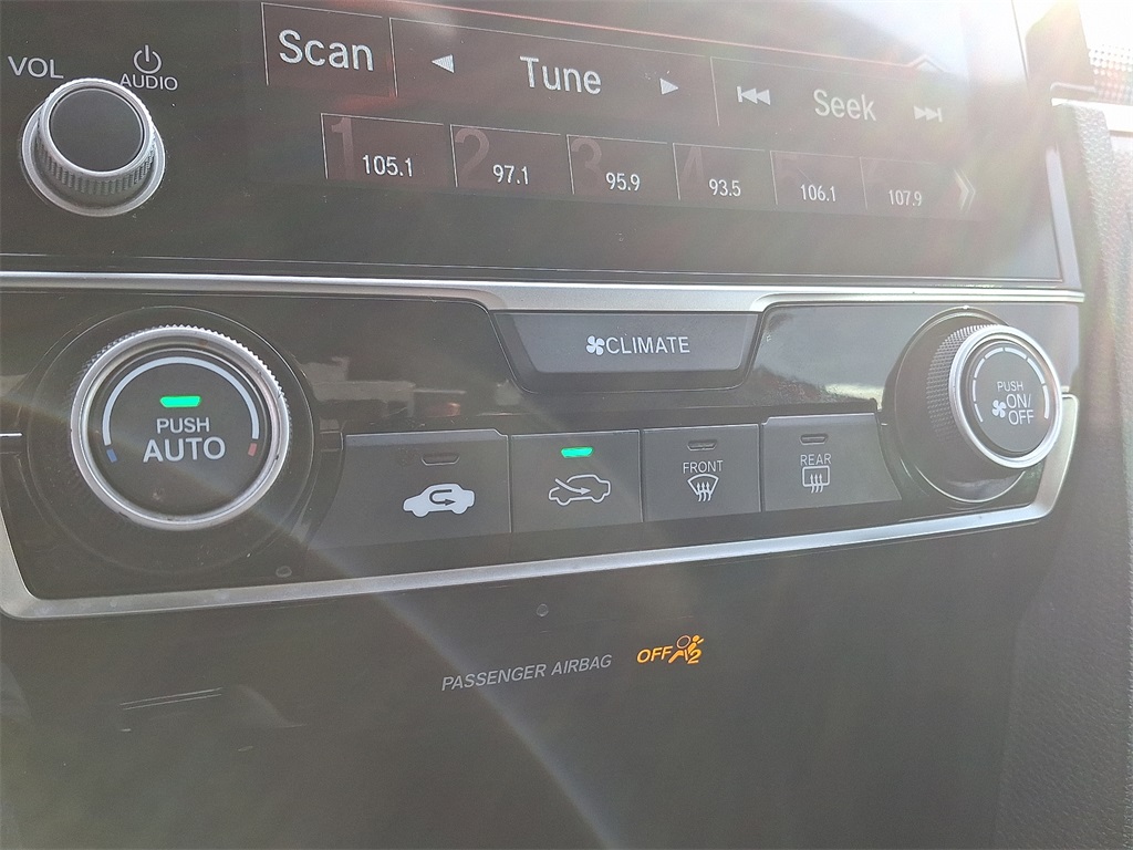 *BLUETOOTH*, *USB*, *SATELLITE RADIO*, *BACK UP CAMERA*, Civic Sport, 4D Sedan, 2.0L I4 DOHC 16V i-VTEC, CVT, Black Cloth, 8 Speakers, Exterior Parking Camera Rear, Lane departure: Lane Keeping Assist System (LKAS) active, Power steering, Power windows, Radio: 180-Watt AM/FM Audio System. Check out all these great options Civic Sport, 4D Sedan, 2.0L I4 DOHC 16V i-VTEC, CVT, Black Cloth, 8 Speakers, Exterior Parking Camera Rear, Lane departure: Lane Keeping Assist System (LKAS) active, Power steering, Power windows, Radio: 180-Watt AM/FM Audio System, 4-Wheel Disc Brakes, ABS brakes, Air Conditioning, Alloy wheels, AM/FM radio, Apple CarPlay/Android Auto, Auto High-beam Headlights, Automatic temperature control, Brake assist, Bumpers: body-color, Cloth Seat Trim, Delay-off headlights, Driver door bin, Driver vanity mirror, Dual front impact airbags, Dual front side impact airbags, Electronic Stability Control, Emergency communication system: HondaLink, Forward collision: Collision Mitigation Braking System (CMBS) + FCW mitigation, Four wheel independent suspension, Front anti-roll bar, Front Bucket Seats, Front Center Armrest, Front fog lights, Front reading lights, Fully automatic headlights, Illuminated entry, Leather Shift Knob, Low tire pressure warning, Occupant sensing airbag, Outside temperature display, Overhead airbag, Panic alarm, Passenger door bin, Passenger vanity mirror, Power door mirrors, Radio data system, Rear anti-roll bar, Rear window defroster, Remote keyless entry, Security system, Speed control, Speed-sensing steering, Split folding rear seat, Spoiler, Steering wheel mounted audio controls, Tachometer, Telescoping steering wheel, Tilt steering wheel, Traction control, Trip computer, and Wheels: 18 Alloy w/Gloss Black Inserts.29/37 City/Highway MPG