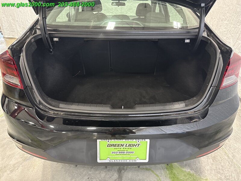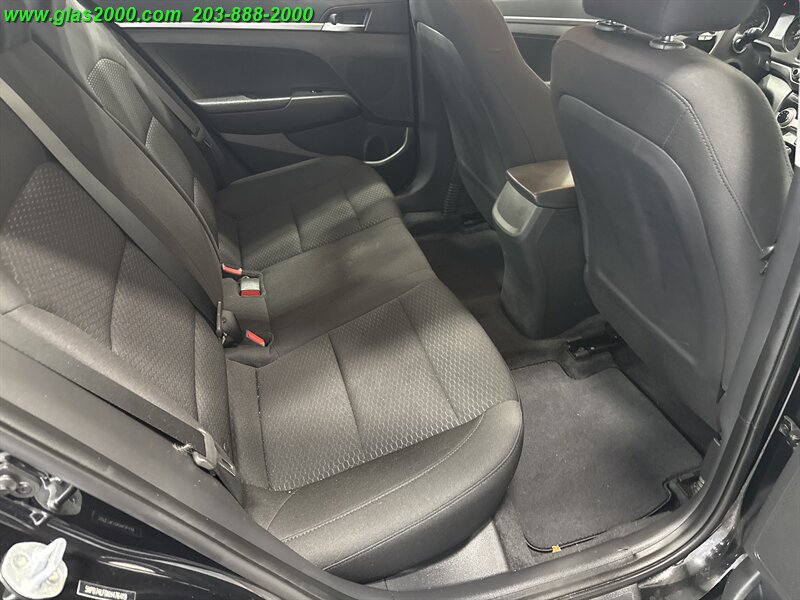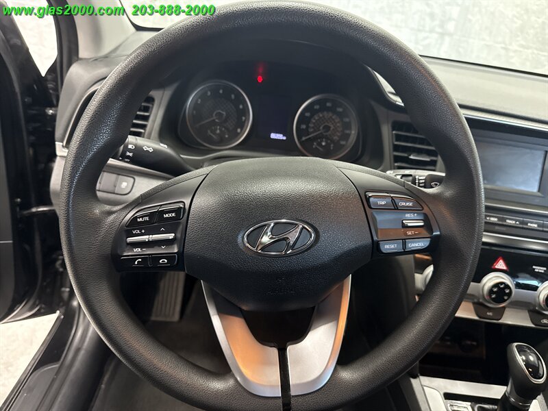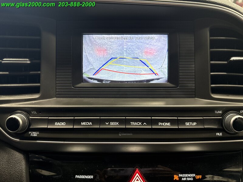 Phantom Black 2019 Hyundai Elantra SE FWD 6-Speed Automatic with Shiftronic 2.0L 4-Cylinder DOHC 16V CREDIT ISSUES? WE CAN HELP!! **203-888-2000**, ACCIDENT FREE CARFAX REPORT, SERVICE HISTORY AVAILABLE, ONE OWNER, AVAILABLE EXTENDED WARRANTY, ABS brakes, Brake assist, Cargo Net, Cargo Package, Dual front impact airbags, Electronic Stability Control, Exterior Parking Camera Rear, Front wheel independent suspension, Option Group 01, Radio: AM/FM/MP3 Audio System, Reversible Cargo Tray, Speed-sensing steering, Steering wheel mounted audio controls, Telescoping steering wheel, Tilt steering wheel, Traction control, Trunk Hooks.Recent Arrival! 29/38 City/Highway MPG -- INSTALLED FEATURES: Air filtration, Front air conditioning, Front air conditioning zones: single, Rear vents: second row, Airbag deactivation: occupant sensing passenger, Front airbags: dual, Knee airbags: driver, Side airbags: front, Side curtain airbags: front / rear, Antenna type: element, Auxiliary audio input: Bluetooth / iPod/iPhone / jack / USB, Radio: AM/FM / touch screen display, Speed sensitive volume control, Total speakers: 6, ABS: 4-wheel, Braking assist, Electronic brakeforce distribution, Front brake type: ventilated disc, Power brakes, Rear brake type: drum, Door sill trim: scuff plate, Floor material: carpet, Interior accents: metallic-tone, Shift knob trim: urethane, Steering wheel trim: urethane, Assist handle: front / rear, Cargo area light, Center console: front console with armrest and storage, Cruise control, Cupholders: front / rear, Multi-function remote: keyless entry / panic alarm / trunk release, One-touch windows: 1, Overhead console: front, Power outlet(s): two 12V front, Power steering: variable/speed-proportional, Power windows: lockout button, Reading lights: front, Rearview mirror: manual day/night, Steering wheel: tilt and telescopic, Steering wheel mounted controls: audio / cruise control / phone / voice control, Storage: accessory hook / door pockets / front seatback / sunglasses holder, Vanity mirrors: dual, Door handle color: body-color, Exhaust: hidden, Exhaust tip color: stainless steel, Front bumper color: body-color, Grille color: chrome, Mirror color: body-color, Rear bumper color: body-color, Window trim: black, Infotainment screen size: 5 in., Clock, Digital odometer, External temperature display, Fuel economy display: MPG / range, Gauge: tachometer, Instrument cluster screen size: 3.5 in., Multi-function display, Trip odometer, Warnings and reminders: coolant temperature warning / lamp failure / low battery / low fuel level / low oil pressure, Daytime running lights, Headlights: halogen, Side mirror adjustments: manual folding / power, Alternator: 120 amps, Battery: maintenance-free, Battery saver, Drive mode selector, Camera system: rearview, Child safety door locks, Child seat anchors: LATCH system, Crumple zones: front / rear, Emergency interior trunk release, Rearview monitor: in dash, Emergency locking retractors: driver, Front seatbelts: 3-point, Rear seatbelts: 3-point, Seatbelt force limiters: front, Seatbelt pretensioners: front, Seatbelt warning sensor: front, Driver seat manual adjustments: 6 / height / reclining, Front headrests: 2 / adjustable, Front seat type: bucket, Passenger seat manual adjustments: 6 / height / reclining, Rear headrests: 3 / fixed, Rear seat folding: split, Rear seat type: 60-40 split bench, Upholstery: premium cloth, Anti-theft system: alarm, Power door locks: auto-locking, Hill holder control, Stability control, Traction control, Front shock type: twin-tube gas, Front spring type: coil, Front stabilizer bar: diameter 22 mm, Front struts: MacPherson, Front suspension classification: independent, Front suspension type: lower control arms, Rear shock type: monotube, Rear spring type: coil, Rear suspension classification: semi-independent, Rear suspension type: torsion beam, Hands-free phone call integration: voice operated, Wireless data link: Bluetooth, Spare tire mount location: inside, Spare tire size: temporary, Spare wheel type: steel, Tire Pressure Monitoring System, Wheel covers: full, Wheels: steel, Front wipers: variable intermittent, Power windows: safety reverse, Solar-tinted glass, Window defogger: rear, 6 Speakers, ABS brakes, ACCIDENT FREE CARFAX REPORT, Air Conditioning, AM/FM radio, AVAILABLE EXTENDED WARRANTY, Brake assist, Bumpers: body-color, CREDIT ISSUES? WE CAN HELP!! **203-888-2000**, Delay-off headlights, Driver door bin, Driver vanity mirror, Dual front impact airbags, Dual front side impact airbags, Electronic Stability Control, Exterior Parking Camera Rear, Front anti-roll bar, Front beverage holders, Front Bucket Seats, Front Center Armrest, Front reading lights, Front wheel independent suspension, Illuminated entry, Knee airbag, Low tire pressure warning, Occupant sensing airbag, ONE OWNER, Outside temperature display, Overhead airbag, Panic alarm, Passenger door bin, Passenger vanity mirror, Power door mirrors, Premium Cloth Seat Trim, Radio: AM/FM/MP3 Audio System, Rear window defroster, Remote keyless entry, Reversible Cargo Tray, Security system, SERVICE HISTORY AVAILABLE, Speed control, Speed-sensing steering, Split folding rear seat, Steering wheel mounted audio controls, Tachometer, Telescoping steering wheel, Tilt steering wheel, Trip computer, Trunk Hooks, Variably intermittent wipers, Wheels: 15 x 6 Steel w/Covers
