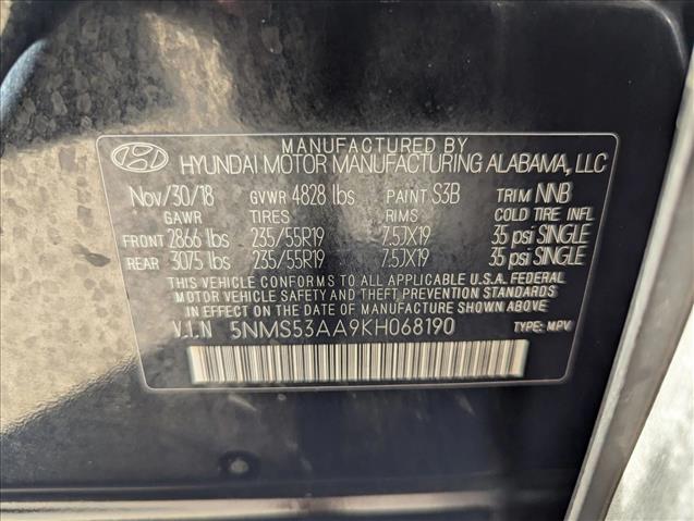 Panoramic Roof,Leather Seats,Cargo Cover,Carpeted Floor Mats,Lane Keeping Assist,Keyless Start,Cargo Net,Rear Spoiler,Black/Black; Leather Seating Surface,Option Group 01,Twilight Black<br><br>This vehicle includes a Money-Back Guarantee* and passed our precise inspection process. Best of all the price you see is the price you pay. No haggling. No back and forth. No pressure. And this price is so good it is guaranteed. *Money-Back Guarantee is valid for 5 days or 250 miles, whichever comes first. Subject to certain terms and conditions. See store for details. Some restrictions apply. This outstanding example of a 2019 Hyundai Santa Fe Limited is offered by Autonation Toyota Corpus Christi. Perfect for the on-the-go family, this Hyundai Santa Fe Limited is an SUV everyone will love. With exceptional mileage, options and power, you'll insist on driving it on all your outings. You can finally stop searching... You've found the one you've been looking for. There are many vehicles on the market but if you are looking for a vehicle that will perform as good as it looks then this Hyundai Santa Fe Limited is the one! You could keep looking, but why? You've found the perfect vehicle right here.
