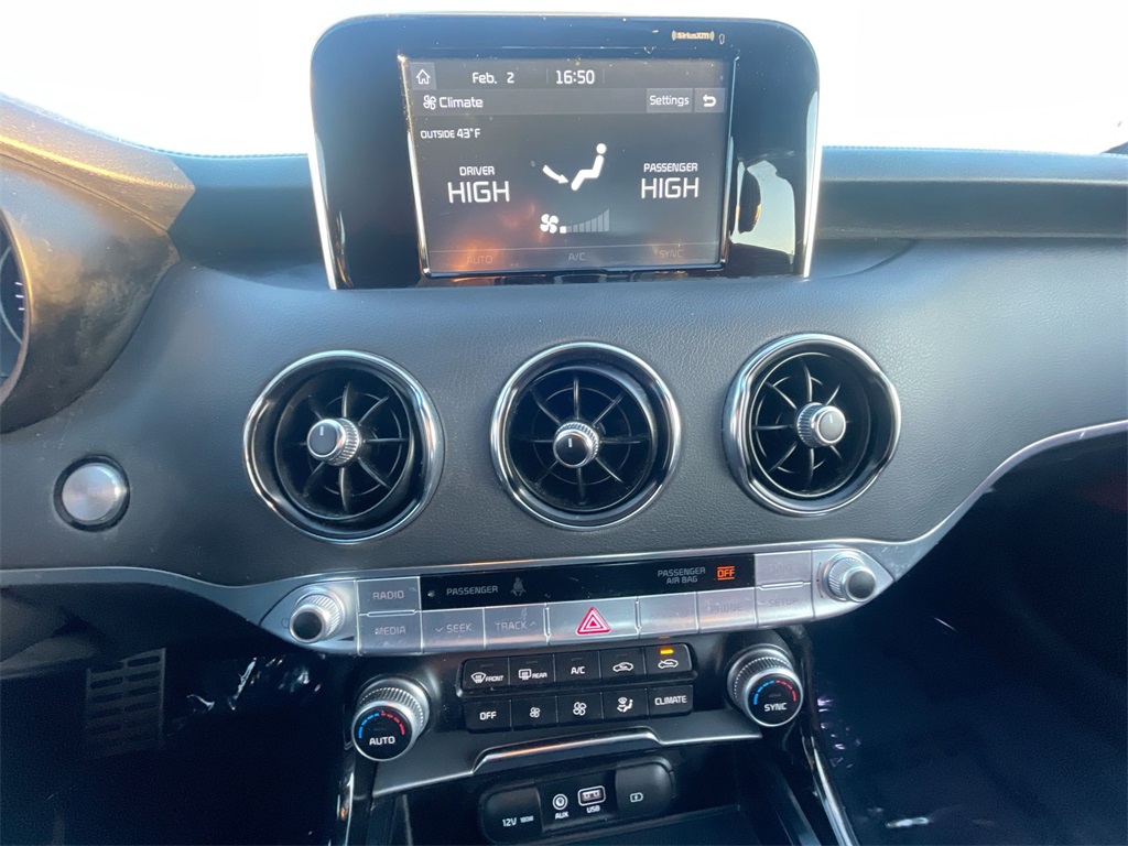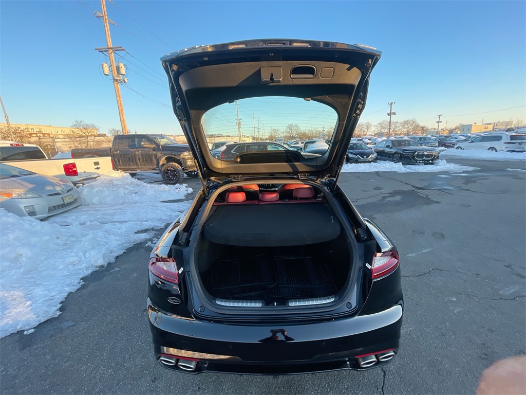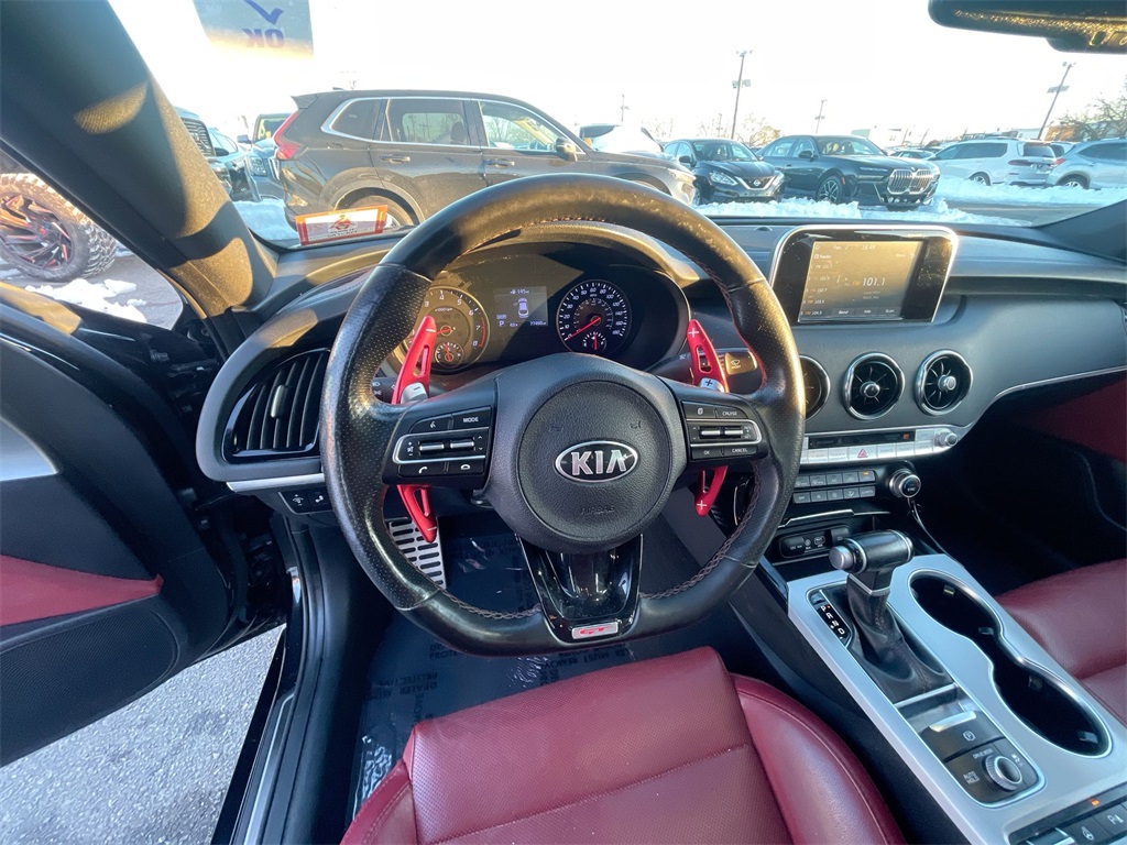 This 2019 Kia Stinger has passed the Lynnes comprehensive 172 point inspection with flying colors. Our ASE certified technicians have inspected this Stinger and have brought it up to date with all its regularly scheduled maintenance. Buy this Stinger and have confidence that it will bring you years of reliable Transportation.Drive Home Happy Promise, New Beginning Automotive Financing - Our goal 100% credit approval, 4-Wheel Disc Brakes, 9 Speakers, ABS brakes, Air Conditioning, Alloy wheels, AM/FM radio: SiriusXM, Anti-whiplash front head restraints, Apple CarPlay & Android Auto, Auto-dimming Rear-View mirror, Automatic temperature control, Brake assist, Bumpers: body-color, Delay-off headlights, Driver door bin, Driver vanity mirror, Dual front impact airbags, Dual front side impact airbags, Electronic Stability Control, Emergency communication system: UVO eServices, Exterior Parking Camera Rear, Four wheel independent suspension, Front anti-roll bar, Front Bucket Seats, Front Center Armrest, Front dual zone A/C, Front reading lights, Fully automatic headlights, Heated door mirrors, Heated Front Bucket Seats, Heated front seats, Heated steering wheel, Illuminated entry, Knee airbag, Leather Seat Trim, Low tire pressure warning, Occupant sensing airbag, Outside temperature display, Overhead airbag, Overhead console, Panic alarm, Passenger door bin, Passenger vanity mirror, Power door mirrors, Power driver seat, Power passenger seat, Power steering, Power windows, Radio: AM/FM/MP3/HD/SiriusXM Audio System, Rear air conditioning, Rear anti-roll bar, Rear reading lights, Rear seat center armrest, Rear window defroster, Red Interior Color Package, Red Leather Seat Trim, Remote keyless entry, Security system, Speed control, Speed-sensing steering, Speed-Sensitive Wipers, Split folding rear seat, Spoiler, Sport steering wheel, Steering wheel mounted audio controls, Tachometer, Telescoping steering wheel, Tilt steering wheel, Traction control, Trip computer, Turn signal indicator mirrors, Variably intermittent wipers, Wheels: 19 x 8J Front & 19 x 8.5J Rear Alloy, Passed inspection, Recent Oil Change, Detailed. Priced below KBB Fair Purchase Price! Odometer is 2518 miles below market average!2019 Kia Stinger GT Aurora Black 8-Speed Automatic AWD 3.3L V6Dont let price be your only driving motivation to buy your next car. Condition, Service History, Dealer Reputation & Customer Service are just as important. In order to reserve this price, financing with Lynnes may apply. Dealer fees may also apply. Call a Lynnes representative for more information 877-535-6277.
