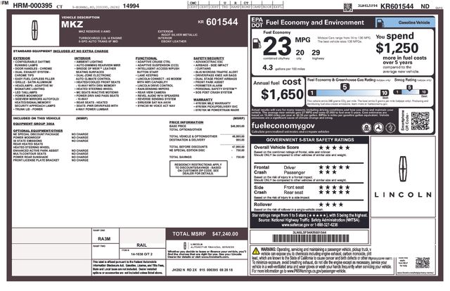 Recent Arrival!20/29 City/Highway MPGCARFAX One-Owner.2019 Lincoln MKZ Reserve Ingot SilverAWD 6-Speed Automatic with Select-Shift 2.0L I4**NEW BRAKES**NEW TIRES**Step into refined luxury with this 2019 Lincoln MKZ Reserve, finished in elegant Ingot Silver. Powered by a 2.0L I4 engine paired with a 6-Speed Automatic with Select-Shift and All-Wheel Drive, this sedan delivers smooth performance and confident handling in all conditions. Premium Features & Technology Adaptive Suspension for a balanced, comfortable ride SYNC 3 infotainment with AppLink, Apple CarPlay & Android Auto Revel Audio System with Single CD & HD Radio for immersive sound Navigation System with intuitive controls Exterior Parking Camera Rear for added confidence Garage Door Transmitter for convenience Comfort & Luxury Heated & Ventilated Front Seats plus Heated Rear Seats Heated Steering Wheel for cold mornings Front Dual-Zone A/C for personalized climate control Perforated Leather-Appointed Seating with Memory Seat Function Power Driver & Passenger Seats for tailored comfort Power Moonroof for an open-air driving experience Illuminated Entry for a refined welcome Safety & Driver Assistance Auto High-Beam Headlights & Delay-Off Headlights Auto-Dimming Door Mirrors & Heated Door Mirrors High-Intensity Discharge Headlights for superior visibility Rain-Sensing & Speed-Sensitive Wipers Security System for peace of mind Exterior & Performance 19 Satin Finished 7-Spoke Machined Aluminum Wheels Equipment Group 300A with premium enhancements Speed Control & Steering Wheel-Mounted Audio ControlsThis Lincoln MKZ Reserve blends sophisticated design, advanced technology, and premium comfort, making it the perfect choice for drivers seeking elegance with performance.Adaptive suspension, AM/FM radio: SiriusXM, AppLink/Apple CarPlay and Android Auto, Auto High-beam Headlights, Auto-dimming door mirrors, Delay-off headlights, Equipment Group 300A, Exterior Parking Camera Rear, Front dual zone A/C, Garage door transmitter, Heated door mirrors, Heated front seats, Heated rear seats, Heated steering wheel, High-Intensity Discharge Headlights, Illuminated entry, Memory seat, Navigation System, Power door mirrors, Power driver seat, Power moonroof, Power passenger seat, Radio: Revel Audio System w/Single CD & HD Radio, Rain sensing wipers, Security system, Speed control, Speed-Sensitive Wipers, Steering wheel mounted audio controls, SYNC 3, Ventilated front seats, Wheels: 19 Satin Finished 7-Spoke Machined Alum.Please Ready Carefully. We use various computer software sources to decode the vehicle identification number of our displayed vehicles. This software helps us list the equipment of the vehicles we have online for sale. Although usually pretty accurate, there are sometimes errors. So please look over the equipment very carefully when you inspect our vehicles. We care very much about our customers and don't want to have any misunderstandings! Also our vehicles are priced using equally sophisticated software and rely on many factors to help us place our vehicles with our best price first. Specific equipment can be a factor, but not the only factor of pricing.*NOT ALL VEHICLES AVAILABLE FOR IMMEDIATE DELIVERY.