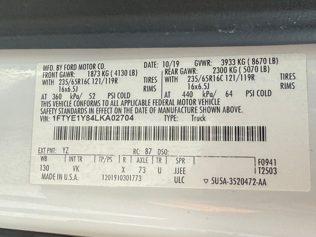 2020 Ford Transit-150 Oxford White ++FORD CERTIFIED++, **CLEAN VEHICLE HISTORY REPORT**, **REAR VIEW CAMERA**, **REVERSE SENSING SYSTEM**, **CRUISE CONTROL**, **SYNC 3 W/ 8 TOUCHSCREEN**, Order Code 101A. Ford Blue Certified Details: * Roadside Assistance * Vehicle History * Transferable Warranty * Warranty Deductible: $100 * and 11,000 FordPass Rewards Points to use toward first maintenance visit * Limited Warranty: 3 Month/4,000 Mile (whichever comes first) after new car warranty expires or from certified purchase date * 139 Point InspectionWhy Griffin Ford? We are family-owned and locally run since 1962. Southeast Wisconsins leading Ford dealership with an unbeatable selection of New, Used, Certified Pre-Owned and Budget vehicles in stock. When you purchase a car or truck from Griffin Ford, you are more than just a customer, you become a part of our family. We have the right vehicle to fit your lifestyle, needs and budget. Our Finance team, with over 75 years of combined experience and over 40 lending sources, will deliver you the best terms and warranty options available. And our trusted Service Department will support you through the life of your vehicle ownership, ensuring your safety and peace of mind. Visit us today. We look forward to welcoming you into the Griffin Ford Family!