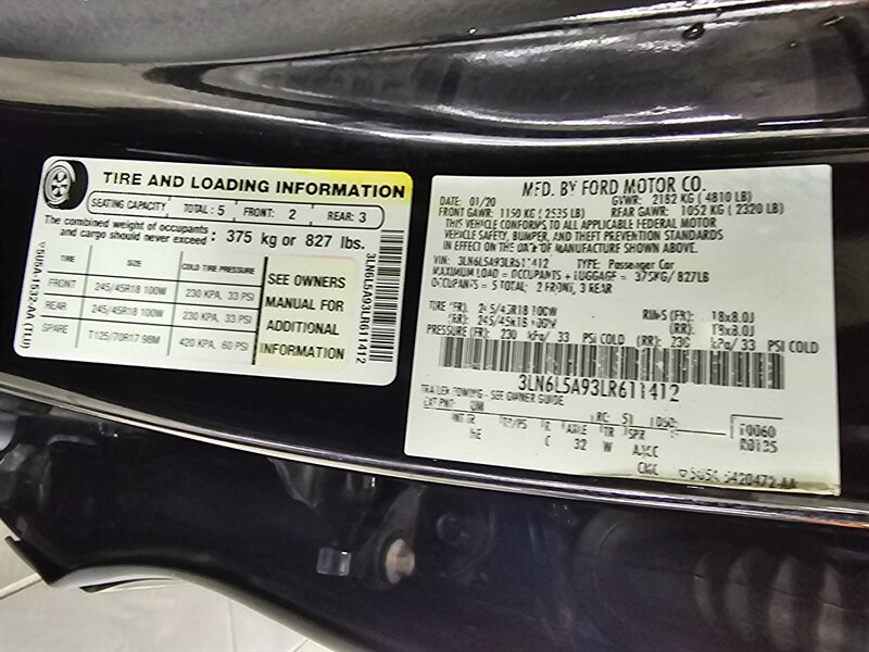 2020 LINCOLN MKZ /Zepir -- 4 DOOR SEDAN -- ECOBOOST TURBO-CHARGED /2.0L -- CLEAN CARFAX -- ONE OWNER -- BACK UP CAMERA -- LEATHER HEATED AND MEMORY SEATS --POWER WINDOWS AND SEATS -- POWER LOCKS -- KEYLESS ENTRY -- POWER MIRRORS -- CRUISE CONTROL -- SIRIUS SATELITE RADIO -- BLUETOOTH -- DRIVES GREAT --- WE FINANCE --- MOST OF OUR VEHICLES ARE HIGH QUALITY, HAND PICKED, ONE OWNER IN A NEW CONDITION WITH A CLEAN CAR FAX. MOST OF OUR VEHICLES ARE COVERED WITH THE MANUFACTURER WARRANTY OR A 3 MONTHS/4500 MILE WARRANTY. FINANCING IS AVAILABLE AND TRADES ARE ALWAYS WELCOMED. FOR SIMILAR GREAT DEALS PLEASE CONTACT US. -- INSTALLED FEATURES: Air filtration, Front air conditioning: automatic climate control, Front air conditioning zones: dual, Rear vents: second row, Airbag deactivation: occupant sensing passenger, Front airbags: dual, Knee airbags: dual front, Side airbags: front, Side curtain airbags: front / rear, Antenna type: diversity / element, Auxiliary audio input: Bluetooth / USB / iPod/iPhone, Premium brand, Radio: AM/FM / touch screen display / voice operated, Radio data system, Satellite radio: SiriusXM, Speed sensitive volume control, Total speakers: 11, ABS: 4-wheel, Braking assist, Electronic brakeforce distribution, Electronic parking brake: auto off, Emergency braking preparation, Front brake diameter: 12.4, Front brake type: ventilated disc, Front brake width: 1.1, Power brakes, Rear brake diameter: 12.4, Rear brake type: disc, Rear brake width: .43, Armrests: rear center folding with pass-thru / rear center with cupholders, Cargo area floor mat: carpet, Door sill trim: illuminated scuff plate, Floor mat material: carpet, Floor material: carpet, Floor mats: front / rear, Interior accents: aluminum / metallic-tone, Steering wheel trim: leather, Adaptive cruise control, Adaptive stop and go cruise control: semi-automatic, Assist handle: front / rear, Capless fuel filler system, Cargo area light, Center console: front console with armrest and storage, Cupholders: front / rear, Easy entry: power driver seat, Keypad entry, Memorized settings: 2 driver / driver seat / side mirrors, Multi-function remote: panic alarm / proximity entry system / trunk release, One-touch windows: 4, Overhead console: front, Power outlet(s): 12V front / 12V rear, Power steering: variable/speed-proportional, Power windows: lockout button, Push-button start, Reading lights: front / rear, Rearview mirror: auto-dimming, Remote engine start, Steering wheel: tilt and telescopic, Steering wheel mounted controls: audio / cruise control / multi-function / paddle shifter / phone / voice control, Storage: accessory hook / door pockets / front seatback / grocery bag holder / in dash / sunglasses holder, Universal remote transmitter: garage door opener, Vanity mirrors: dual illuminating, Axle ratio: 3.21, Drive mode selector, Battery: maintenance-free, Battery saver, Door handle color: chrome, Exhaust: dual tip, Exhaust tip color: chrome, Front bumper color: body-color, Grille color: aluminum, Mirror color: body-color, Rear bumper color: body-color, Rocker panel color: body-color, Window trim: chrome, Connected in-car apps: Google POIs / Google search / app marketplace integration, Infotainment: SYNC, Infotainment screen size: 8 in., Smartphone integration: Android Auto / Apple CarPlay, Clock, Compass, Digital odometer, External temperature display, Fuel economy display: MPG / range, Gauge: tachometer, Instrument cluster screen size: 10 in., Multi-function display, Trip odometer, Warnings and reminders: low battery / low fuel level / low oil level / maintenance due, Daytime running lights: LED, Exterior entry lights: approach lamps / puddle lamps, Headlights: HID/Xenon / auto delay off / auto high beam dimmer / auto on/off / cornering / wiper activated, Taillights: LED, Side mirror adjustments: manual folding / power, Side mirrors: driver side auto-dimming / heated / integrated turn signals, Automatic emergency braking: front / front pedestrian, Blind spot safety: sensor/alert, Camera system: rearview, Child safety door locks, Child seat anchors: LATCH system, Cross traffic alert: rear, Crumple zones: front / rear, Driver attention alert system, Emergency interior trunk release, Impact sensor: post-collision safety system, Lane deviation sensors, Lane keeping assist, Parking sensors: rear, Pre-collision warning system: audible warning / pedestrian detection / visual warning, Programmable safety key, Rearview monitor: in dash, Emergency locking retractors: front / rear, Front seatbelts: 3-point, Rear seatbelts: 3-point, Seatbelt force limiters: front, Seatbelt pretensioners: front, Seatbelt warning sensor: front, Driver seat: heated, Driver seat power adjustments: height / lumbar / reclining / 10, Front headrests: adjustable / 2, Front seat type: bucket, Passenger seat: heated, Passenger seat power adjustments: height / lumbar / reclining / 10, Rear headrests: adjustable / 3, Rear seat folding: split, Rear seat type: 60-40 split bench, Upholstery: leatherette, Anti-theft system: alarm / perimeter alarm / vehicle immobilizer, Power door locks: anti-lockout / auto-locking, Hill holder control, Stability control, Traction control, Steering ratio: 14.8, Turns lock-to-lock: 2.7, Active suspension, Driver adjustable suspension: ride control, Front shock type: gas, Front spring type: coil, Front stabilizer bar, Front struts: MacPherson, Front suspension classification: independent, Front suspension type: lower control arms, Rear shock type: gas, Rear spring type: coil, Rear stabilizer bar, Rear suspension classification: independent, Rear suspension type: multi-link, Suspension control: electronic, Electronic messaging assistance: with read function, Phone: voice operated, Smart device app compatibility: Lincoln Way, Smart device app function: engine start / horn/light operation / lock operation / maintenance scheduling / maintenance status / vehicle location, Wi-Fi: hotspot, Wireless data link: Bluetooth, Spare tire mount lo