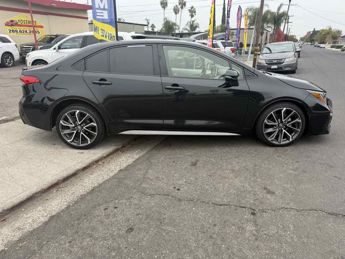 Buy our 2020 Toyota Corolla SE Sedan in Black Sand Pearl, and take a turn at better driving! Powered by a 2.0 Liter 4 Cylinder that offers 169hp connected to a CVT for confident acceleration. This Front Wheel Drive sedan also rewards you with agile handling and scores nearly 40mpg on the highway. A good-looking compact, our Corolla shows off LED lighting, aggressive dark gray rocker panels, a matching spoiler, dual chrome-tipped exhaust, and alloy wheels. Stylish and comfortable, our SE cabin helps meet your needs with premium front sport seats, a leather-wrapped steering wheel, automatic climate control, keyless access/ignition, and commanding connectivity with an intelligent infotainment system. The setup is intuitive and easy to use with an 8-inch touchscreen, connected navigation, Android Auto, Apple CarPlay, WiFi compatibility, voice recognition, and a six-speaker audio system. Toyota provides incredible safety features for your peace of mind, including a rearview camera, adaptive cruise control, lane-departure alert, automatic braking, tire-pressure monitoring, and more. Our Corolla SE helps you go the distance with athletic good looks and rewarding fuel economy! Save this Page and Call for Availability. We Know You Will Enjoy Your Yosemite Motors Test Drive Towards Ownership!