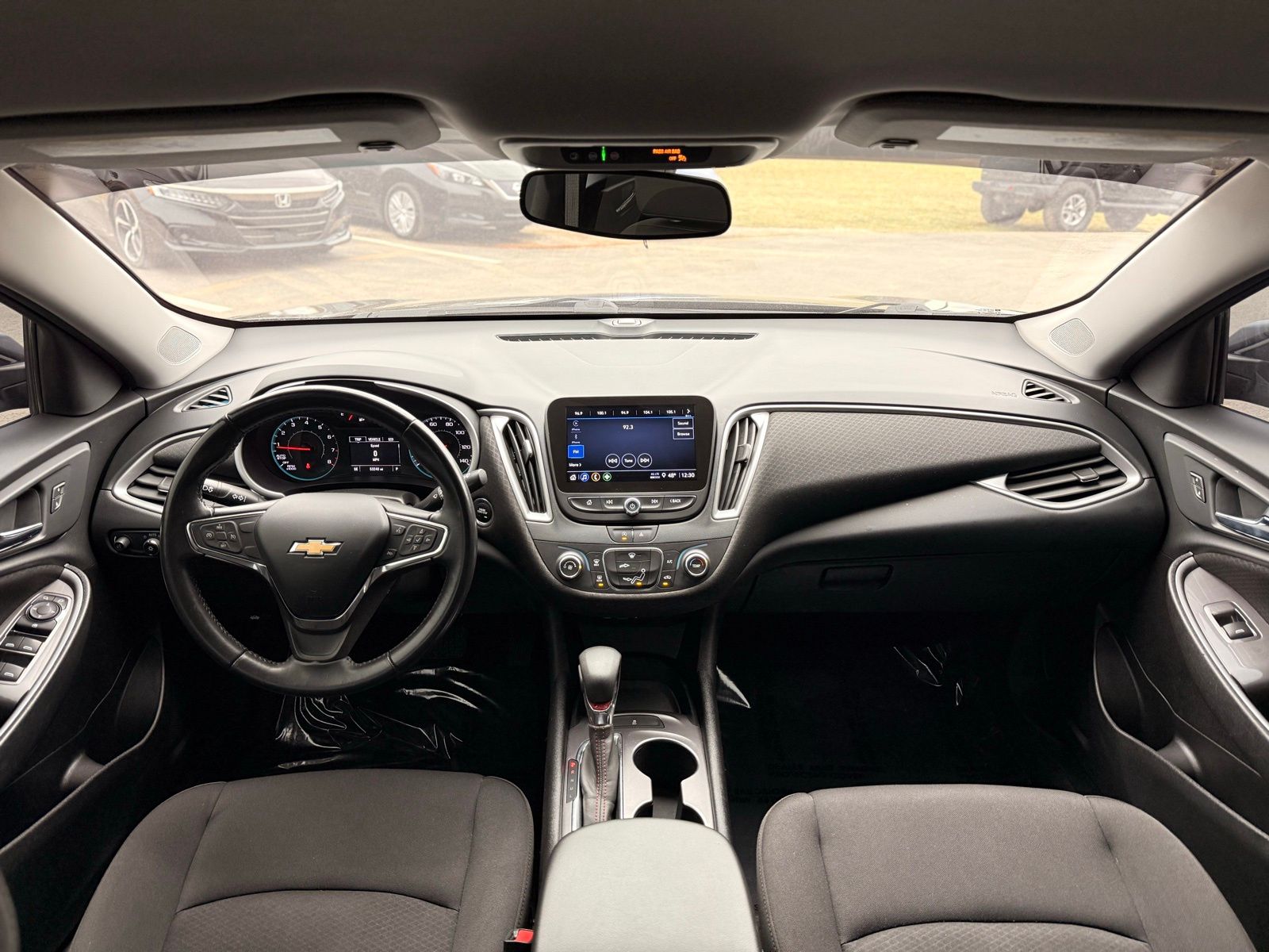 Mosaic Black Metallic 2021 Chevrolet Malibu RS FWD CVT 1.5L DOHC Jet Black Cloth, Preferred Equipment Group 1SP.Preferred Equipment Group 1SP, Jet Black Cloth, 18 Aluminum Wheels, 4-Wheel Disc Brakes, 6 Speakers, 6-Speaker Audio System Feature, 6-Way Manual Front Passenger Seat Adjuster, 8-Way Power Driver Seat Adjuster, ABS brakes, Air Conditioning, Alloy wheels, AM/FM radio, Brake assist, Bumpers: body-color, Compass, Delay-off headlights, Driver door bin, Driver vanity mirror, Dual front impact airbags, Dual front side impact airbags, Electronic Stability Control, Emergency communication system: OnStar and Chevrolet connected services capable, Exterior Parking Camera Rear, Four wheel independent suspension, Front anti-roll bar, Front Bucket Seats, Front Center Armrest, Front reading lights, Fully automatic headlights, Illuminated entry, Knee airbag, Low tire pressure warning, Occupant sensing airbag, Outside temperature display, Overhead airbag, Overhead console, Panic alarm, Passenger door bin, Passenger vanity mirror, Power door mirrors, Power Driver Lumbar Control Seat Adjuster, Power driver seat, Power steering, Power windows, Premium audio system: Chevrolet Infotainment 3, Premium Cloth Seat Trim, Radio data system, Radio: Chevrolet Infotainment 3 System, Rear anti-roll bar, Rear side impact airbag, Rear window defroster, Remote keyless entry, Security system, Speed control, Split folding rear seat, Spoiler, Steering wheel mounted audio controls, Tachometer, Telescoping steering wheel, Tilt steering wheel, Traction control, Trip computer, Variably intermittent wipers, Voltmeter, Wheel Locks, Wireless Apple CarPlay/Android Auto, and Wireless Apple CarPlay/Wireless Android Auto. Odometer is 14625 miles below market average! 29/36 City/Highway MPG