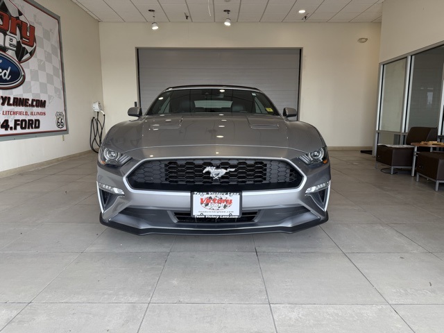 RWD 10-Speed Automatic Silver Metallic 2021 Ford Mustang EcoBoost Premium EcoBoost 2.3L I4 GTDi DOHC Turbocharged VCT20/28 City/Highway MPGServing the communities of Litchfield, Hillsboro, Staunton, Raymond, Mt. Olive, Greenville, Springfield, Farmersville, Carlinville, Gillespie, Benld, Edwardsville, Bethalto, Glen Carbon, Highland, Vandalia, Pana, Nokomis, Morrisonville, Girard, Virden, Jerseyville, Collinsville for almost 20 years. -- This vehicle includes the following features - 4-Wheel Disc Brakes, ABS brakes, Air Conditioning, Alloy wheels, AM/FM Stereo, Auto High-beam Headlights, Auto-dimming Rear-View mirror, Brake assist, Bumpers: body-color, Compass, Convertible roof lining, Delay-off headlights, Driver door bin, Driver vanity mirror, Dual front impact airbags, Dual front side impact airbags, Electronic Stability Control, Emergency communication system: 911 Assist, Exterior Parking Camera Rear, Four wheel independent suspension, Front anti-roll bar, Front Bucket Seats, Front Center Armrest, Front reading lights, Fully automatic headlights, Glass rear window, Illuminated entry, Knee airbag, Leather Shift Knob, Low tire pressure warning, Occupant sensing airbag, Outside temperature display, Overhead console, Panic alarm, Passenger door bin, Passenger vanity mirror, Power convertible roof, Power door mirrors, Power steering, Power windows, Radio data system, Rain sensing wipers, Rear anti-roll bar, Rear window defroster, Remote keyless entry, Security system, SiriusXM Radio, Speed control, Speed-sensing steering, Speed-Sensitive Wipers, Steering wheel mounted audio controls, SYNC 3 Communications & Entertainment System, Tachometer, Telescoping steering wheel, Tilt steering wheel, Traction control, Trip computer, Variably intermittent wipers, Voltmeter, and Wheels: 18 x 8 Machined-Face Aluminum.