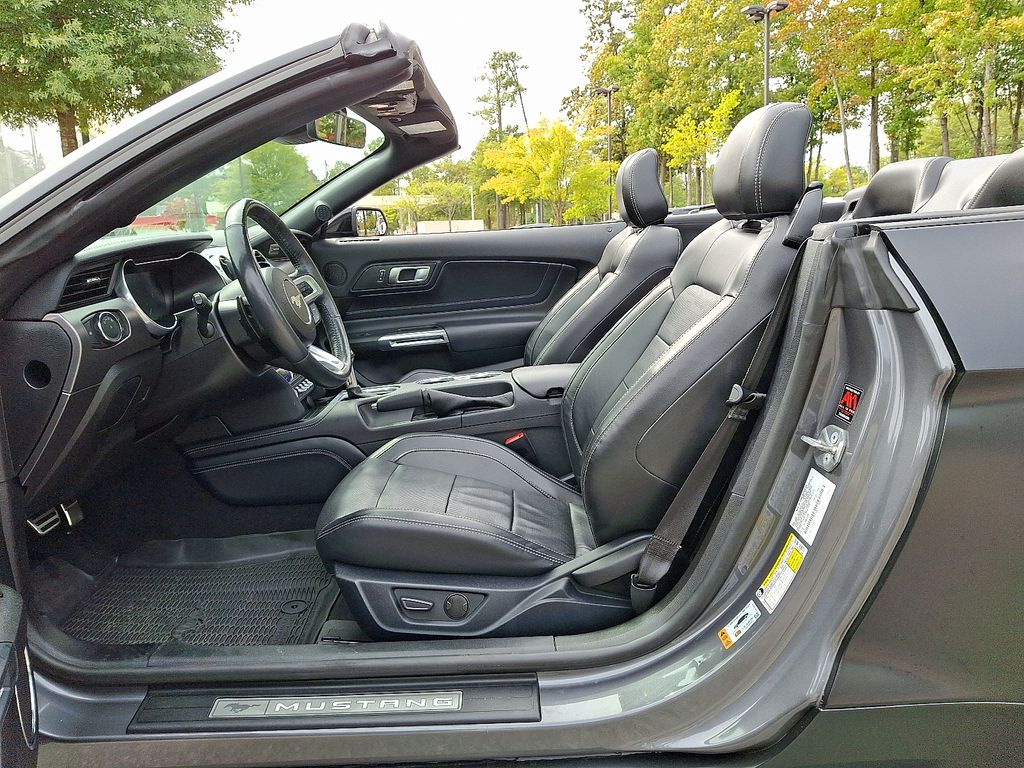 Well Equipped with Black Accent Package (Black GT, 5.0 & Pony Badges), Equipment Group 401A (Heated Steering Wheel, Integrated Turn Signals, and Memory Driver Seat, Mirrors & Ambient Lighting), Ford Safe & Smart Package (Adaptive Cruise Control), 4-Wheel Disc Brakes, 9 Speakers, ABS brakes, Active Valve Performance Exhaust, Air Conditioning, Alloy wheels, AM/FM radio: SiriusXM, AM/FM Stereo, Auto High-beam Headlights, Auto-dimming Rear-View mirror, Automatic temperature control, Brake assist, Bumpers: body-color, Climate Controlled Heated/Cooled Front Seats, Compass, Convertible roof lining, Delay-off headlights, Driver door bin, Driver vanity mirror, Dual front impact airbags, Dual front side impact airbags, Electronic Stability Control, Emergency communication system: 911 Assist, Exterior Parking Camera Rear, Four wheel independent suspension, Front anti-roll bar, Front Bucket Seats, Front Center Armrest, Front dual zone A/C, Front fog lights, Front reading lights, Fully automatic headlights, Garage door transmitter, Glass rear window, Heated door mirrors, Heated front seats, Illuminated entry, Knee airbag, Leather Shift Knob, Leather-Trimmed Bucket Seats, Low tire pressure warning, Occupant sensing airbag, Outside temperature display, Overhead console, Panic alarm, Passenger door bin, Passenger vanity mirror, Power convertible roof, Power door mirrors, Power driver seat, Power passenger seat, Power steering, Power windows, Radio data system, Rain sensing wipers, Rear anti-roll bar, Rear window defroster, Remote keyless entry, Security system, SiriusXM Radio, Speed control, Speed-sensing steering, Speed-Sensitive Wipers, Spoiler, Steering wheel mounted audio controls, SYNC 3 Communications & Entertainment System, Tachometer, Telescoping steering wheel, Tilt steering wheel, Traction control, Trip computer, Variably intermittent wipers, Ventilated front seats, Voltmeter, and Wheels: 18 x 8 Machined-Face Aluminum. AndroidTM Auto/Apple Carplay, Heated/Cooled Seats, Automatic Headlamps, Bluetooth, Keyless Entry, Keyless access w/ Push Button Start, Leather Seats, Touchscreen Controls.Priced below KBB Fair Purchase Price!2021 Ford Mustang Carbonized Gray Metallic GT PremiumOdometer is 5468 miles below market average! What makes us different? We specialize in hand selecting our pre-owned inventory and providing an amazing array of vehicles on our lot here in Apex, NC. We keep about 1000+ cars on the lot at any given time and find that being priced aggressively upfront allows us to save time, complete the deal process and keep the best inventory possible. The price you see is our very best price! All of our vehicles are priced below market value. We provide a hassle-free buying experience.