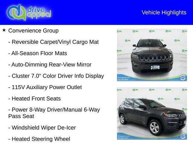 Clean CARFAX. 2021 Jeep Compass Granite Crystal Metallic Clearcoat Latitude 4WD 9-Speed 948TE Automatic 2.4L I4 **COMES WITH FREE 90 DAY/3,000 MILE ALLSTATE LIMITED WARRANTY**, 4WD, 115V Auxiliary Power Outlet, 4-Way Power Lumbar Adjust, All-Season Floor Mats, Auto-Dimming Rear-View Mirror, Cluster 7.0 Color Driver Info Display, Convenience Group, Heated Front Seats, Heated Steering Wheel, Power 8-Way Driver/Manual 6-Way Pass Seat, Remote Start System, Reversible Carpet/Vinyl Cargo Mat, Windshield Wiper De-Icer.**PERFECT CAR FAX** 22/30 City/Highway MPGGreat Customer Service!