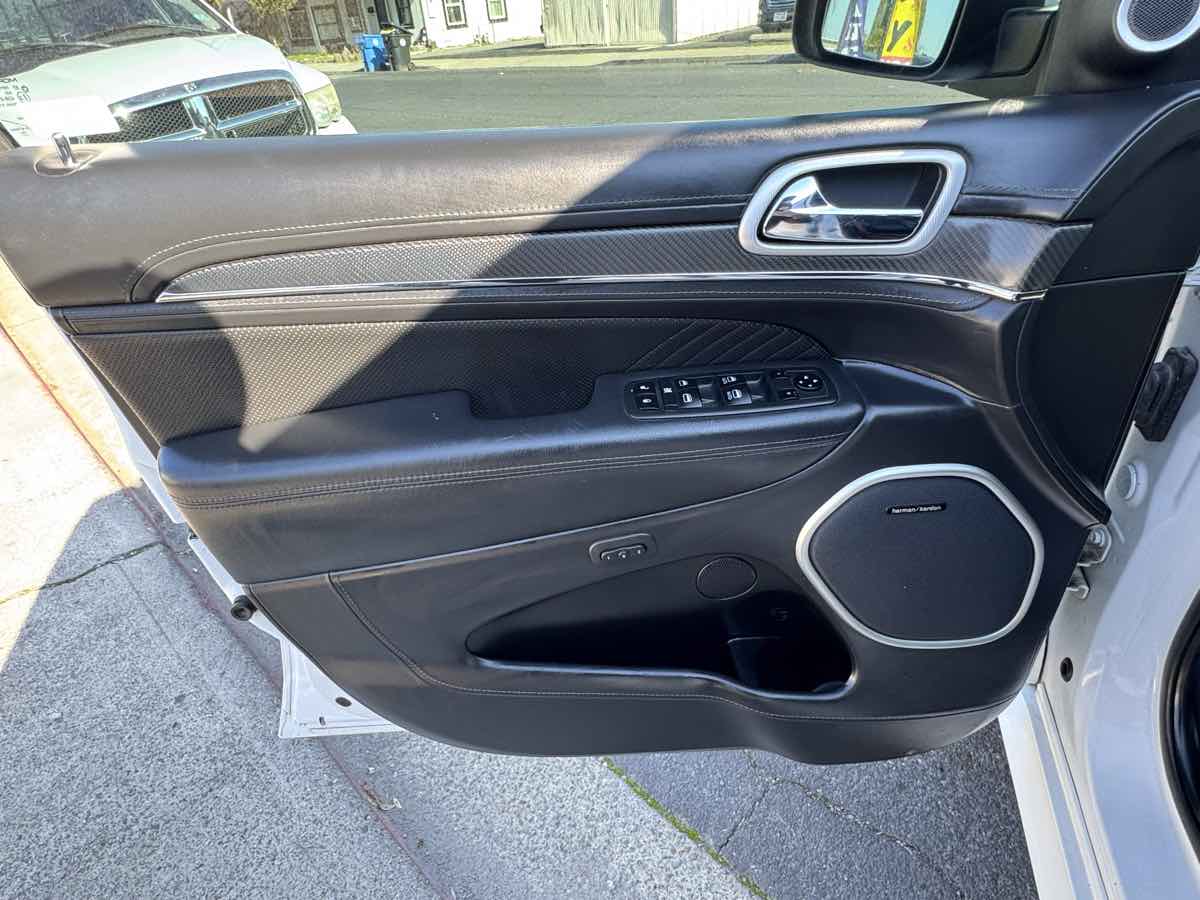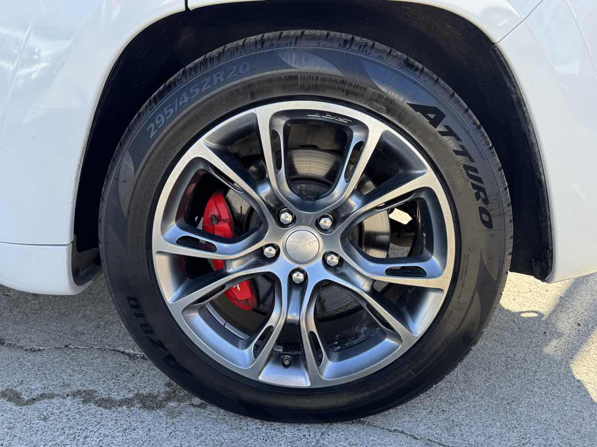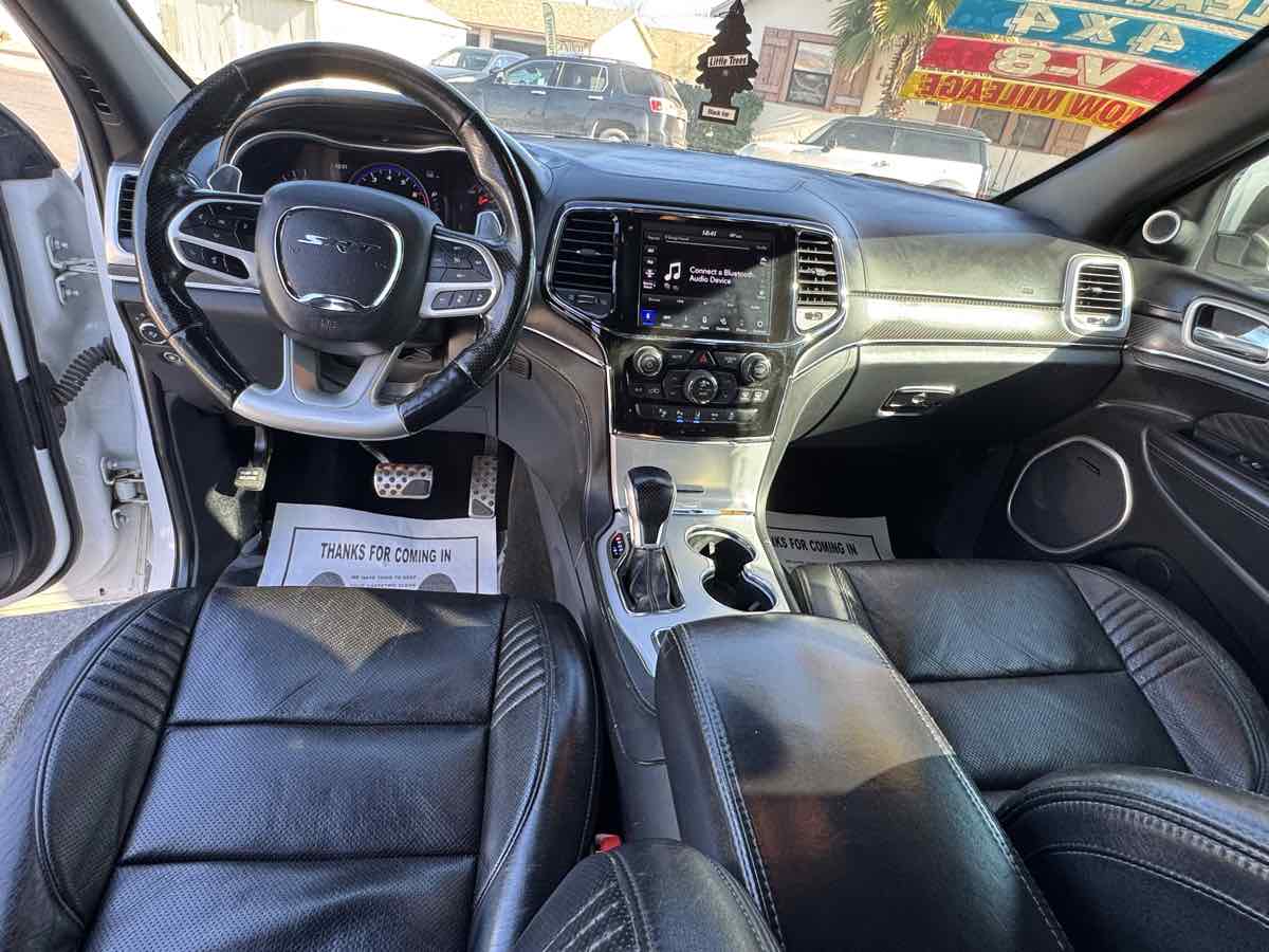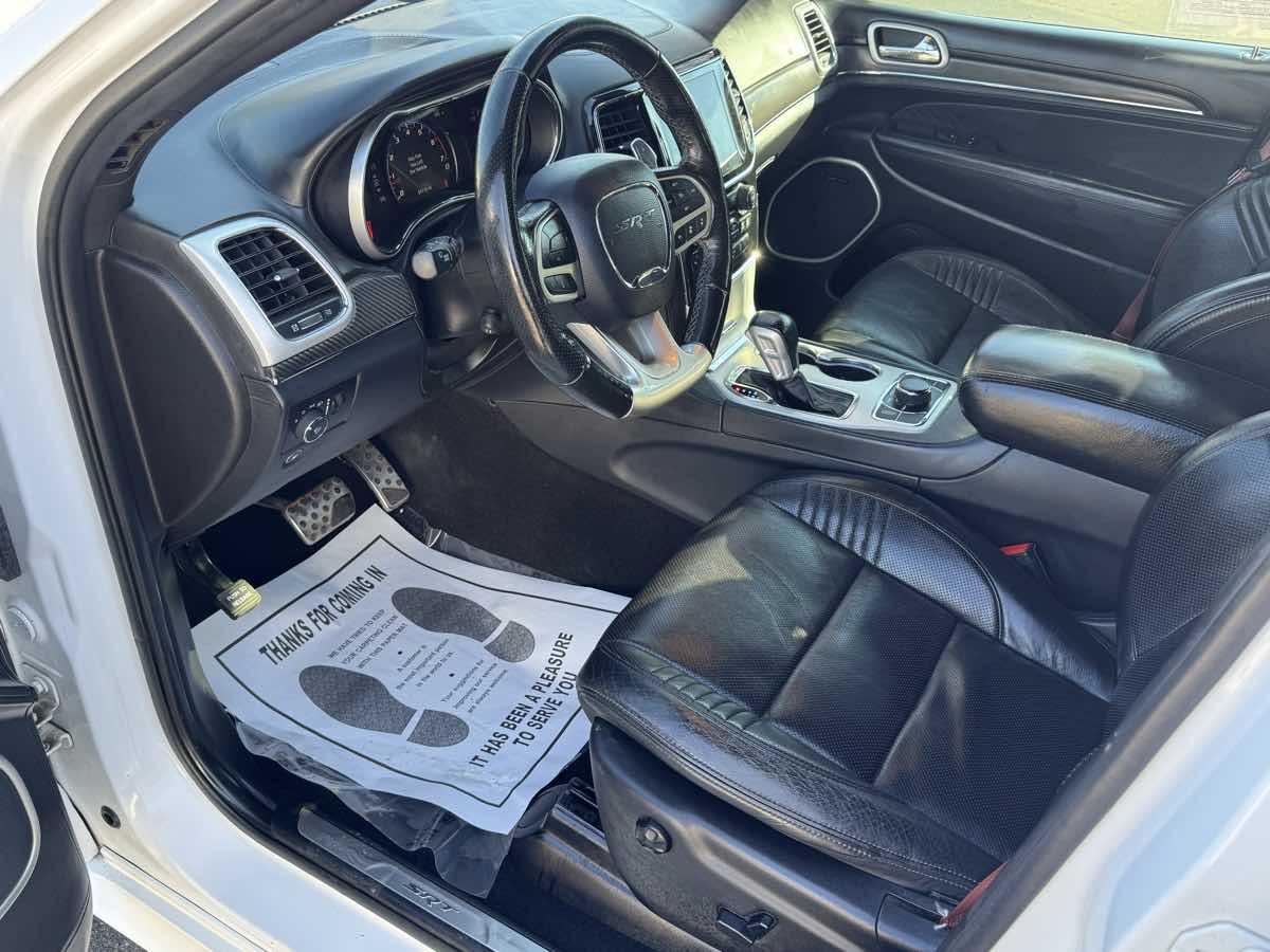 The 2021 Jeep Grand Cherokee SRT 4x4 is an embodiment of power and luxury, sporting an exterior in the stunning Bright White Clearcoat that effortlessly catches the eye. Its commanding presence is matched by its robust 6.4L 8-cylinder engine, ensuring performance enthusiasts and trail conquerors alike have all the power they desire right at their fingertips. An elevated driving experience is assured with the SRT 4x4 style, bringing together the perfect combination of Jeeps off-road heritage and supreme on-road comfort. Inside, the vehicle is adorned with a sophisticated Black interior that features the distinguished signature leather-wrapped interior package, providing both comfort and elegance during every drive. The cabin is designed to impress audiophiles with the high performance audio system, delivering crisp and powerful sound for a truly immersive experience. High performance brakes add an extra layer of safety and confidence, ensuring the vehicle can handle its power with precise control during both city drives and off-road adventures. Practicality isn't left behind with the inclusion of the Trailer Tow Group IV, allowing for robust towing capabilities whenever the need arises. For unexpected situations, a compact spare tire is included, underscoring the Grand Cherokee SRTs readiness for any journey. This vehicle isnt just about capability and luxury; it's about providing a seamless driving experience across diverse terrains. Combined with the Four Wheel Drive drivetrain, it offers unrivaled maneuverability and stability, solidifying its status as a superior choice for anyone looking to dominate the open road or the unbeaten path.
