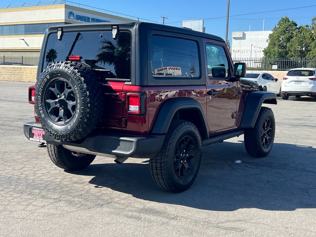2021 Jeep Wrangler Snazzberry Pearlcoat Willys 2D Sport Utility 22/24 City/Highway MPG 8-Speed Automatic**Price does not include additional accessories**Certification Program Details: Each Nissan Certified Pre-Owned vehicle comes with the innovation and excitement you expect from Nissan. To that, we add a rigorous certification process and the peace of mind of a 7-year / 100,000 limited powertrain warranty* and roadside assistance so that you can explore with confidence.Nissan of Mission Hills is your premier New and Used automotive dealership. Come experience a fun and seamless automotive buying experience. We serve all drivers including, but not limited to Mission Hills, Van Nuys, North Hills, Porter Ranch, Granada Hills, Glendale, Los Angeles, Simi Valley, Chatsworth and the entire San Fernando Valley. We always strive to deliver a first-class car-shopping experience. We make that possible by providing a stunning collection of vehicles, hassle-free financing and high-quality service and repairs. That's how we're able to serve as the one-stop shop for buying, financing and servicing your cars!
