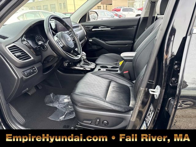 This vehicle has undergone the exact same 173-point rigorous inspection required for our CPO inventory, performed by our factory-trained technicians. You get a vehicle inspected to the highest standard without paying the certification fee.150 Point Inspection, Bluetooth, Back Up Camera, Navigation, Leather, Remainder of Factory Warranty, AWD, Lane Departure Warning, Lane Keep Assist, Power Doors / Power Locks, Blind Spot Monitor, Cross-Traffic Alert, Rear Coliision Mitigation, Remote Engine Start, Seltos SX, 4D Sport Utility, I4, 7-Speed Automatic, AWD, Cherry Black, Black Leather, 18 Alloy Wheels, 4-Wheel Disc Brakes, 4.643 Axle Ratio, 8 Speakers, ABS brakes, Air Conditioning, Alloy wheels, AM/FM radio: SiriusXM, Apple CarPlay & Android Auto, Auto-dimming Rear-View mirror, Automatic temperature control, Brake assist, Bumpers: body-color, Carpeted Floor Mats, Delay-off headlights, Driver door bin, Driver vanity mirror, Dual front impact airbags, Dual front side impact airbags, Electronic Stability Control, Emergency communication system, Exterior Parking Camera Rear, Four wheel independent suspension, Front anti-roll bar, Front Bucket Seats, Front Center Armrest, Front fog lights, Front reading lights, Fully automatic headlights, Heated door mirrors, Heated Front Bucket Seats, Heated front seats, Illuminated entry, Leather Seat Trim, Leather Shift Knob, Low tire pressure warning, Navigation System, Occupant sensing airbag, Outside temperature display, Overhead airbag, Overhead console, Panic alarm, Passenger door bin, Passenger vanity mirror, Power door mirrors, Power driver seat, Power steering, Power windows, Radio: AM/FM/MP3 Display Audio, Rear seat center armrest, Rear window defroster, Rear window wiper, Remote keyless entry, Security system, Smart Key w/ Push Button and Remote Start, Speed control, Speed-sensing steering, Split folding rear seat, Spoiler, Steering wheel mounted audio controls, Sunroof, SX Sunroof Package, Tachometer, Telescoping steering wheel, Tilt steering wheel, Traction control, Trip computer, Turn signal indicator mirrors, Variably intermittent wipers.Cherry Black 2021 Kia Seltos SX 4D Sport Utility AWD 7-Speed Automatic 25/30 City/Highway MPG I4Centrally located in Fall River, Empire Hyundai proudly serves the South Coast and East Bay communities. We are just a short drive from Somerset, Swansea, and Dartmouth, as well as New Bedford, Providence, Newport, Taunton, Raynham, Attleboro, Dighton, Rehoboth, Tiverton and Providence. Whether you are visiting from Freetown or Seekonk, premium service is right around the corner. Visit our showroom at 428 Pleasant Street, Fall River, MA, or explore our inventory online at EmpireHyundai.com Or call us at 508-689-5837.