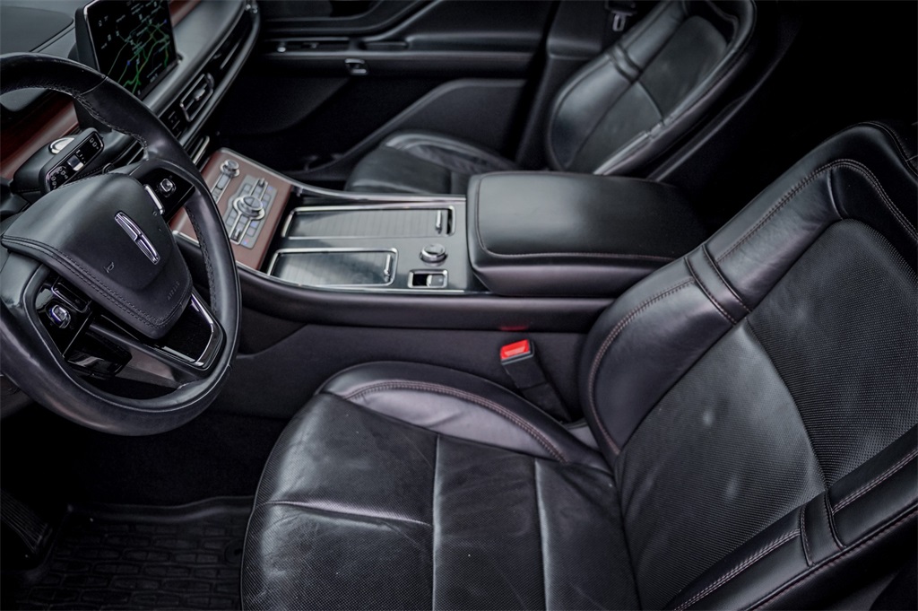 Gray 2021 Lincoln Aviator Grand TouringCARFAX One-Owner. This vehicle comes with the following features and options : Elements Package Plus (Auto Air Refresh, Auto Heated/Ventilated Driver & Passenger Seats, Heated Steering Wheel, Heated VisioBlade Wipers, and Heated/Ventilated 2nd Row Outboard Seats), Equipment Group 300A, Lincoln Co-Pilot360 Plus (Active Park Assist Plus, Adaptive Cruise Control w/Traffic Jam Assist, Evasive Steering Assist, and Reverse Brake Assist), 3.0L V6, 14 Speakers, 3.31 Axle Ratio, 3rd row seats: split-bench, 4-Wheel Disc Brakes, ABS brakes, Adaptive suspension, Air Conditioning, All-Weather Floor Liners w/Fr&Rr Carpet Floor Mats, Alloy wheels, AM/FM radio: SiriusXM, Audio memory, Auto High-beam Headlights, Auto-dimming door mirrors, Auto-dimming Rear-View mirror, Automatic temperature control, Brake assist, Bumpers: body-color, Compass, Delay-off headlights, Driver door bin, Driver vanity mirror, Dual front impact airbags, Dual front side impact airbags, Electronic Stability Control, Emergency communication system, Four wheel independent suspension, Front anti-roll bar, Front Bucket Seats, Front Center Armrest, Front dual zone A/C, Front fog lights, Front reading lights, Fully automatic headlights, Garage door transmitter, Heated door mirrors, Heated front seats, HVAC memory, Illuminated entry, Knee airbag, Low tire pressure warning, Memory seat, Navigation System, Occupant sensing airbag, Outside temperature display, Overhead airbag, Overhead console, Panic alarm, Passenger door bin, Passenger vanity mirror, Power door mirrors, Power driver seat, Power Liftgate, Power moonroof: Panoramic Vista Roof, Power passenger seat, Power steering, Power windows, Premium Lthr Heated/Ventilated Fnt Captain's Chairs, Radio data system, Radio: Revel AM/FM Audio System w/14 Speakers, Rain sensing wipers, Rear air conditioning, Rear anti-roll bar, Rear audio controls, Rear dual zone A/C, Rear reading lights, Rear window defroster, Rear window wiper, Remote keyless entry, Security system, SiriusXM, Speed control, Speed-Sensitive Wipers, Split folding rear seat, Spoiler, Steering wheel memory, Steering wheel mounted A/C controls, Steering wheel mounted audio controls, SYNC 3 Communication & Entertainment System, Tachometer, Telescoping steering wheel, Tilt steering wheel, Traction control, Trip computer, Turn signal indicator mirrors, Variably intermittent wipers, and Wheels: 21 Bright-Machined Aluminum. 3.0L V6.Contingent upon dealer acceptance of terms. Terms may vary. Certification and additional reconditioning fees may apply.