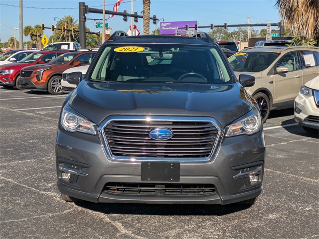 2021 Subaru Ascent Limited Magnetite Gray Metallic CARFAX One-Owner.20/26 City/Highway MPG Clean CARFAX.WHY BUY FROM CARite of COCOA:-No haggle Pricing-Easy Finance Options-100% Customer Satisfaction Guarantee-High Quality Vehicles-FREE Full Vehicle History Report-NON COMMISSION SALES STAFF (Fixed commissions put their best interests in line with yours, so they can focus on helping YOU find the car that best fits YOUR needs.)Equipped with Popular Package #2A (All-Weather Floor Liners, Auto-Dimming Exterior Mirror w/Approach Light, Cargo Tray, Map & Reading Lights LED Upgrade - 6 Bulb Kit, Rear Bumper Cover, and Splash Guards), Technology Package (Cargo Area Cover, Dual Glass Panoramic Power Moonroof, and Radio: Subaru STARLINK 8.0 Multimedia Nav System), 3rd Row Bench Rear Seatback Protector, 3rd row seats: bench, 4-Wheel Disc Brakes, 6 Speakers, ABS brakes, Air Conditioning, Alloy wheels, AM/FM radio: SiriusXM, Auto High-beam Headlights, Auto-dimming Rear-View mirror, Automatic temperature control, Axle Ratio: 4.44, Brake assist, Bumpers: body-color, CD player, Compass, Cup Holder Insert, Delay-off headlights, Driver door bin, Driver vanity mirror, Dual front impact airbags, Dual front side impact airbags, Electronic Stability Control, Emergency communication system: STARLINK Safety and Security (Subscription Required), Exterior Parking Camera Rear, Four wheel independent suspension, Front anti-roll bar, Front Bucket Seats, Front Center Armrest, Front dual zone A/C, Front fog lights, Front reading lights, Fully automatic headlights, Garage door transmitter: HomeLink, Heated door mirrors, Heated Front Bucket Seats, Heated front seats, Heated rear seats, Heated steering wheel, Illuminated entry, Knee airbag, Low tire pressure warning, Memory seat, Occupant sensing airbag, Outside temperature display, Overhead airbag, Overhead console, Panic alarm, Passenger door bin, Passenger vanity mirror, Perforated Leather-Trimmed Upholstery, Power door mirrors, Power driver seat, Power Liftgate, Power passenger seat, Power steering, Power windows, Radio data system, Radio: Subaru STARLINK 8.0 Multimedia Plus System, Rear air conditioning, Rear anti-roll bar, Rear reading lights, Rear window defroster, Rear window wiper, Reclining 3rd row seat, Remote keyless entry, Security system, Speed control, Split folding rear seat, Spoiler, STARLINK/Apple CarPlay/Android Auto, Steering wheel mounted audio controls, Tachometer, Telescoping steering wheel, Tilt steering wheel, Traction control, Trip computer, Turn signal indicator mirrors, Variably intermittent wipers, and Wheels: 20 x 7.5 J Dk Gray Alloy w/Machine Finish Visit Us at www.CARite.com then CARite of Cocoa to view more pictures. Call Us Today At 321-877-1000 To Schedule Your V.I.P Appointment!.
