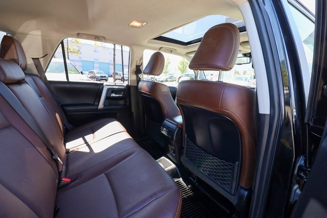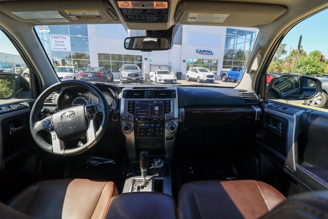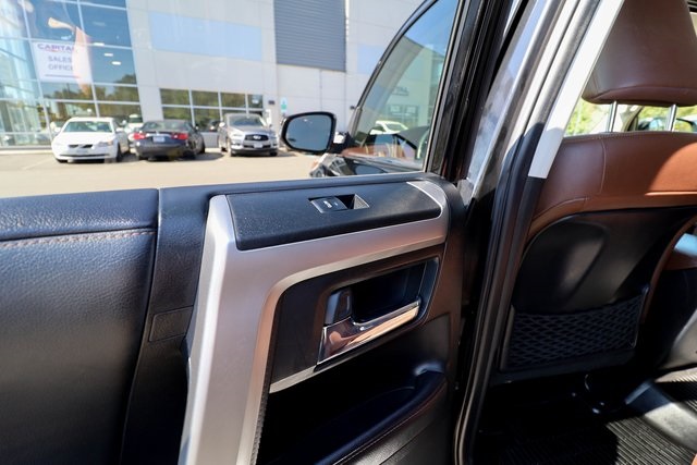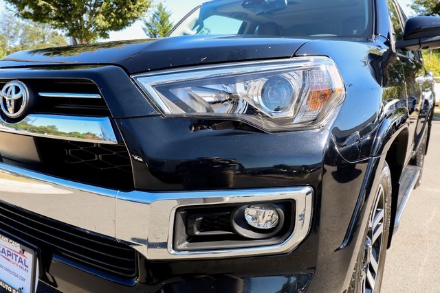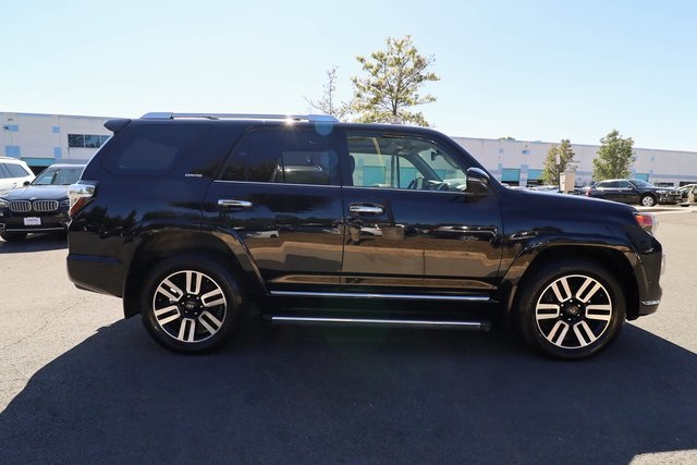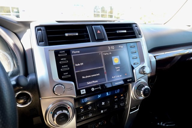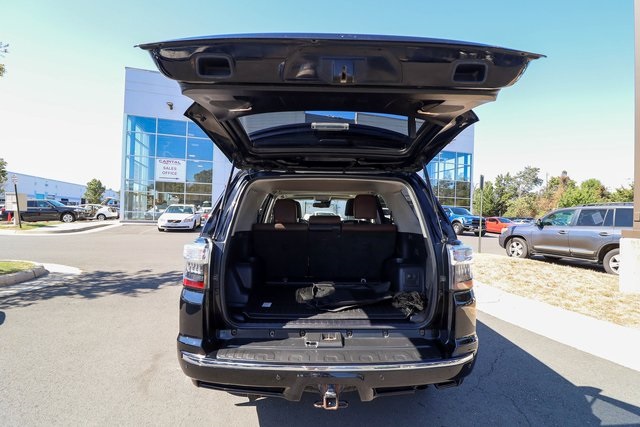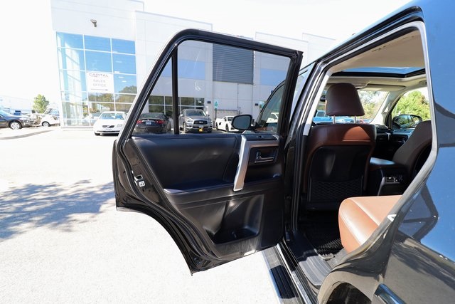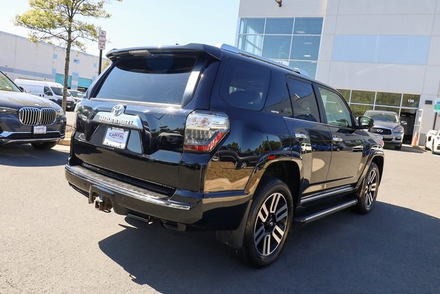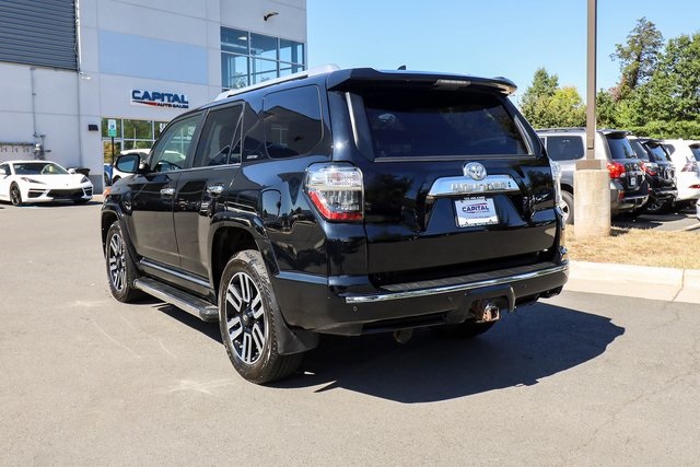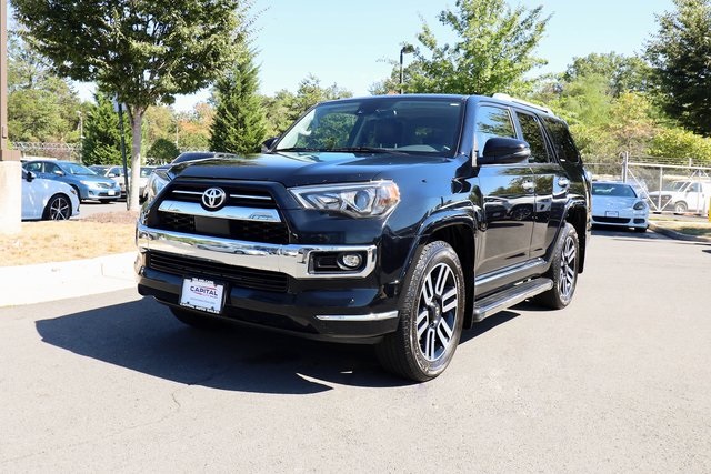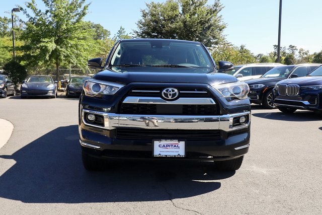 CARFAX One-Owner. 2021 Toyota 4Runner Limited Black 4WD 5-Speed Automatic with Overdrive 4.0L V6 SMPI DOHC4WD, Leather.THIS VEHICLE ALSO INCLUDES THE FOLLOWING OPTIONS AND FEATURES: 4WD, Leather, 15 Speakers, 20 x 7.5 Unique Dual 6-Spoke Alloy Wheels, 3.727 Axle Ratio, 4-Wheel Disc Brakes, ABS brakes, Air Conditioning, Alloy wheels, AM/FM radio: SiriusXM, Anti-whiplash front head restraints, Apple CarPlay/Android Auto, Auto High-beam Headlights, Auto-dimming Rear-View mirror, Automatic temperature control, Body Color Heated Mirrors, Brake assist, Bumpers: body-color, Compass, Delay-off headlights, Driver door bin, Driver vanity mirror, Dual front impact airbags, Dual front side impact airbags, Electronic Stability Control, Emergency communication system: Safety Connect with 1-year trial, Exterior Parking Camera Rear, Front anti-roll bar, Front Bucket Seats, Front Center Armrest, Front dual zone A/C, Front fog lights, Front reading lights, Front wheel independent suspension, Fully automatic headlights, Garage Door Opener, Garage door transmitter: HomeLink, Heated door mirrors, Heated front seats, Heated/Ventilated Front Bucket Seats, Illuminated entry, Knee airbag, Leather Seat Trim, Low tire pressure warning, Memory seat, Moonroof w/Tilt Up & Slide, Navigation System, Occupant sensing airbag, Outside temperature display, Overhead airbag, Overhead console, Panic alarm, Passenger door bin, Passenger vanity mirror, Power door mirrors, Power driver seat, Power moonroof, Power passenger seat, Power steering, Power windows, Radio: Premium JBL Audio, Rear anti-roll bar, Rear seat center armrest, Rear window defroster, Rear window wiper, Remote keyless entry, Right & Left Individual Air Conditioner, Roof rack: rails only, Security system, Speed control, Speed-sensing steering, Split folding rear seat, Spoiler, Steering wheel mounted audio controls, Tachometer, Telescoping steering wheel, Tilt steering wheel, Traction control, Trip computer, Turn signal indicator mirrors, Variably intermittent wipers, and Ventilated front seats.Recent Arrival!Why Buy from Capital Auto Sales: All of our vehicles are processed through a Multi-Point Inspection. Our vehicles come with a 3 Month/3000 Mile Limited Powertrain Warranty*(See dealer for details). We maintain excellent Google review's year after year. Free Virginia State Safety Inspections for life (Appointment Required). (2) Free Oil Changes with any vehicle purchase (surcharge applies to diesel vehicles & synthetic oil. Appointment Required). We will buy your vehicle, even if you don't buy ours. Prices are adjusted and modified frequently -weekly, daily, and sometimes hourly. Price adjustment is a function of website traffic, inquiries, and bidding on any one particular vehicle. For more information and up to date accuracy of pricing and terms of sale, please visit our website @ www.capautova.com. Contact our friendly sales team at 703-445-2277 for more information today! No Credit, Bad Credit, No problem! Tax ID, No Problem! We Finance EVERYONE! Guaranteed Credit Approval! Rates starting as low as 5.99% for well qualified buyers. GET PRE APPROVED TODAY! Apply Online now by clicking here WWW.CAPAUTOVA.COM/FINANCING. Affordable Extended Warranties are available. Ask your sales representative for more information. Call (703) 445-CARS (2277) to make an appointment or drop by to check out our fantastic selection and our beautiful Chantilly showroom located at: 25280 Pleasant Valley Rd. Suite 150 Chantilly, VA 20152 We are open 7 days a week for your convenience! Call, text, chat, email or stop by today! Monday - Saturday 9 AM to 8 PM and every Sunday 11 AM to 4 PM.
