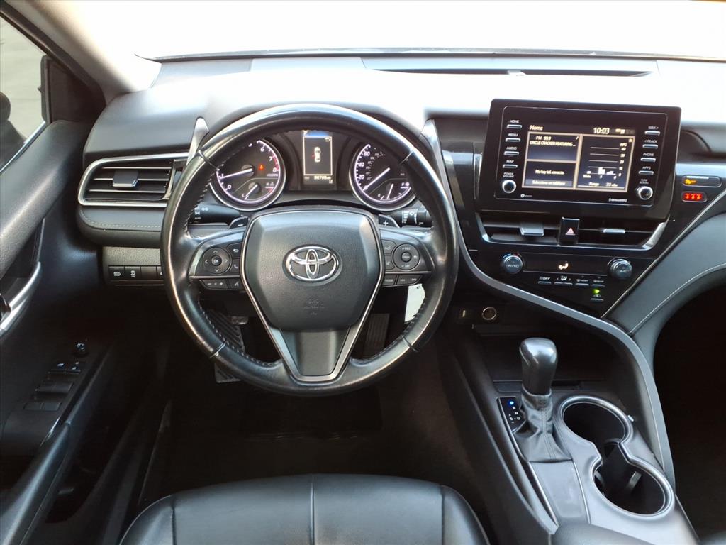 This 2021 Toyota Camry SE is a reliable and efficient motorcar, with a 2.5 liter I4 203hp 184 lb-ft engine and fuel injection. It has driven 80,704 miles and features a predawn gray mica (1h1) exterior. It has an impressive fuel economy of 28 mpg in the city and 39 mpg on the highway, making it an economical choice for your daily commutes. Inside, the black (20) interior provides a comfortable ride, while hill start assist provides added safety when driving up inclines. This vehicle has been awarded a 5 out of 5 star crash test rating, making it an excellent choice for anyone looking for a reliable motorcar.