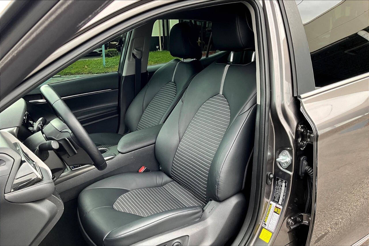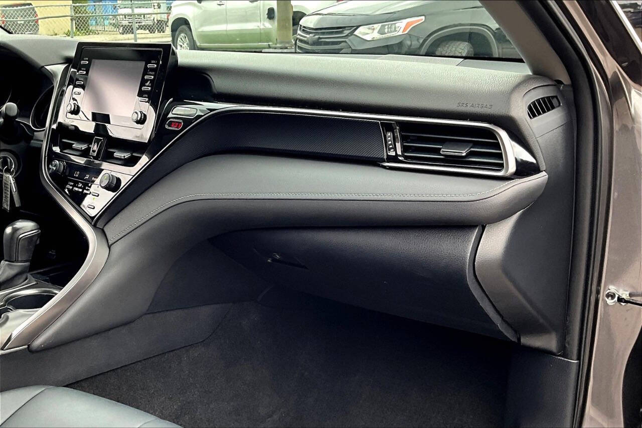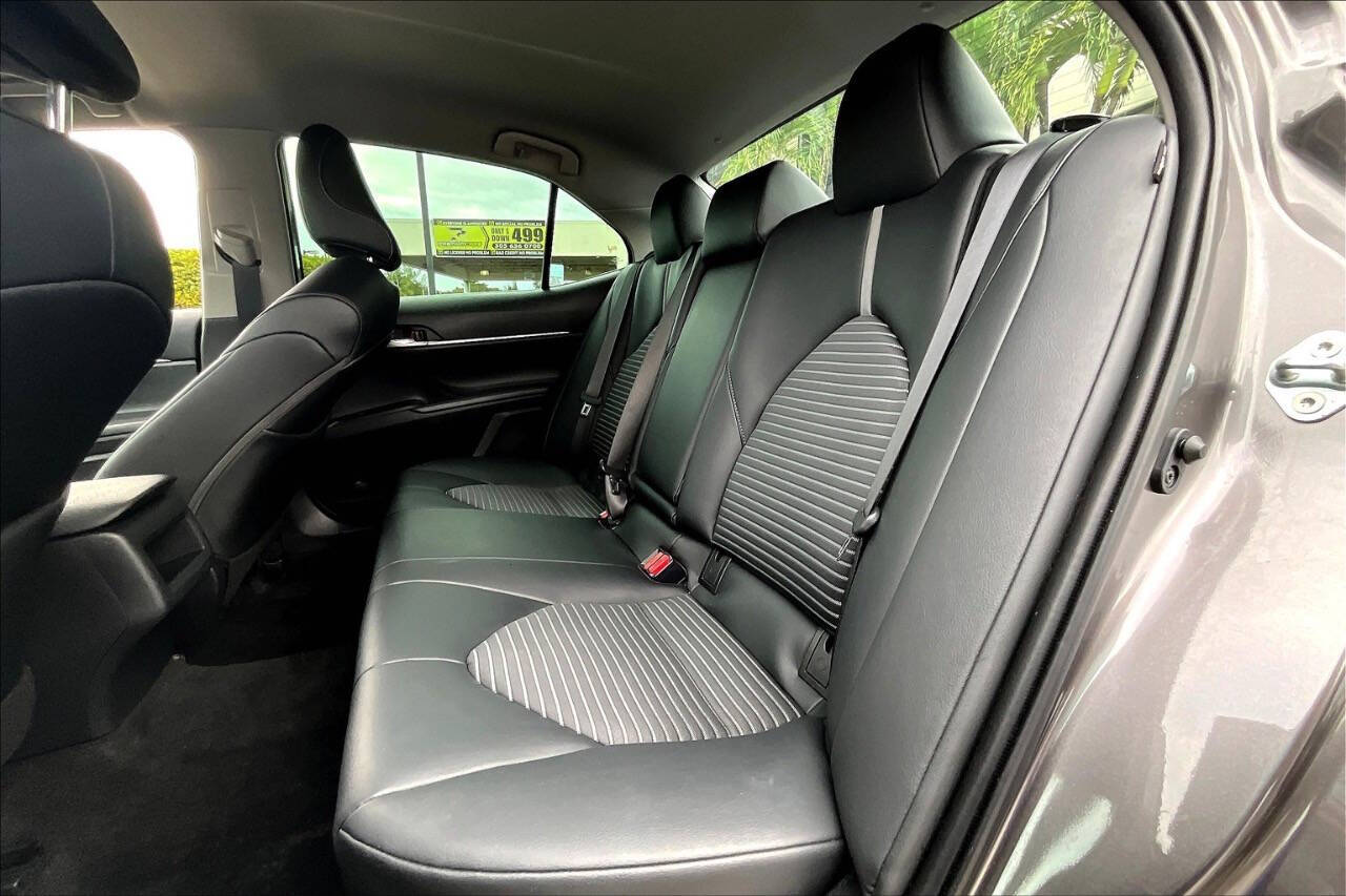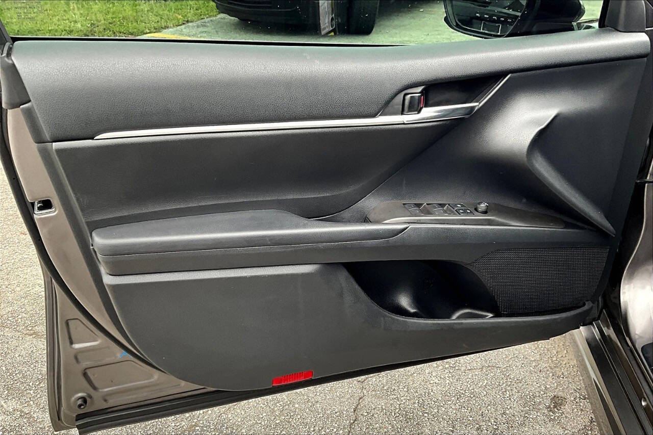 2021 Toyota Camry SE Sporty, Reliable, and Efficient The SE trim (Sport Edition) of the 2021 Camry adds an athletic touch to one of the most reliable sedans on the market. It's a midsize sedan that balances performance, style, and practicality, perfect for daily commutes or longer road trips. Performance & Efficiency Engine: 2.5L 4-cylinder DOHC 16-valve with Dual VVT-i Horsepower: 203 hp @ 6,600 rpm Torque: 184 lb-ft @ 5,000 rpm Transmission: 8-speed automatic with paddle shifters (SE-specific) Drivetrain: Front-Wheel Drive (AWD optional in some versions) Fuel Economy (EPA est.): FWD: 28 MPG city / 39 MPG highway AWD: 25 MPG city / 34 MPG highway Interior & Comfort Features Seating: Sport SofTex-trimmed front seats (power-adjustable drivers seat) Infotainment: 7-inch touchscreen (upgradeable to 9-inch) Apple CarPlay, Android Auto, and Amazon Alexa 6-speaker audio system Climate Control: Single-zone automatic Rear Seats: 60/40 split fold-down for extended cargo space Safety & Driver Assistance Standard Toyota Safety Sense 2.5 includes: Pre-Collision System with Pedestrian Detection Lane Departure Alert with Steering Assist Full-Speed Dynamic Radar Cruise Control Automatic High Beams Lane Tracing Assist Road Sign Assist Rearview camera Optional Blind Spot Monitor with Rear Cross-Traffic Alert Exterior Highlights Wheels: 18-inch black machined-finish alloy wheels Grille: Sport mesh front grille with gloss-black trim Lighting: LED headlights with LED DRLs and taillights Body Kit: Sport-style side rocker panels and rear spoiler Exhaust: Single exhaust with dual chrome tips Cargo & Utility Trunk Space: 15.1 cubic feet Fuel Tank Capacity: 15.8 gallons Towing Capacity: Not rated for towing Why Choose the 2021 Camry SE? A sportier drive and appearance than the base LE, without going into full XSE price range. Comes standard with advanced safety tech, great gas mileage, and Toyotas legendary reliability. Practical for families or solo commuters seeking a sharp-looking car with performance and comfort.